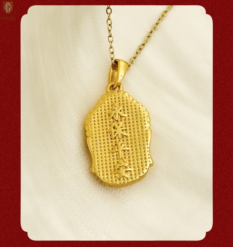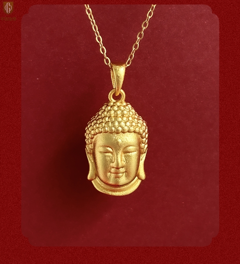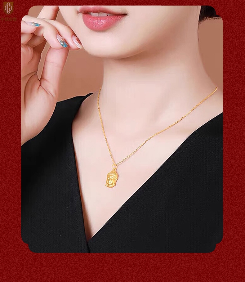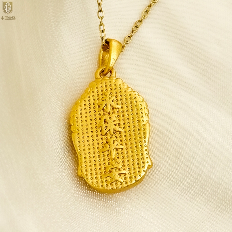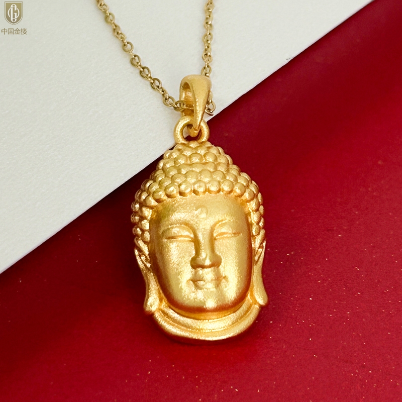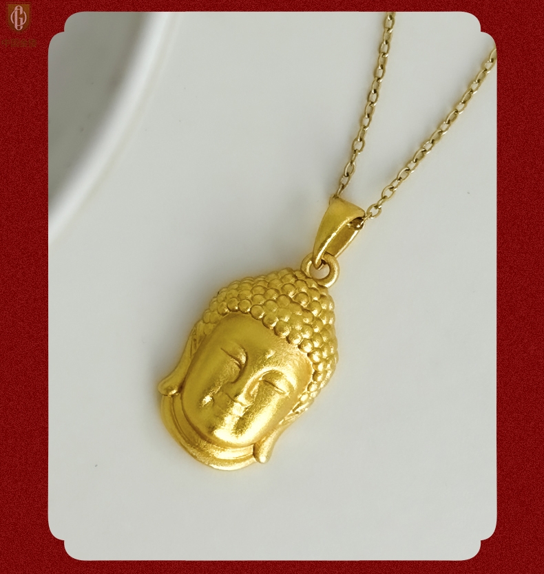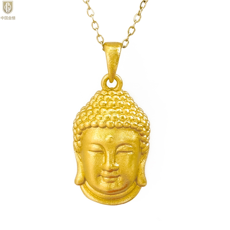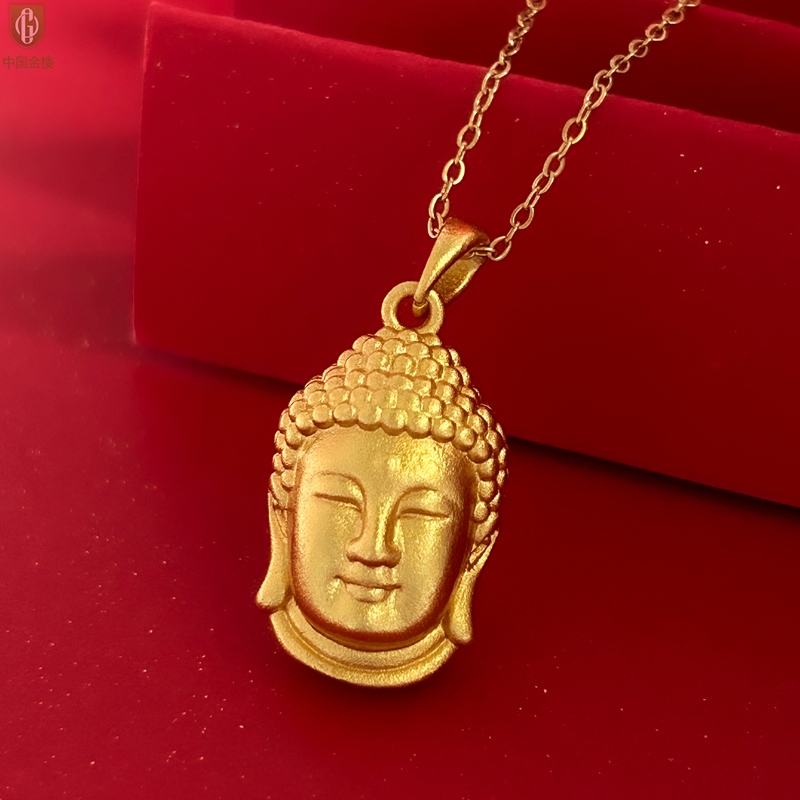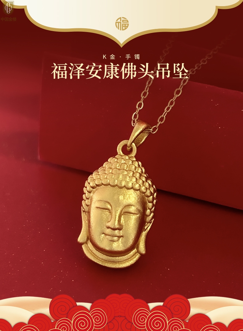 【品名】中国金楼K金福泽安康佛头吊坠(附赠K金项链)