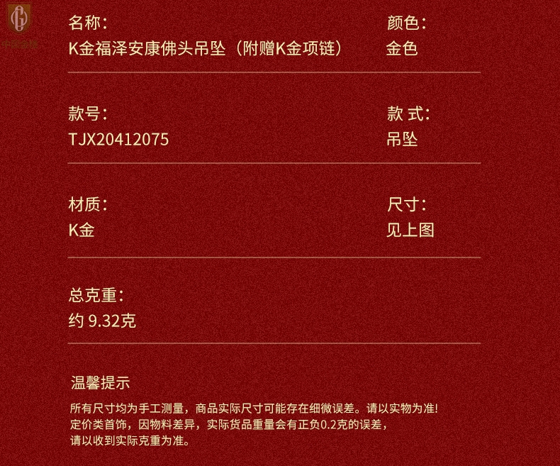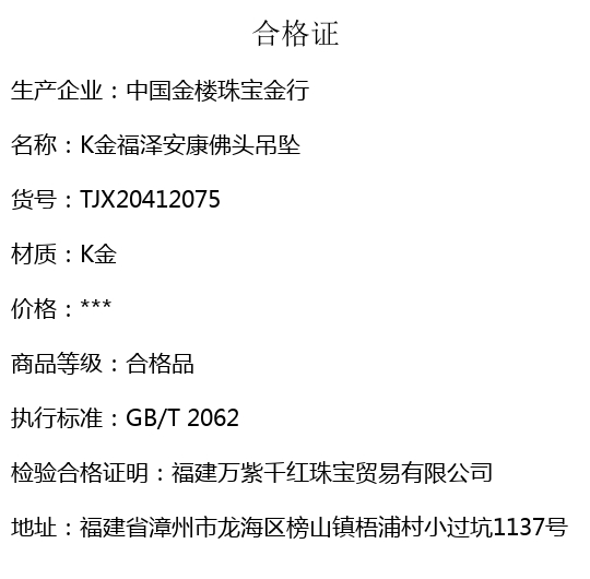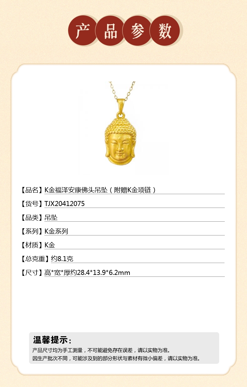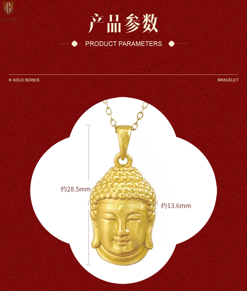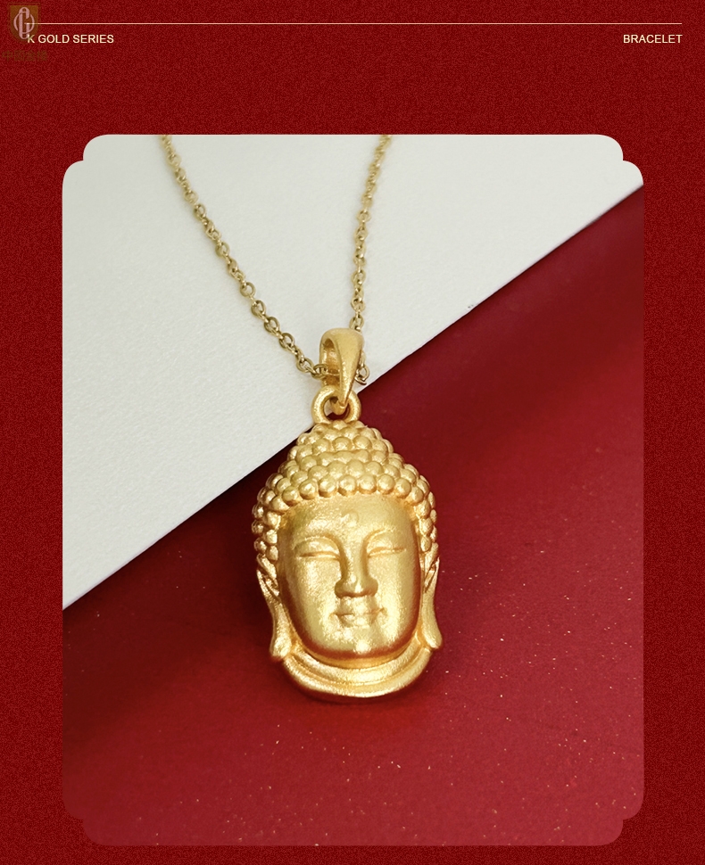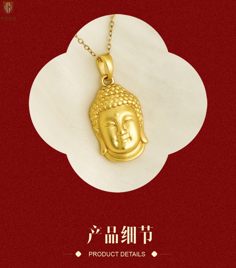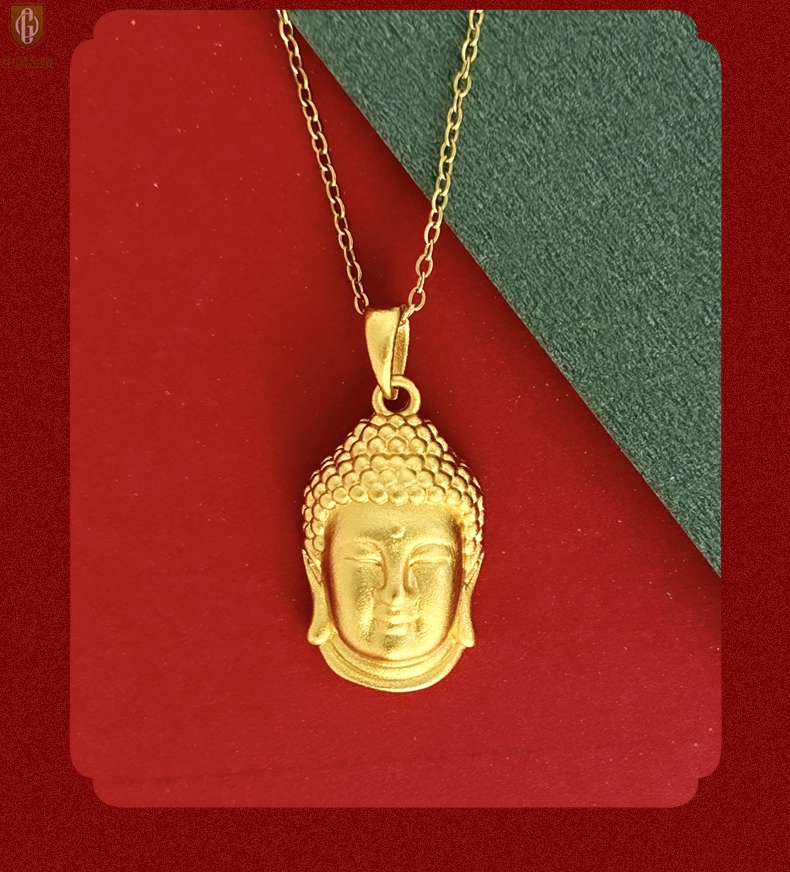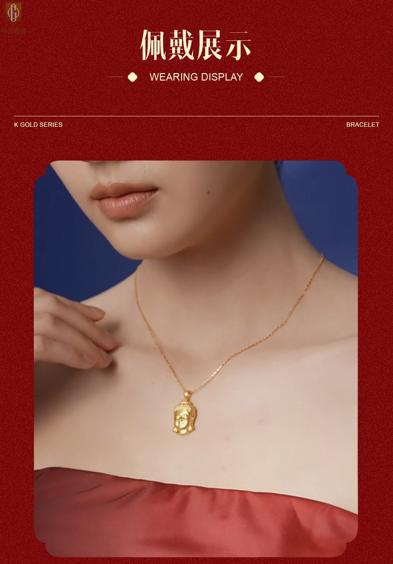 【品名】中国金楼K金福泽安康佛头吊坠(附赠K金项链)
