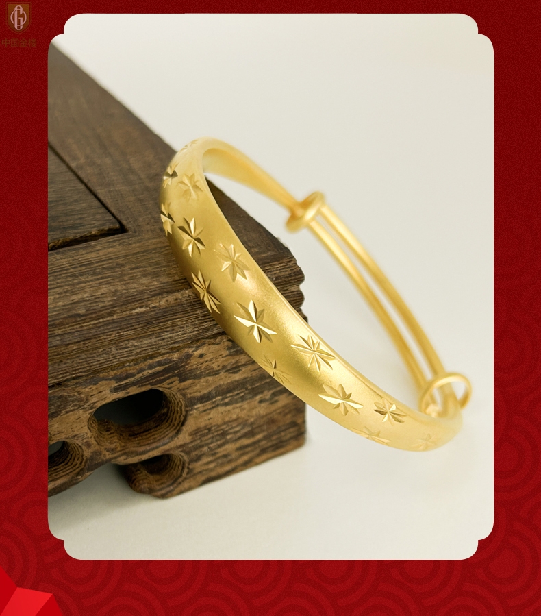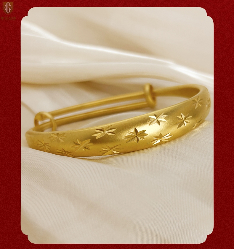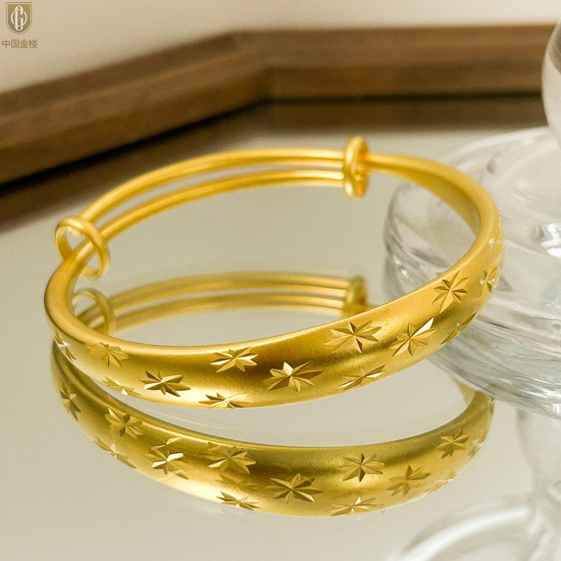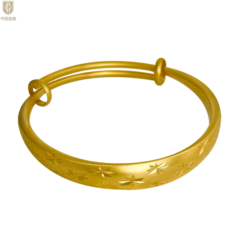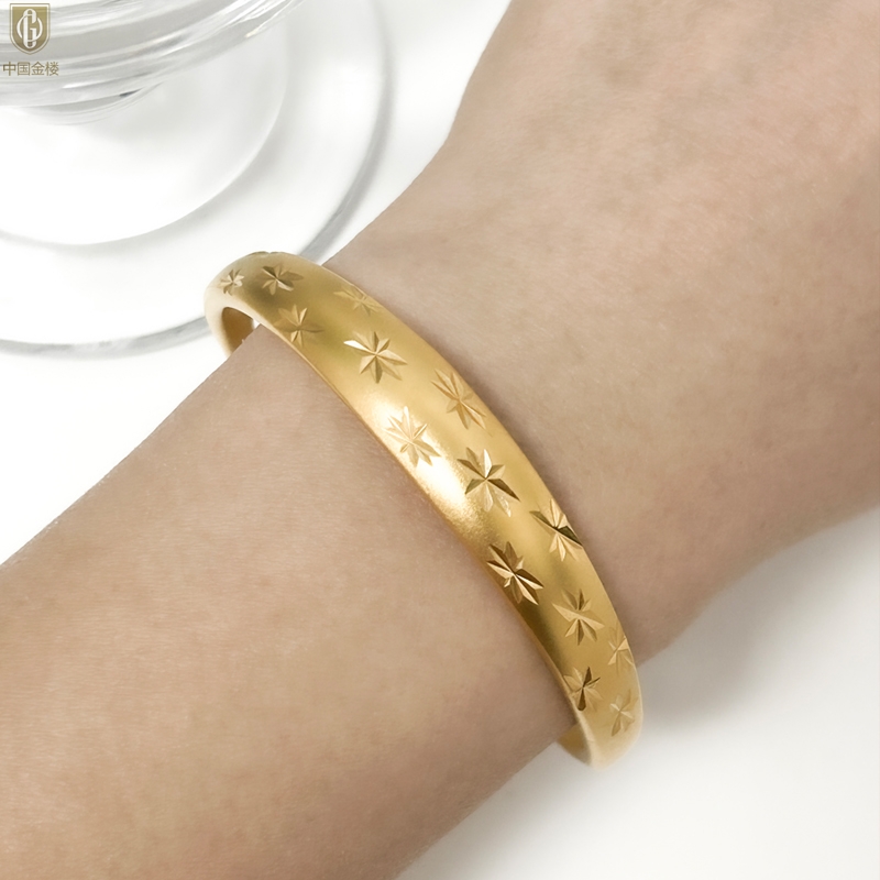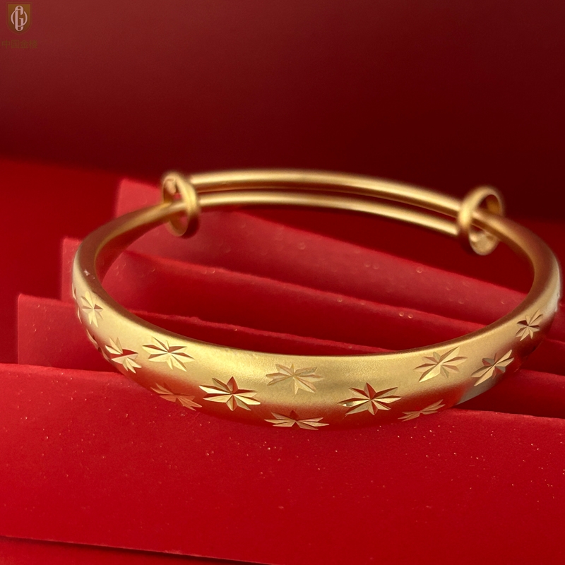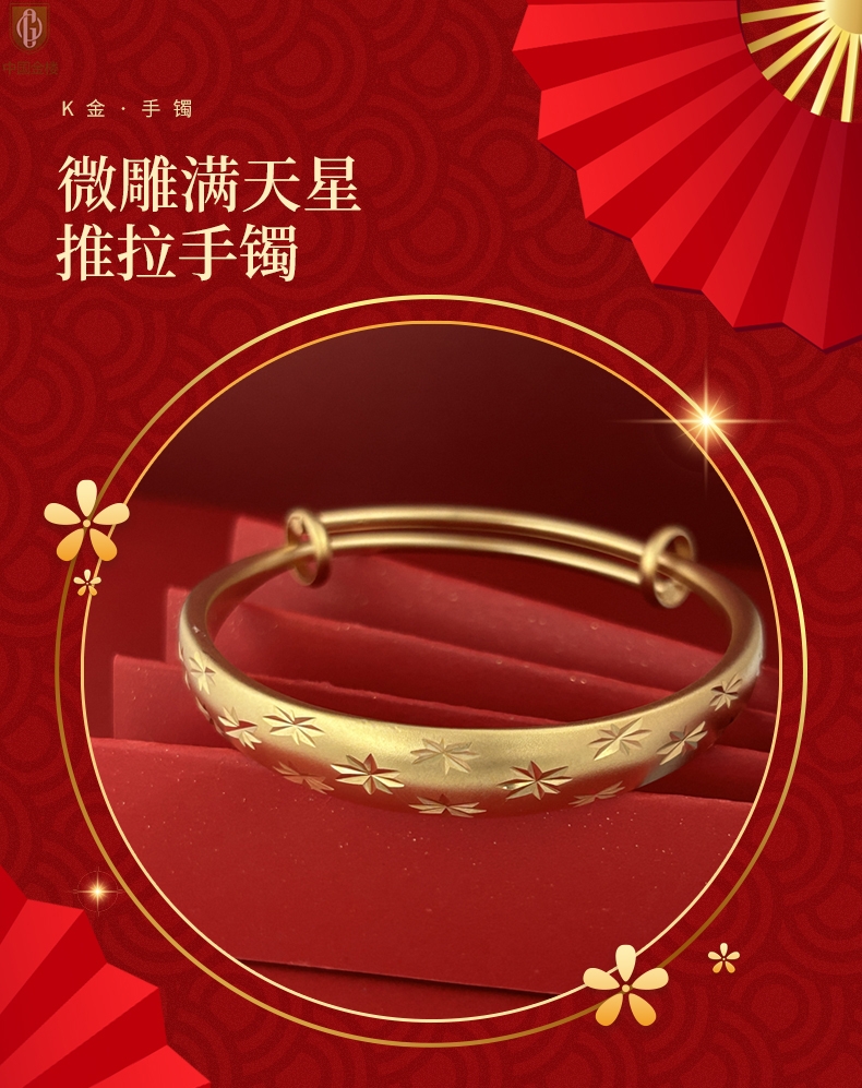 【品名】中国金楼K金微雕满天星推拉手镯10mm