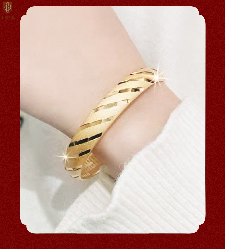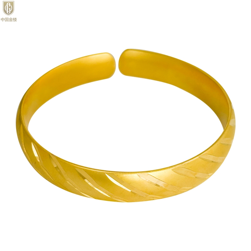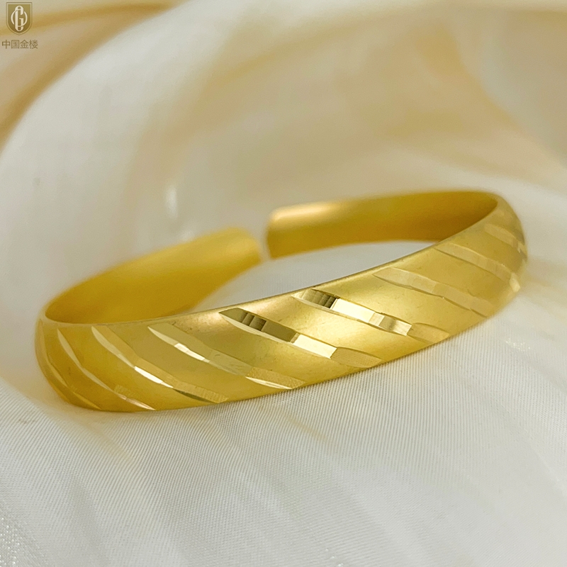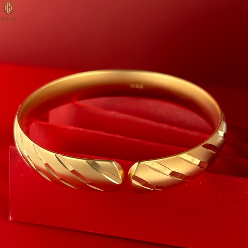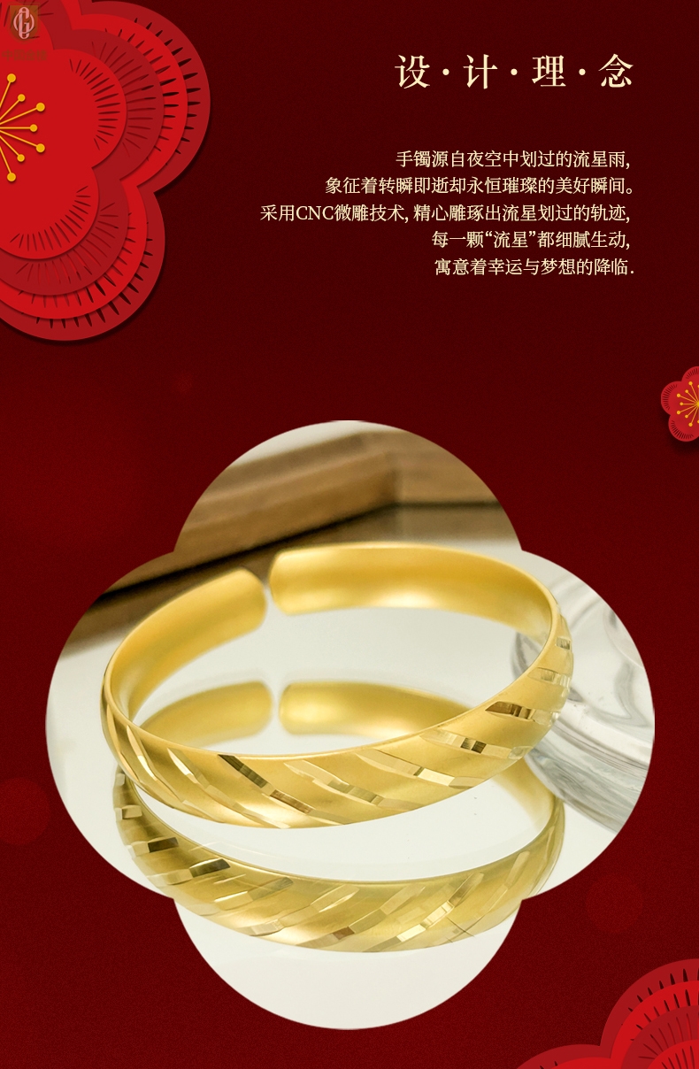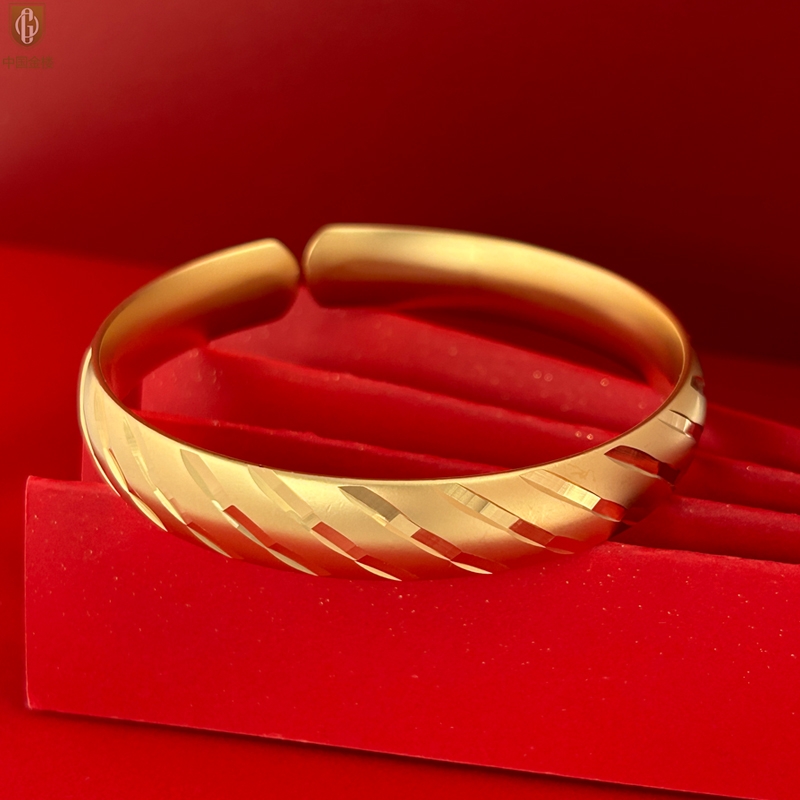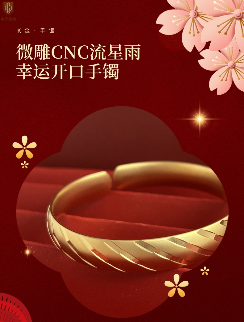 【品名】中国金楼K金微雕CNC流星雨幸运开口手镯10mm