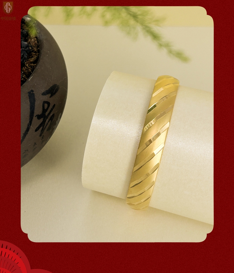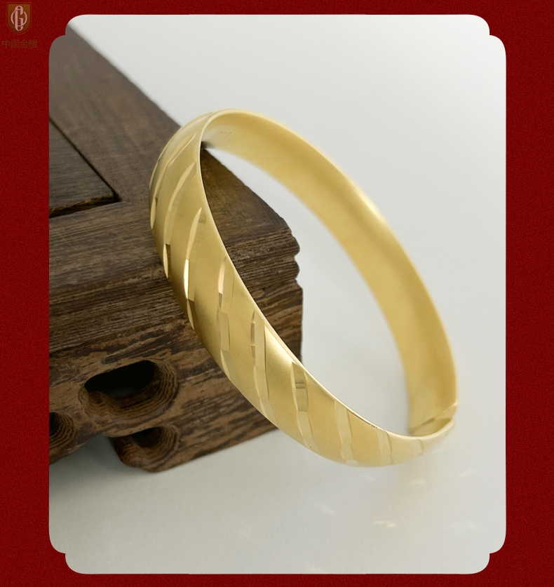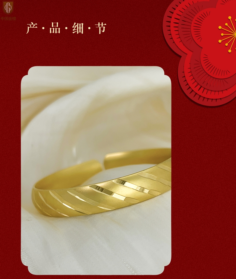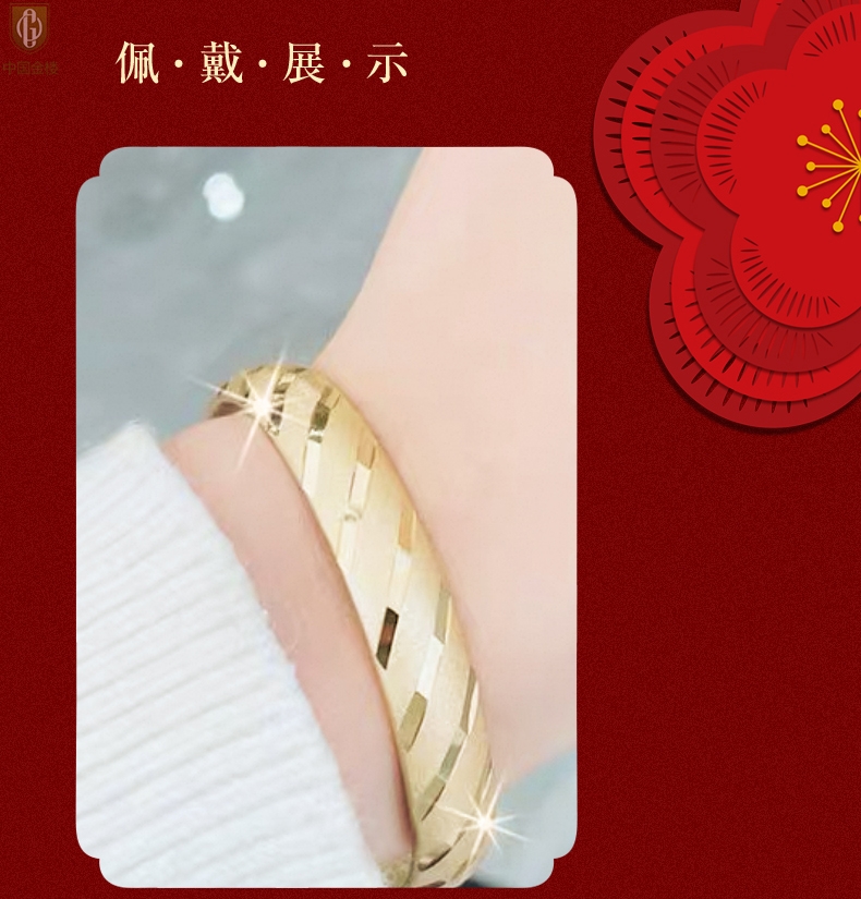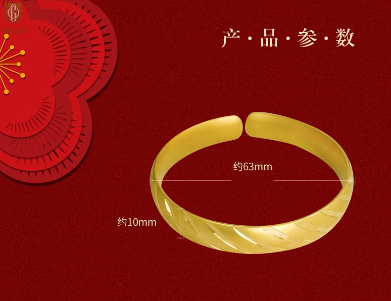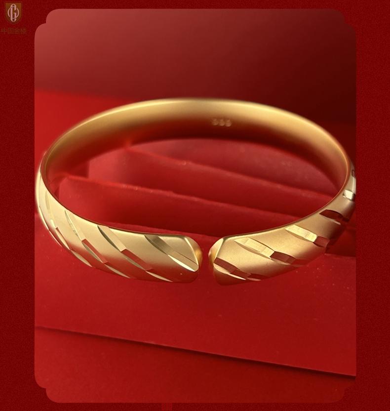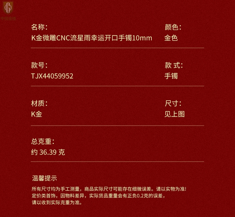 【品名】中国金楼K金微雕CNC流星雨幸运开口手镯10mm