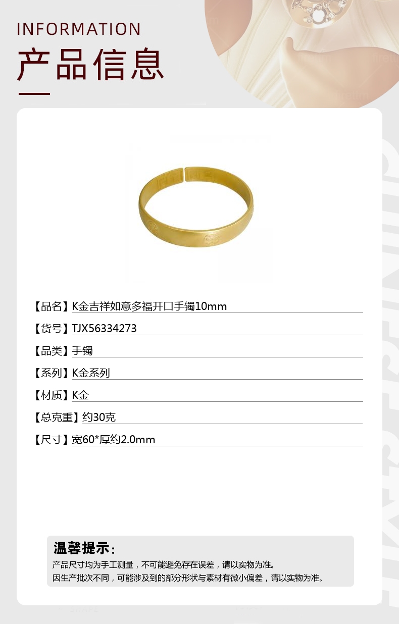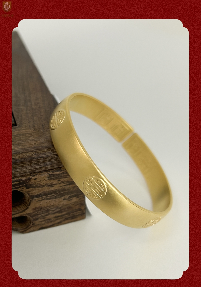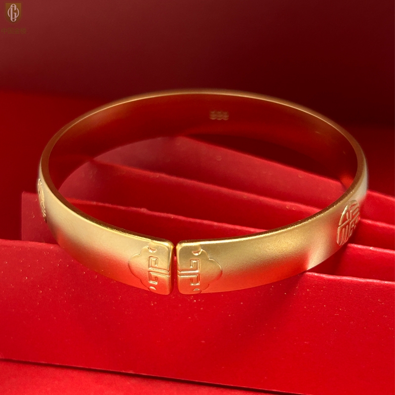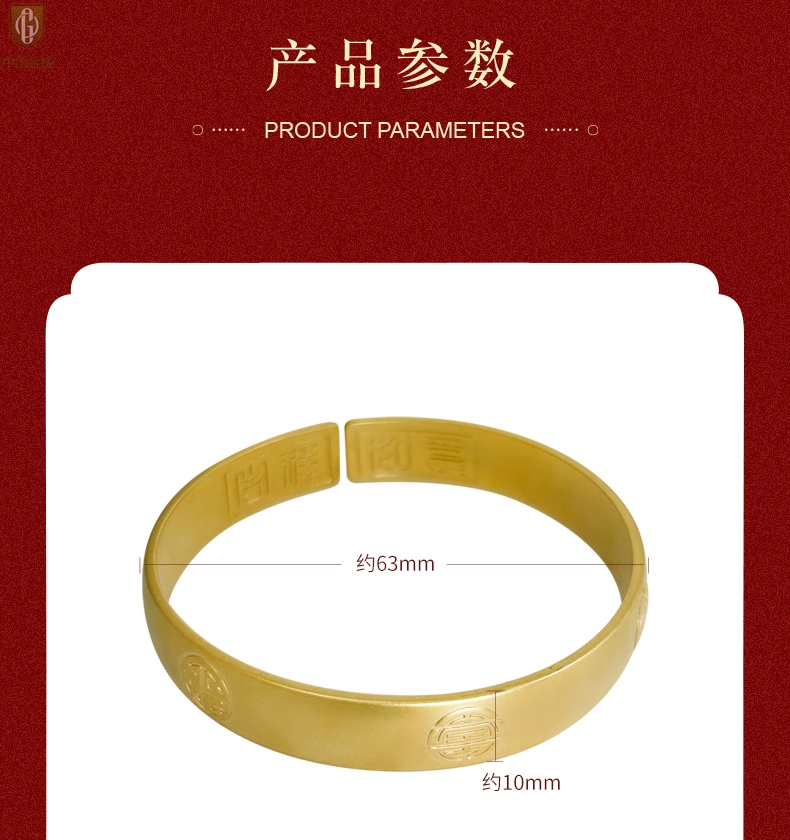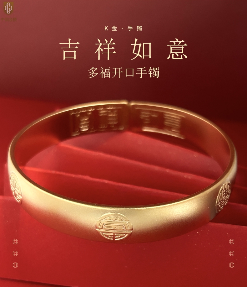 【品名】中国金楼K金吉祥如意多福开口手镯10mm