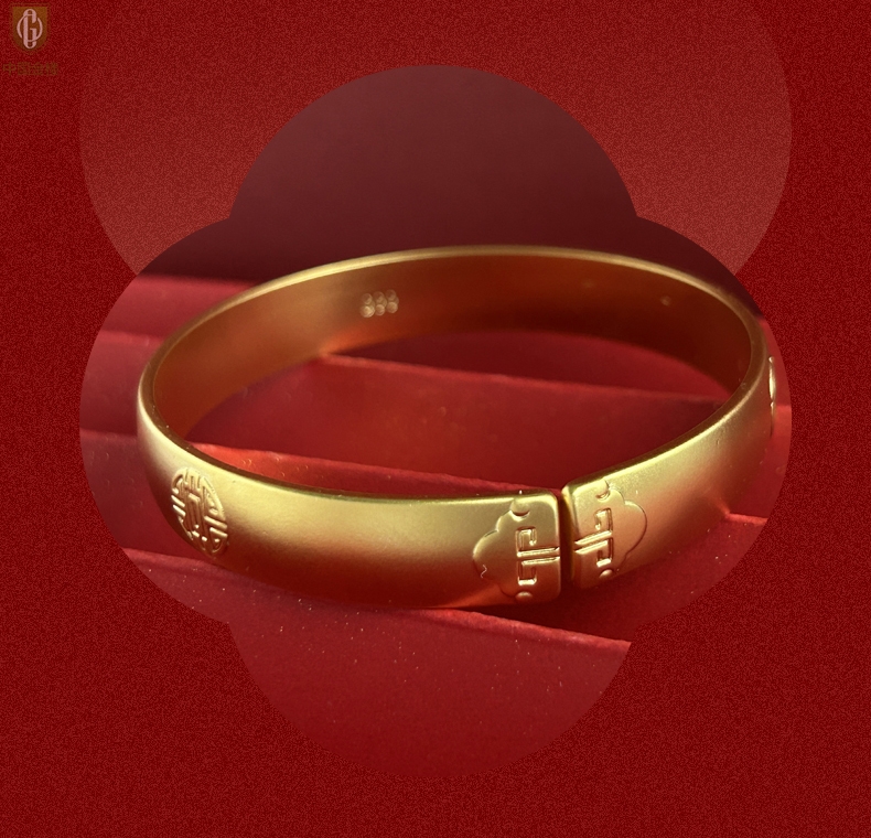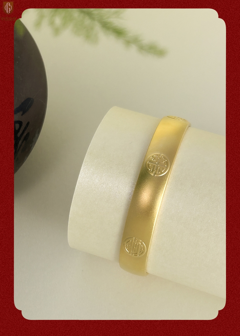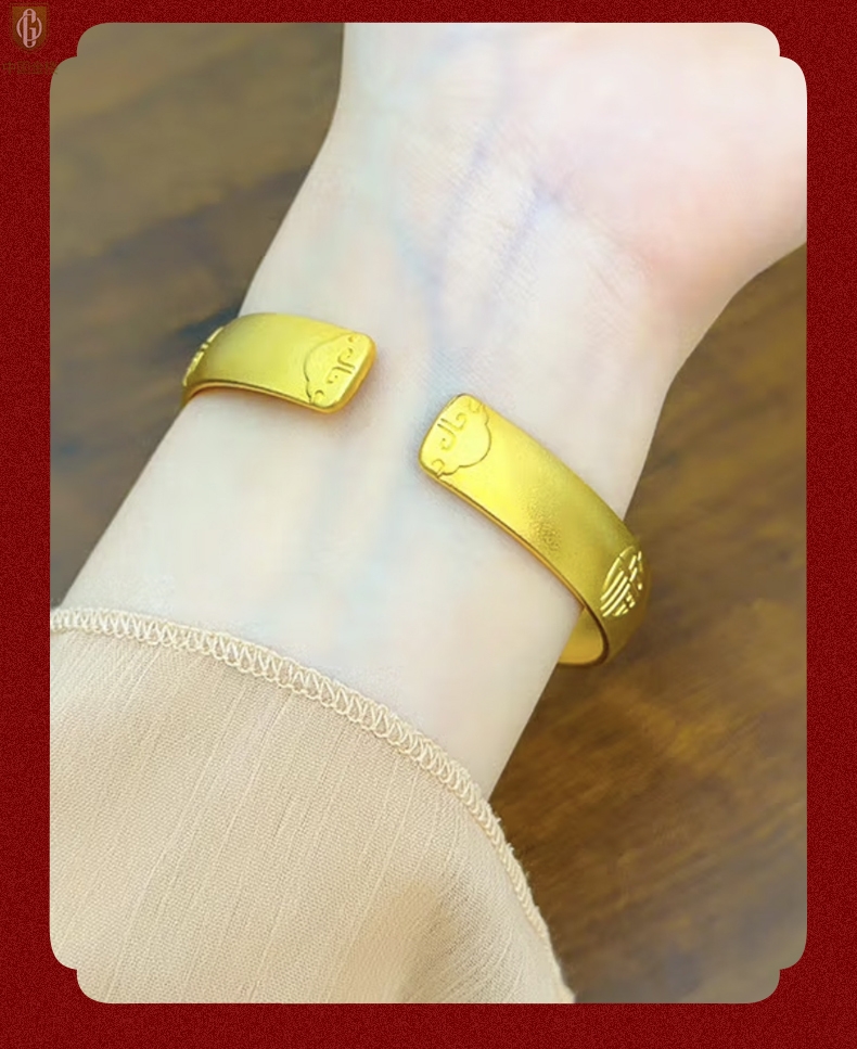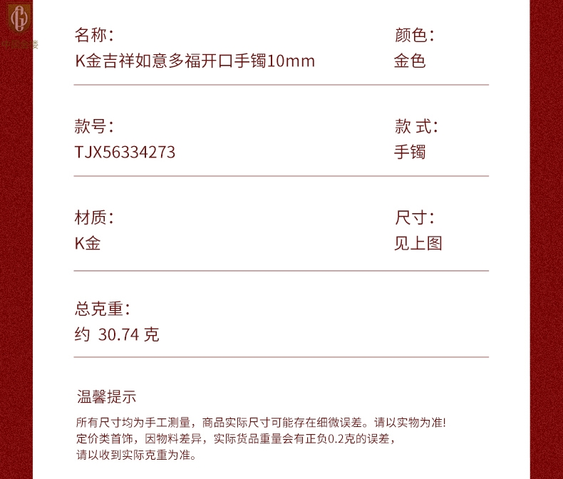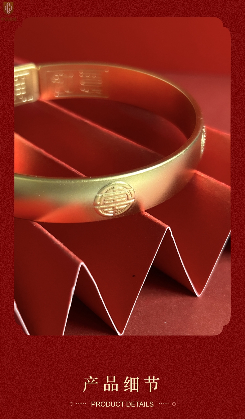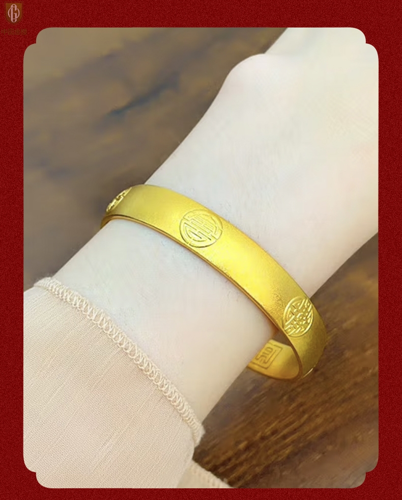 【品名】中国金楼K金吉祥如意多福开口手镯10mm