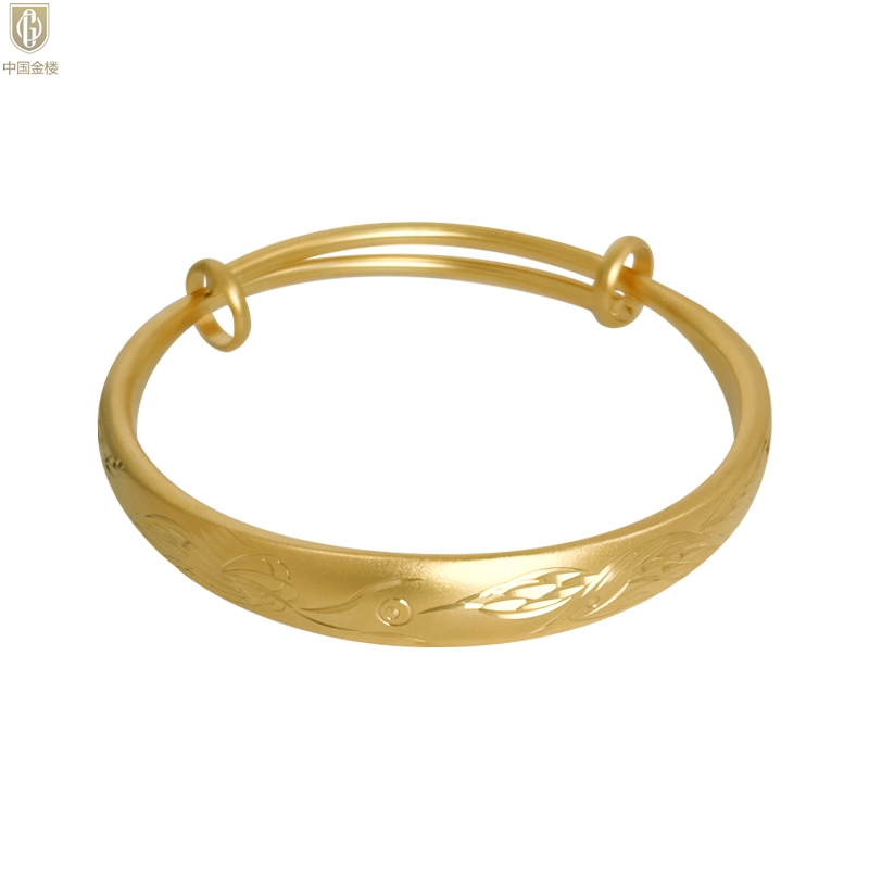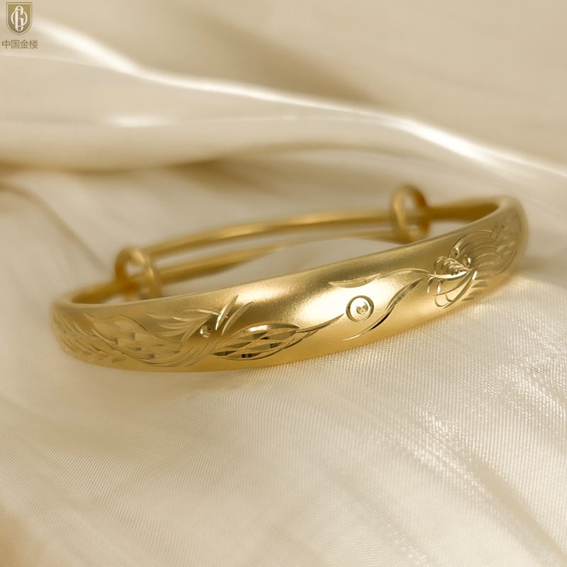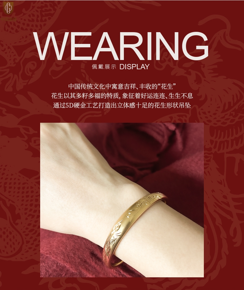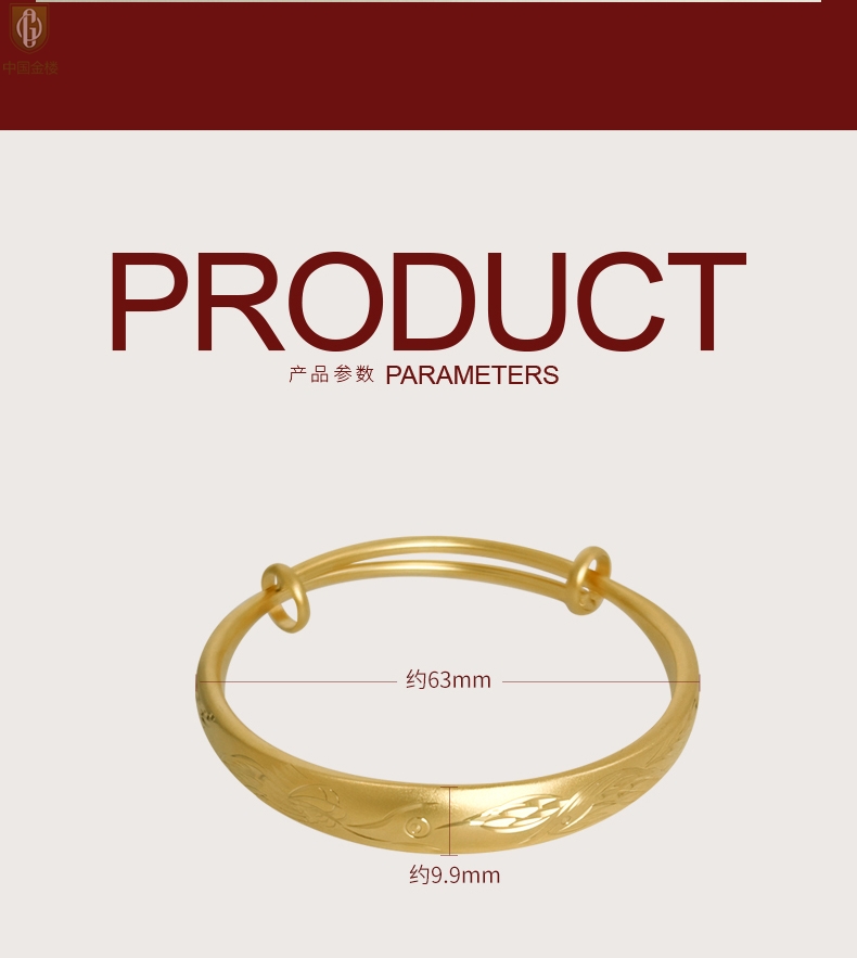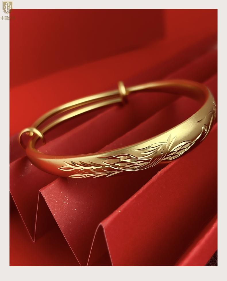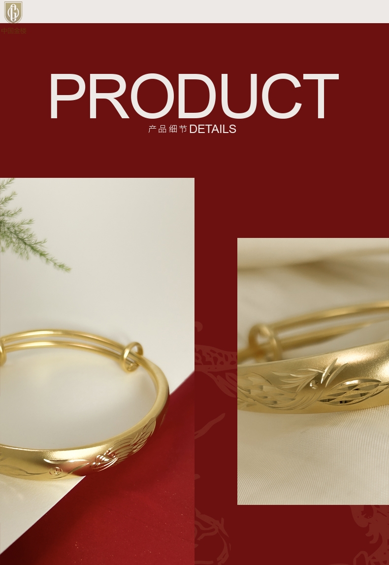 【品名】中国金楼K金微雕CNC龙凤呈祥推拉手镯10mm