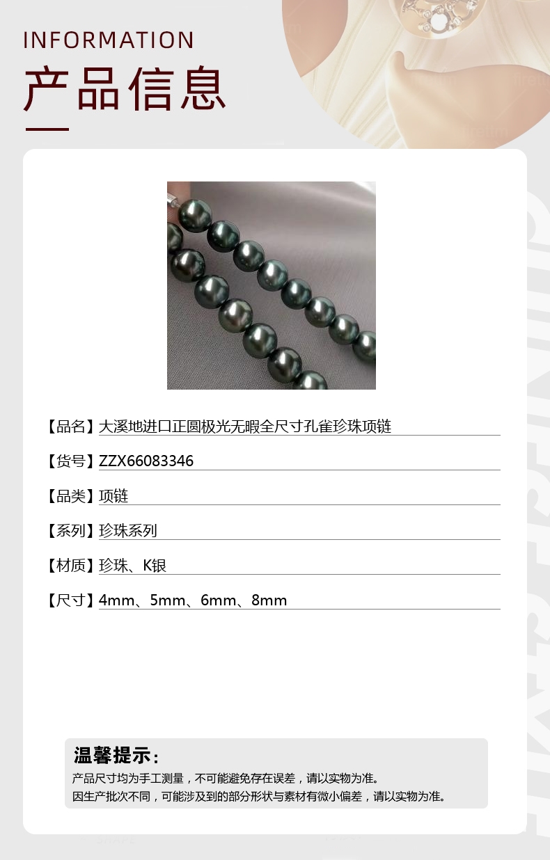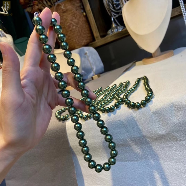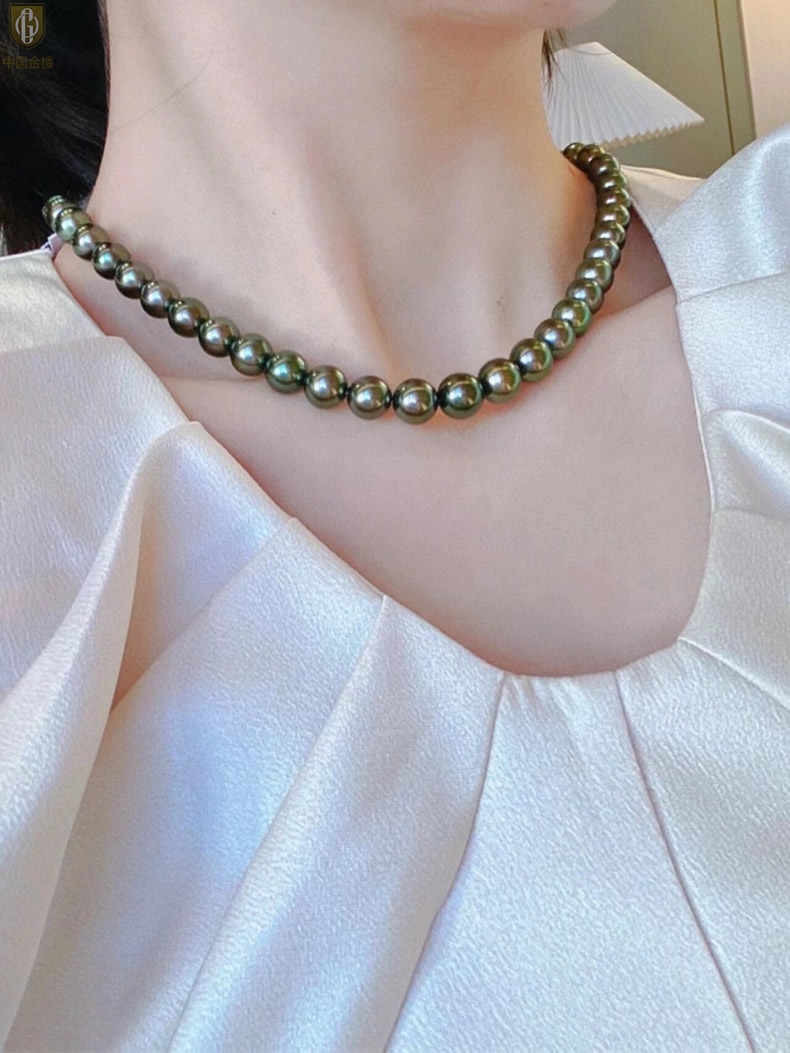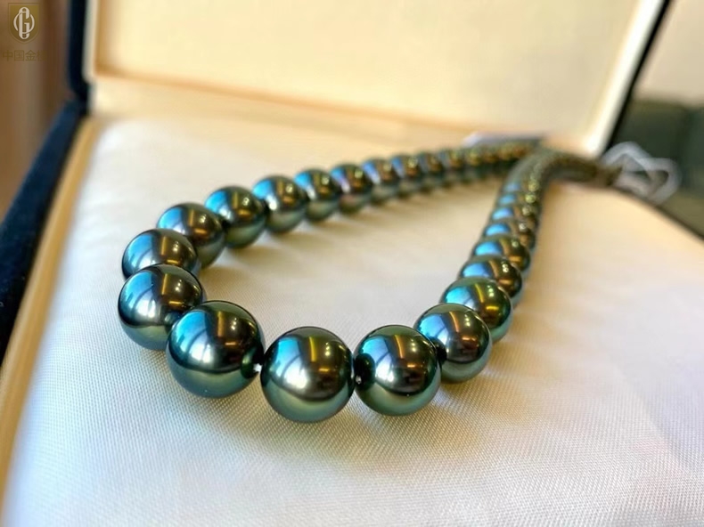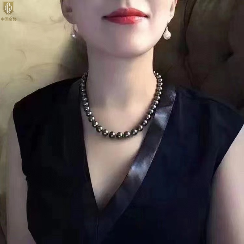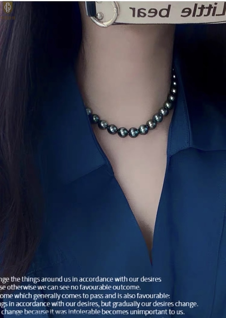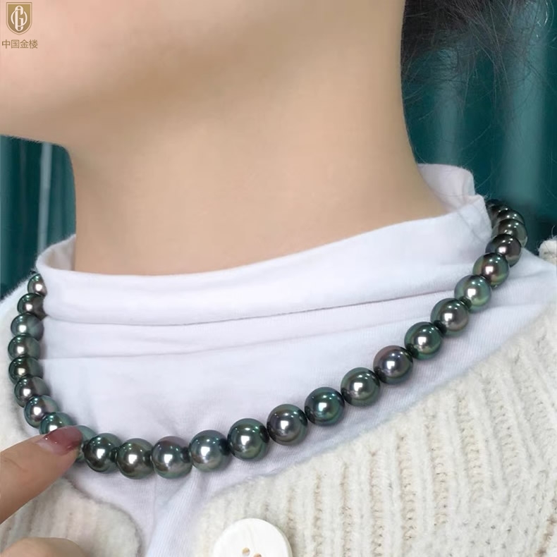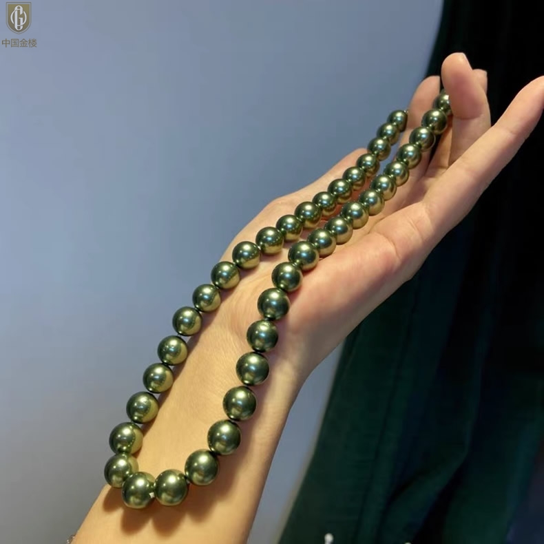 【品名】中国金楼大溪地进口正圆极光无暇全尺寸孔雀珍珠项链