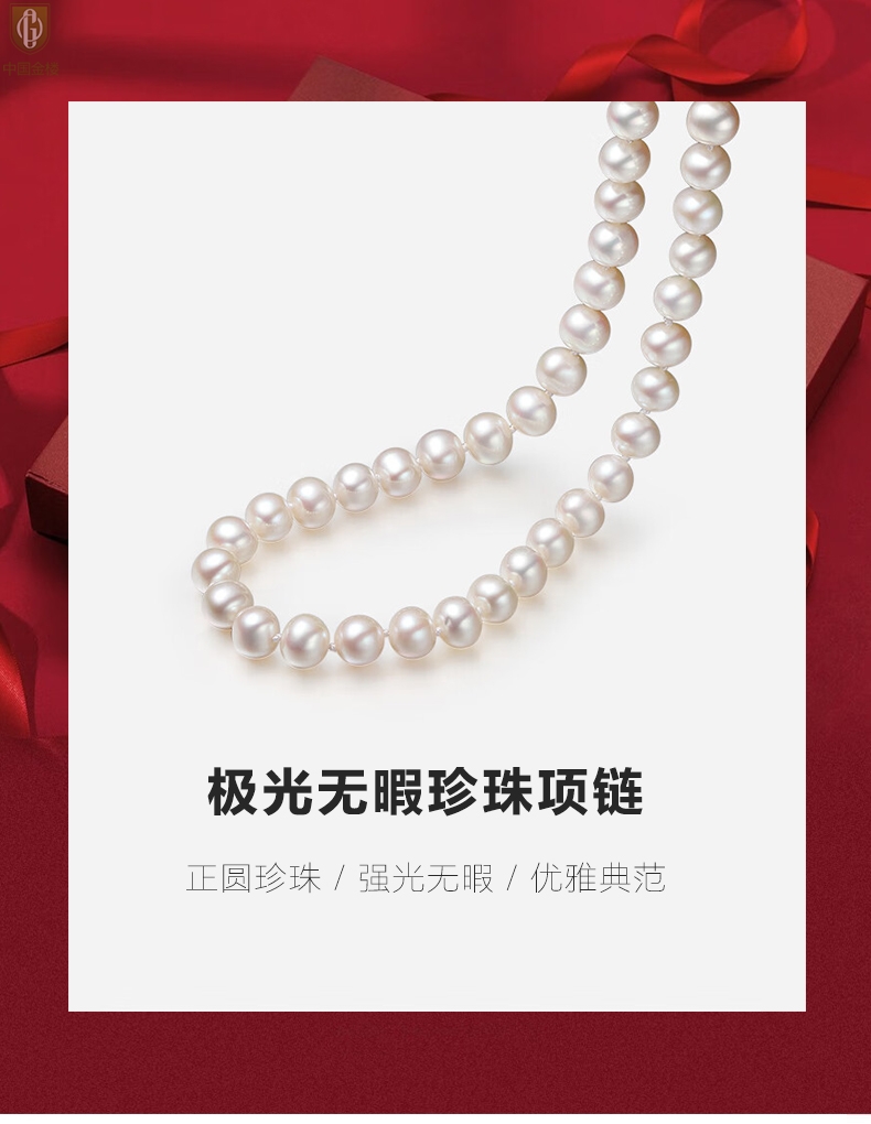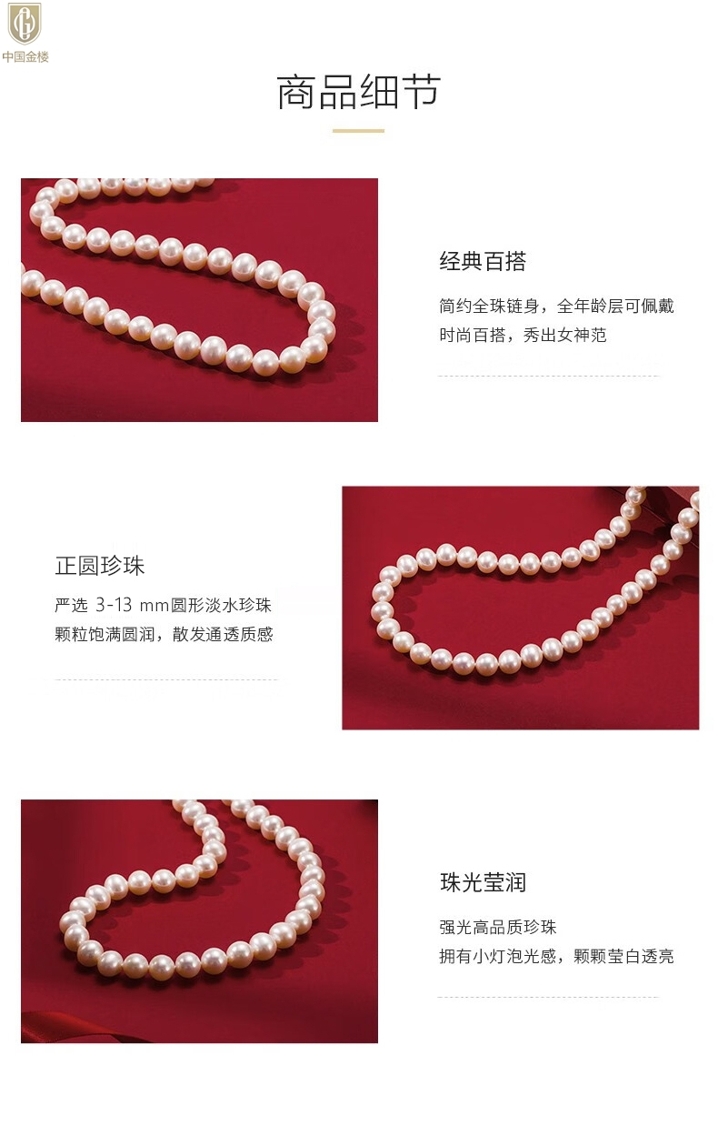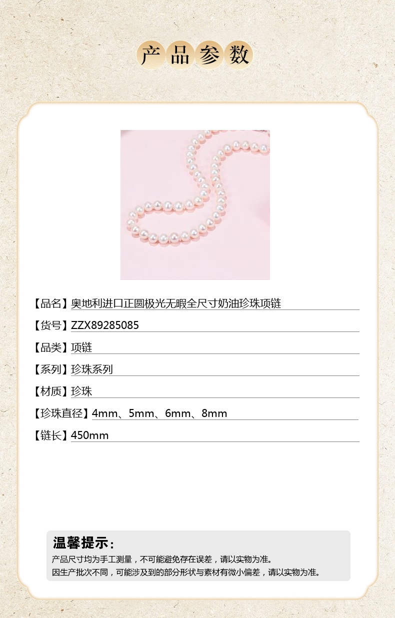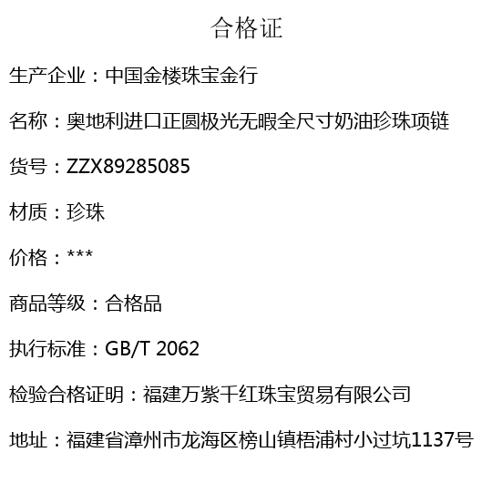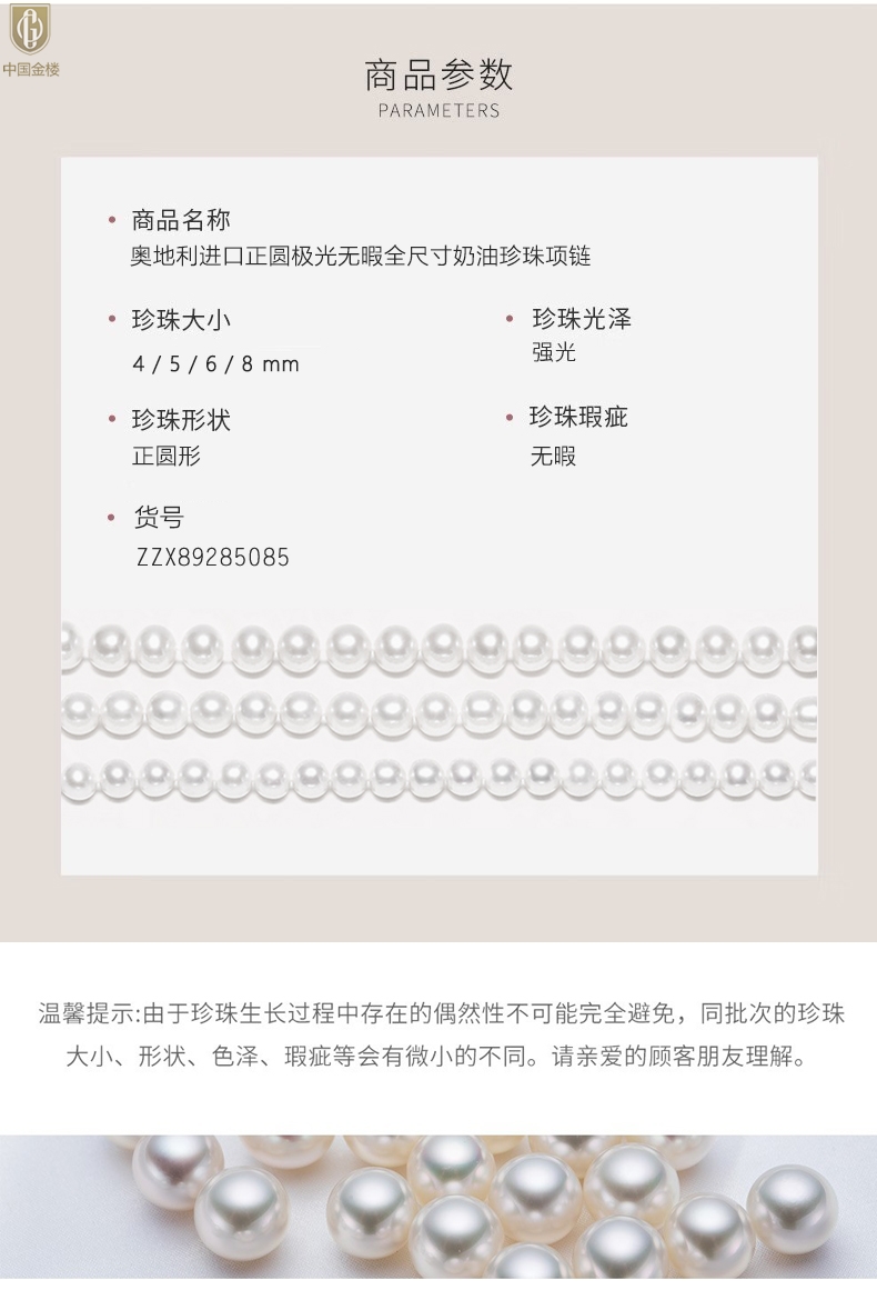 【品名】中国金楼奥地利进口正圆极光无暇全尺寸奶油珍珠项链