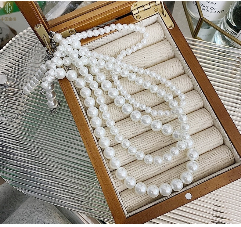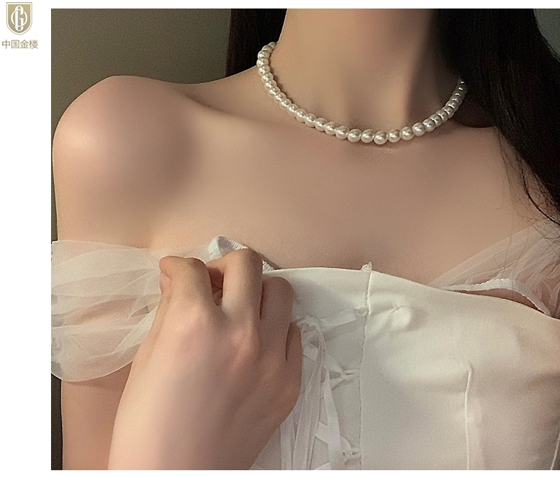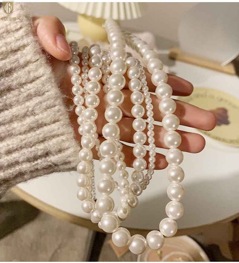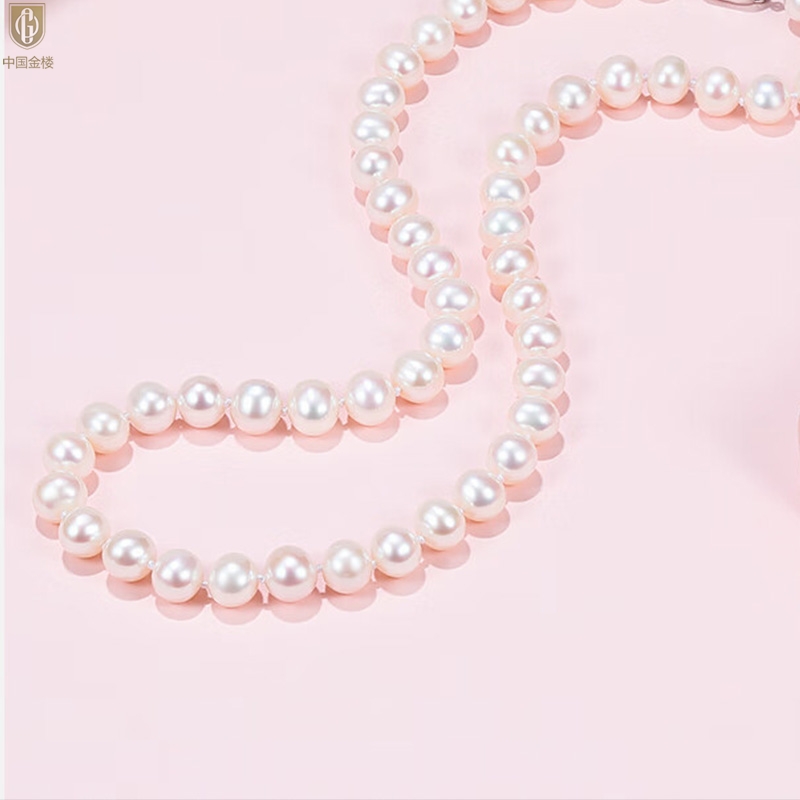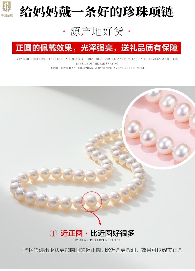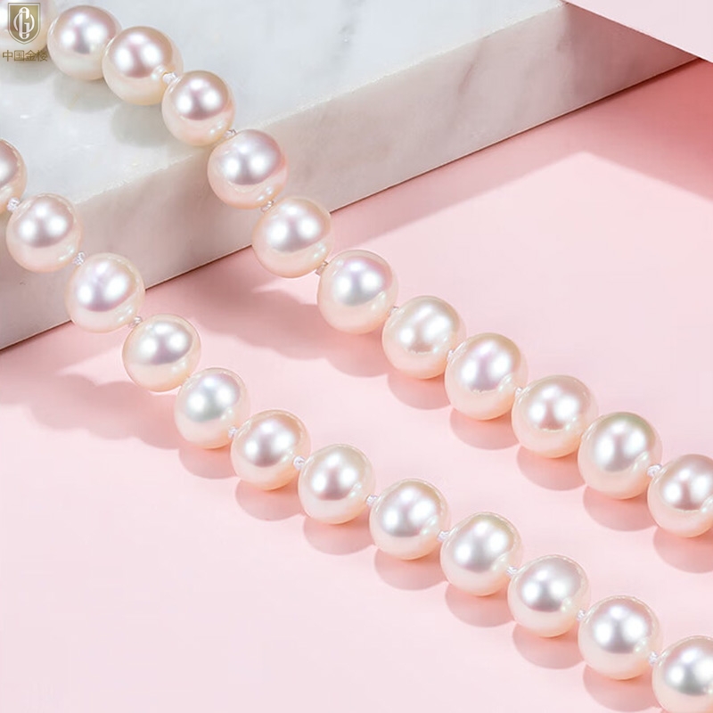 【品名】中国金楼奥地利进口正圆极光无暇全尺寸奶油珍珠项链