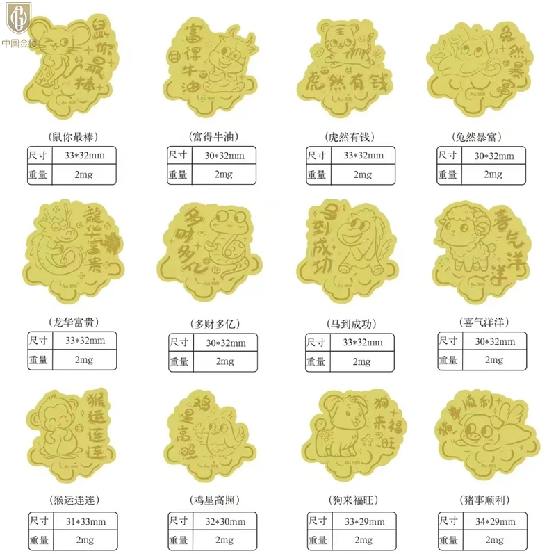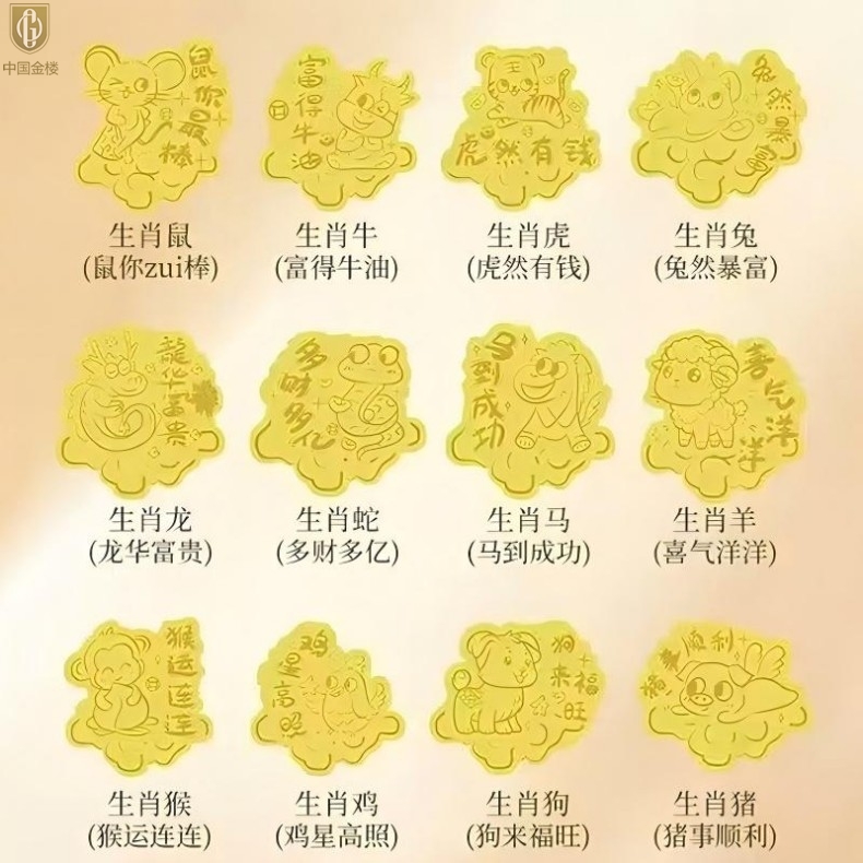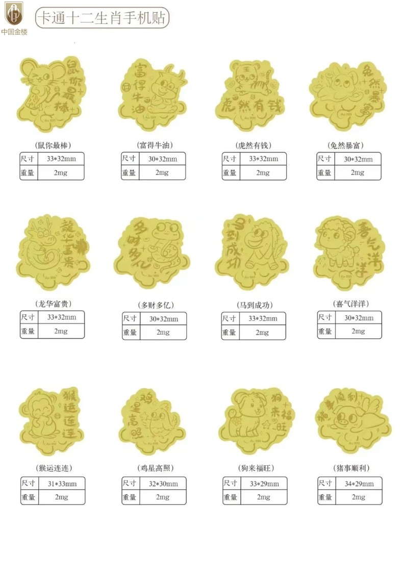 款式:鼠你最棒、牛富的牛油、虎然有钱、兔然暴富、龙华富贵、蛇多财多亿、马到成功、羊喜气洋洋、猴运连连、鸡星高照、狗来福旺、猪事顺利