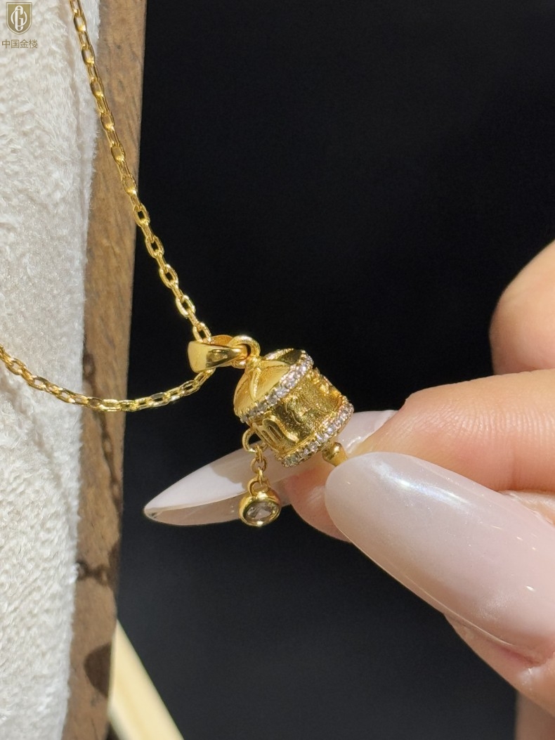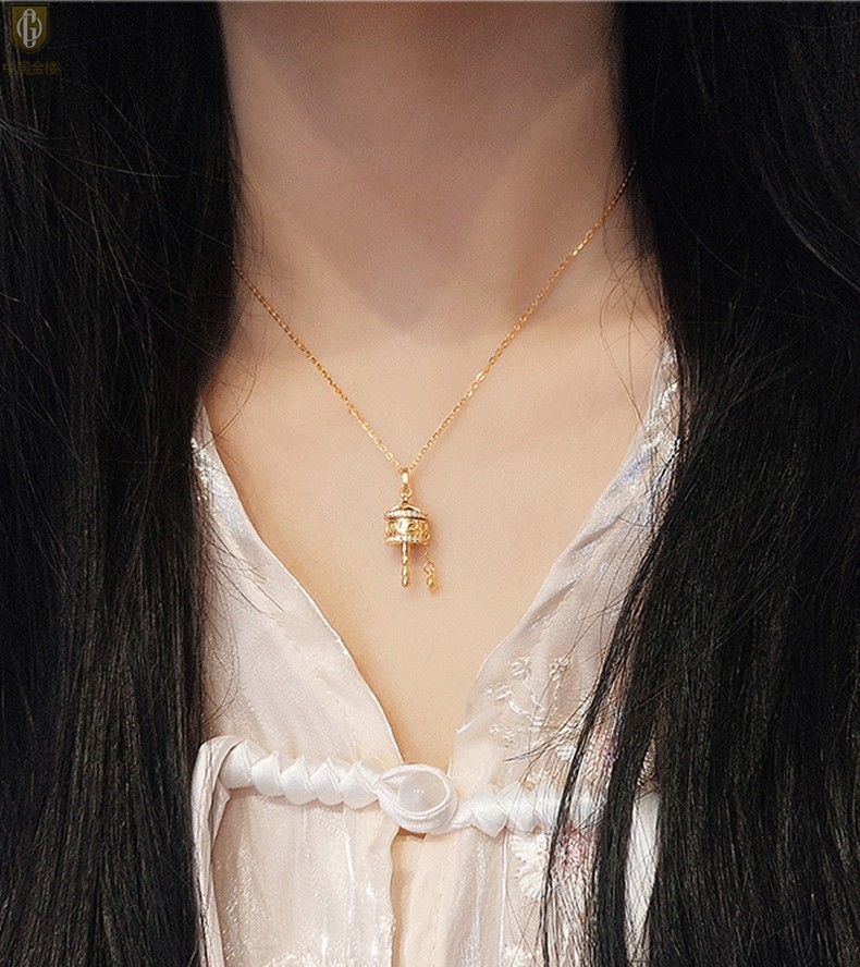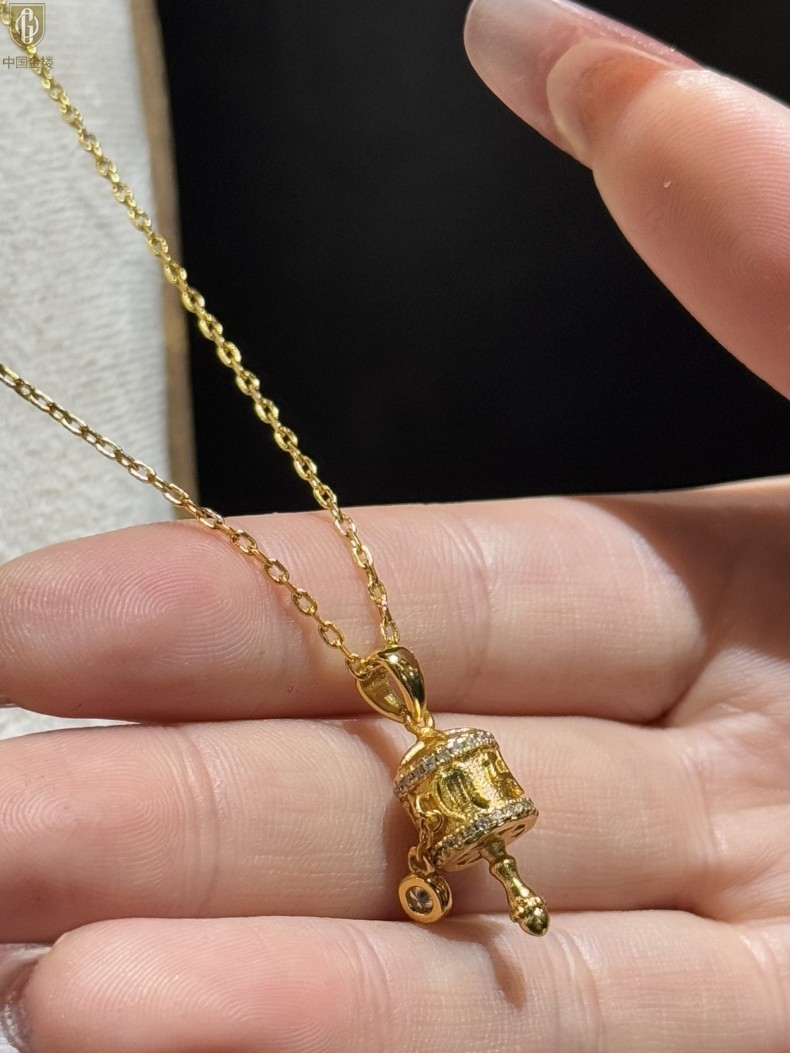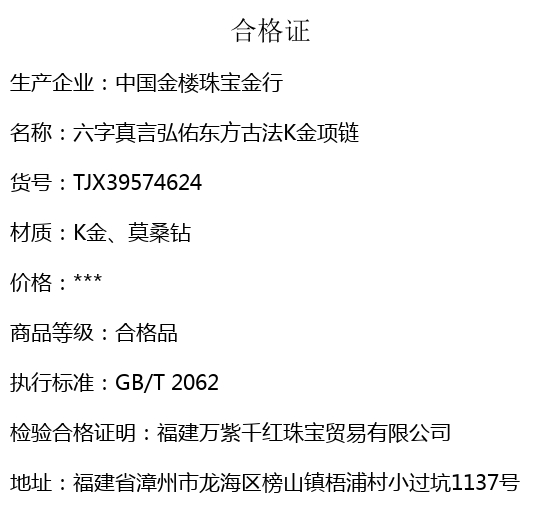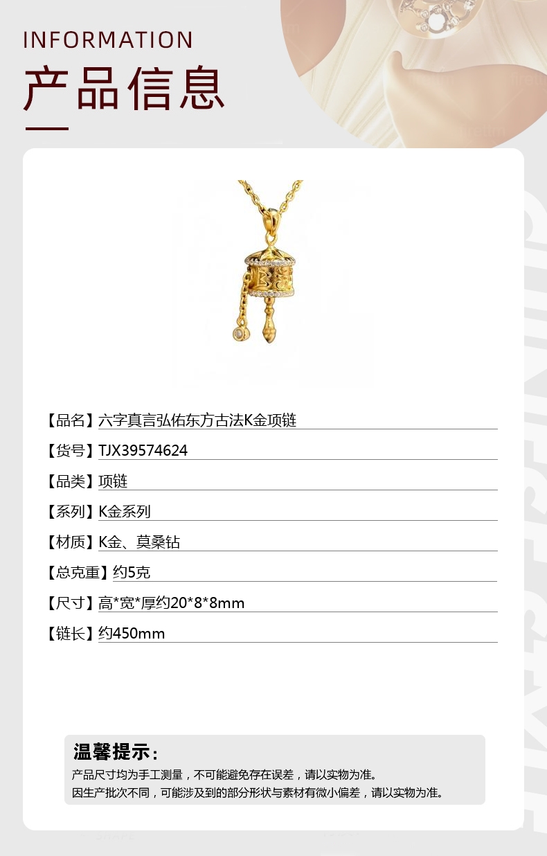 【品名】中国金楼六字真言弘佑东方古法K金项链
