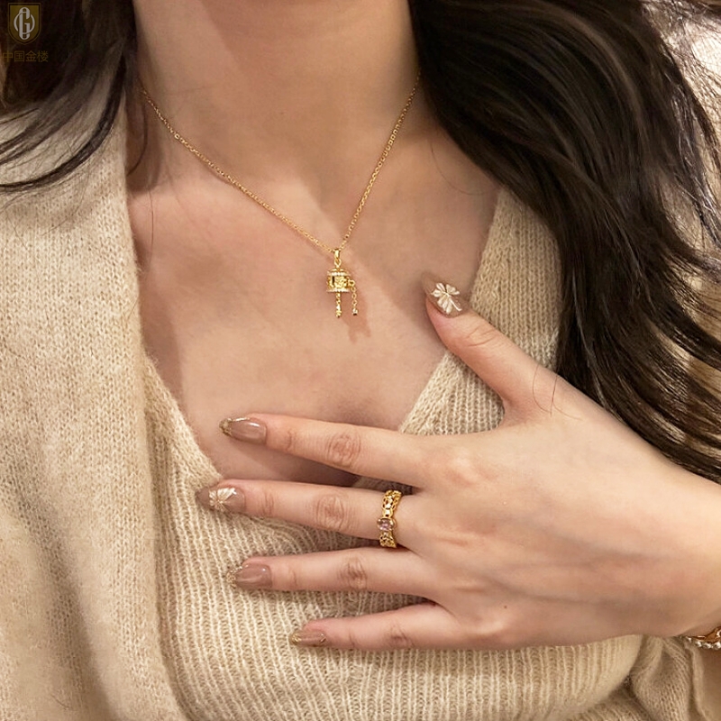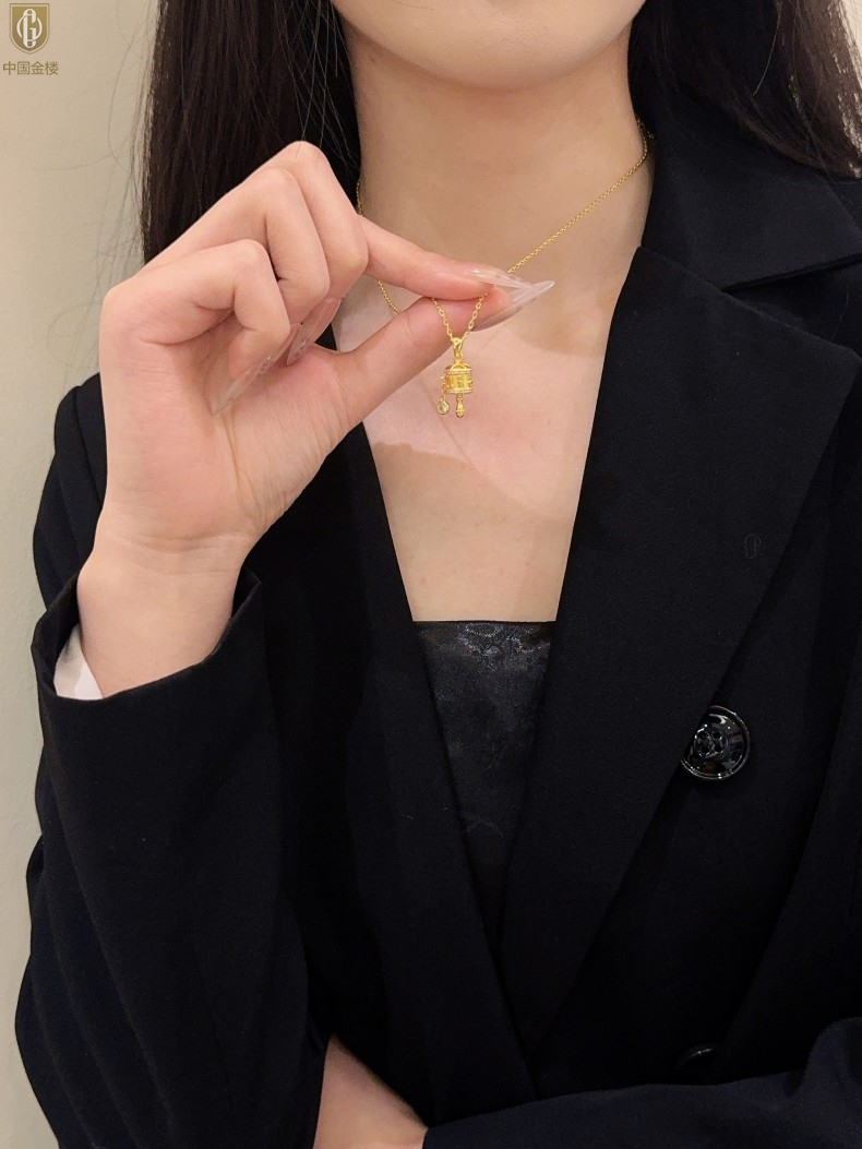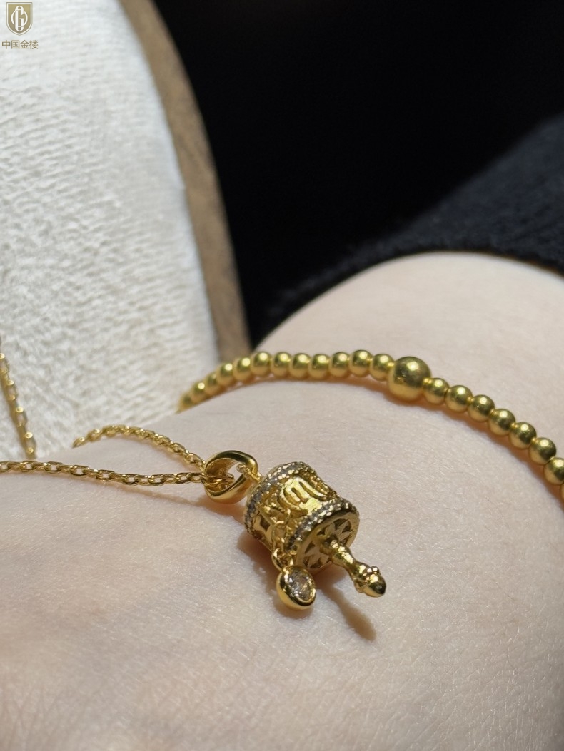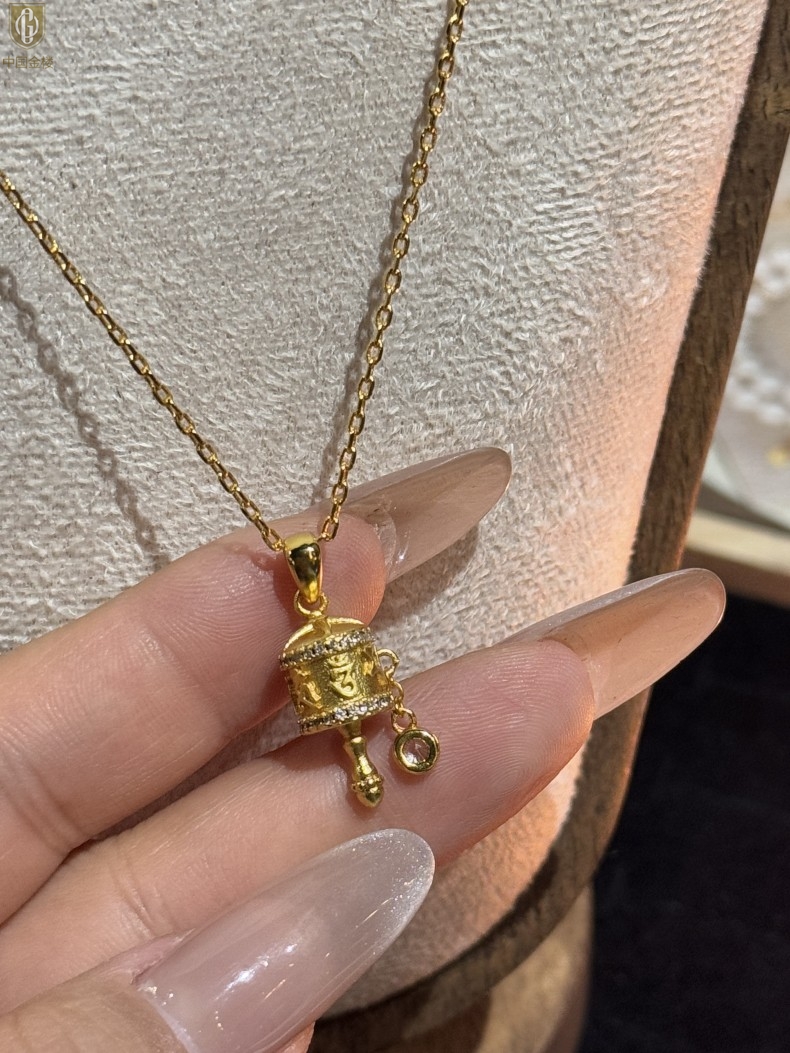 【品名】中国金楼六字真言弘佑东方古法K金项链