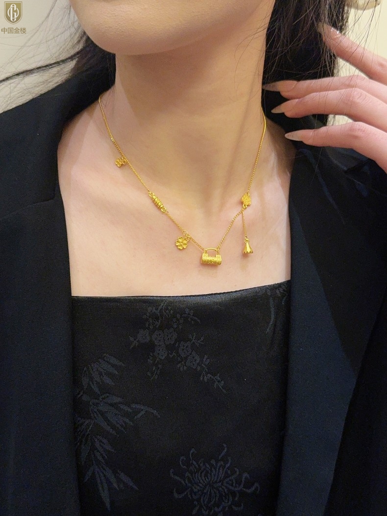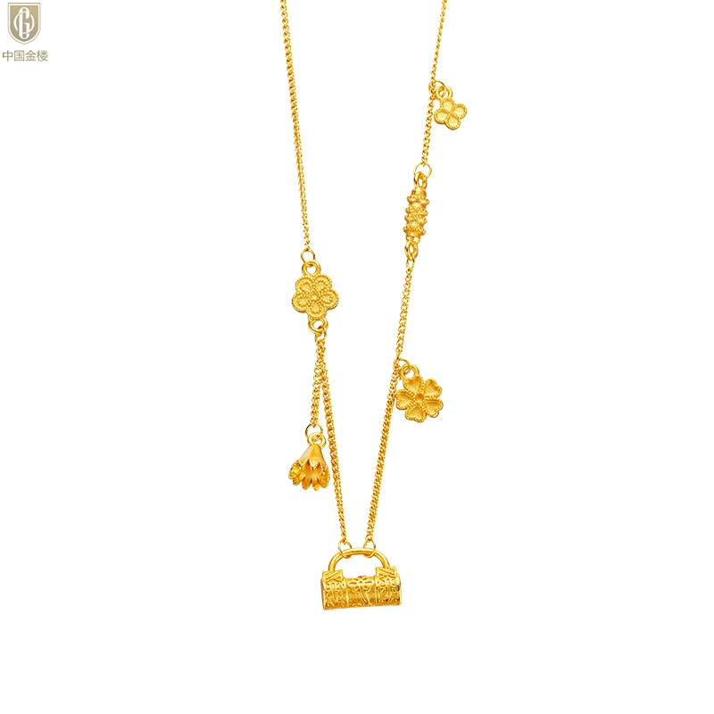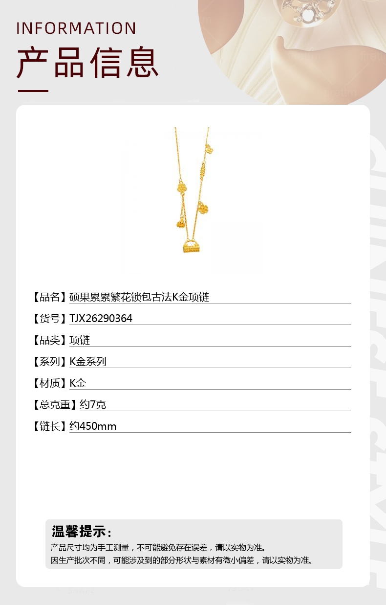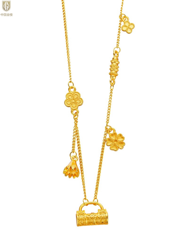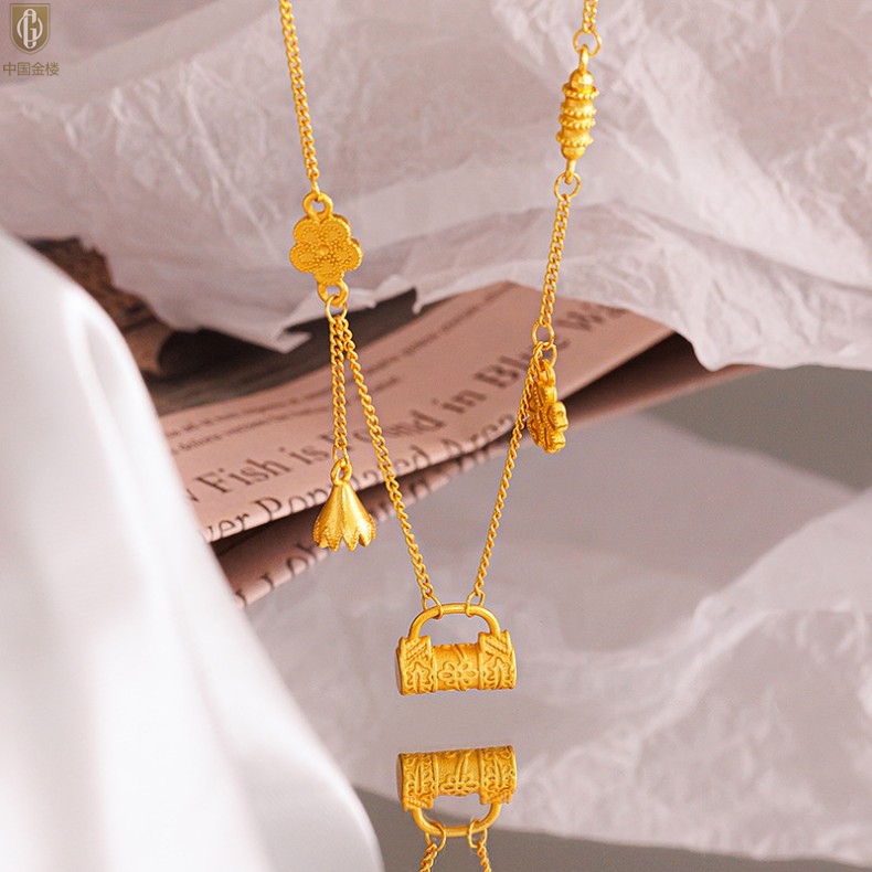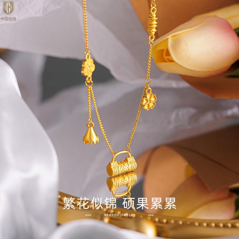 【品名】中国金楼硕果累累繁花锁包古法K金项链