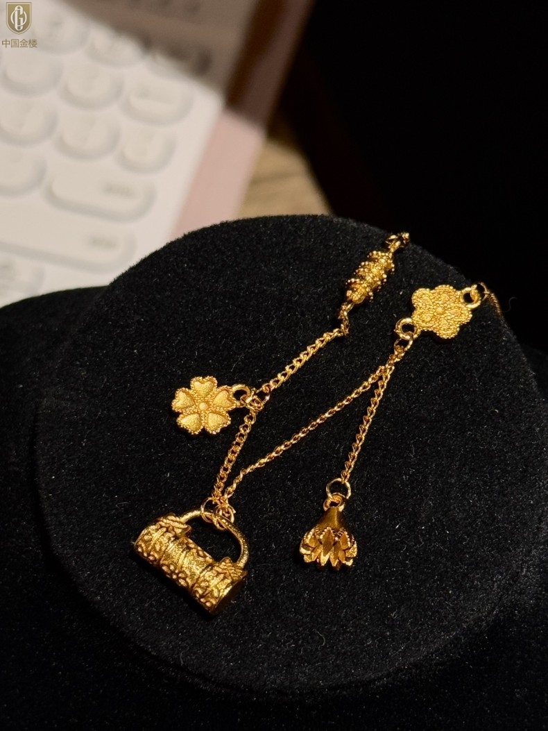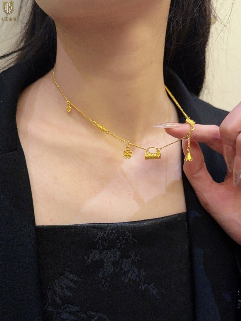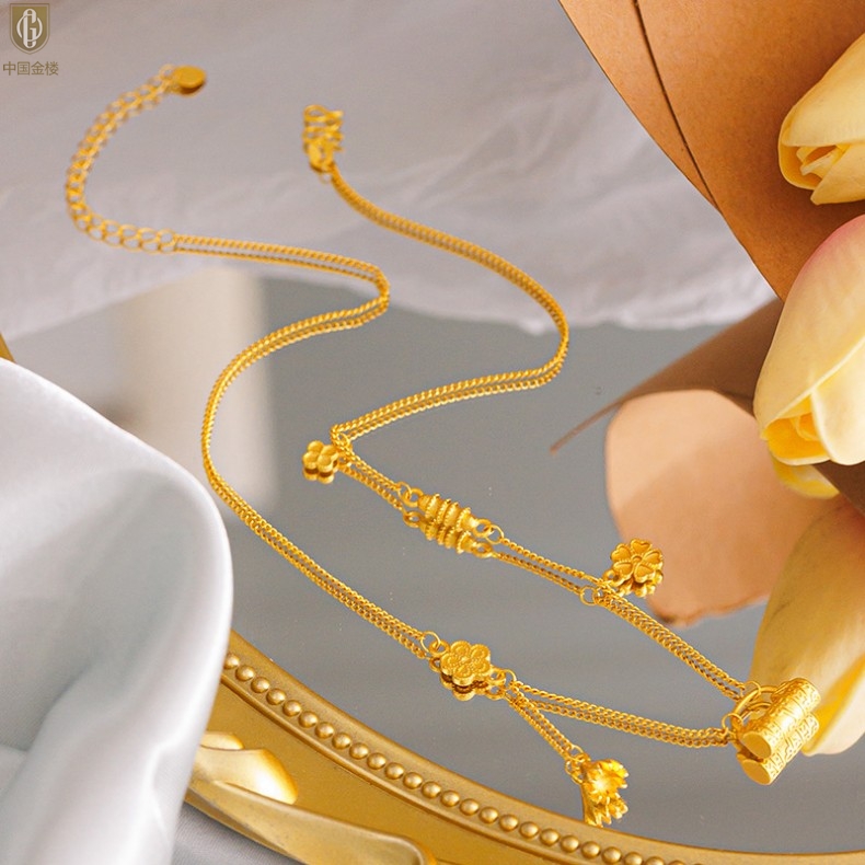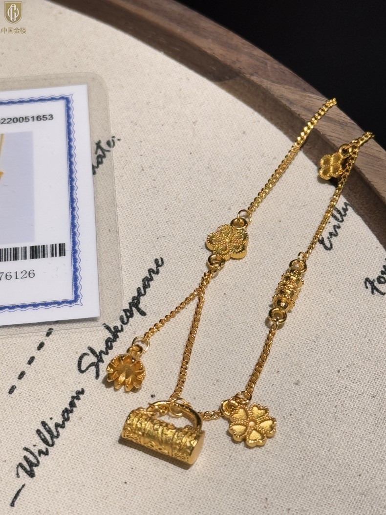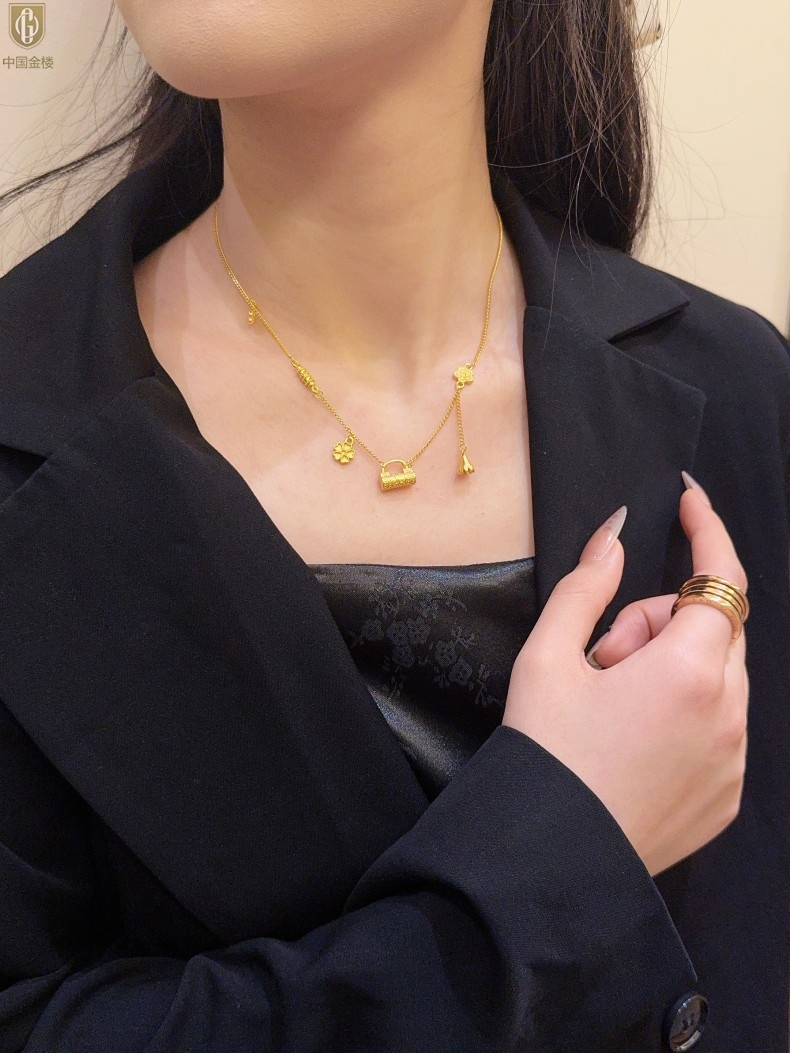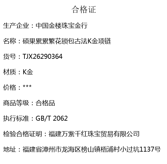 【品名】中国金楼硕果累累繁花锁包古法K金项链