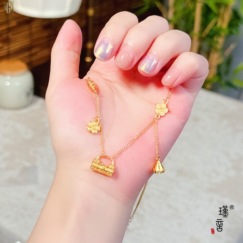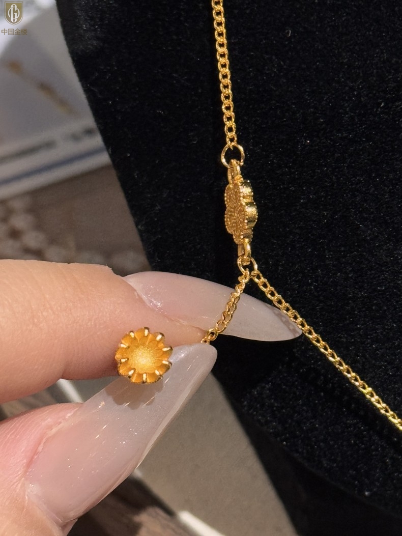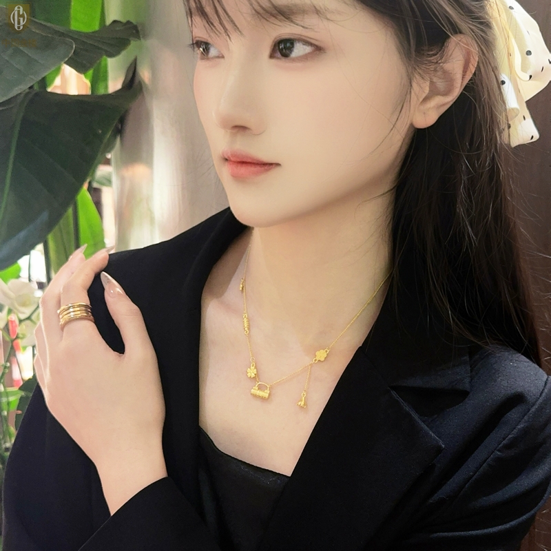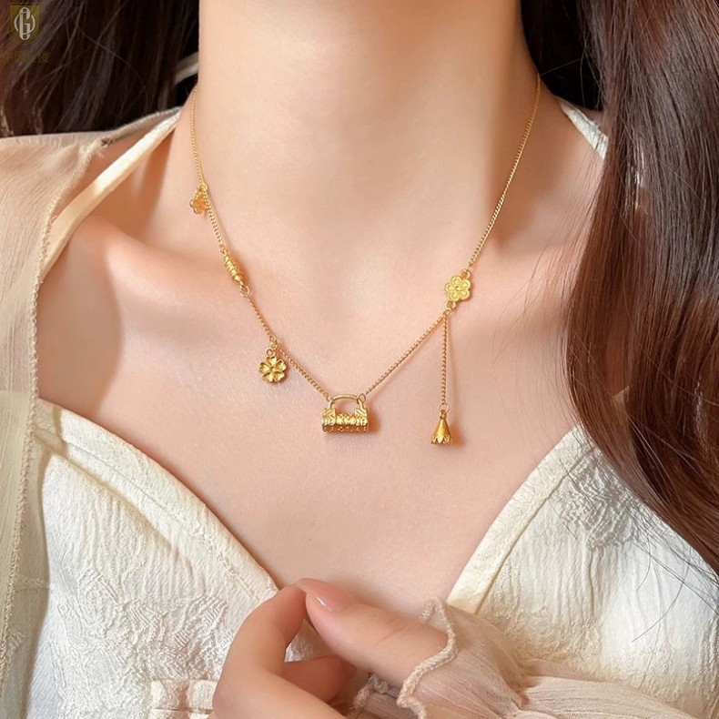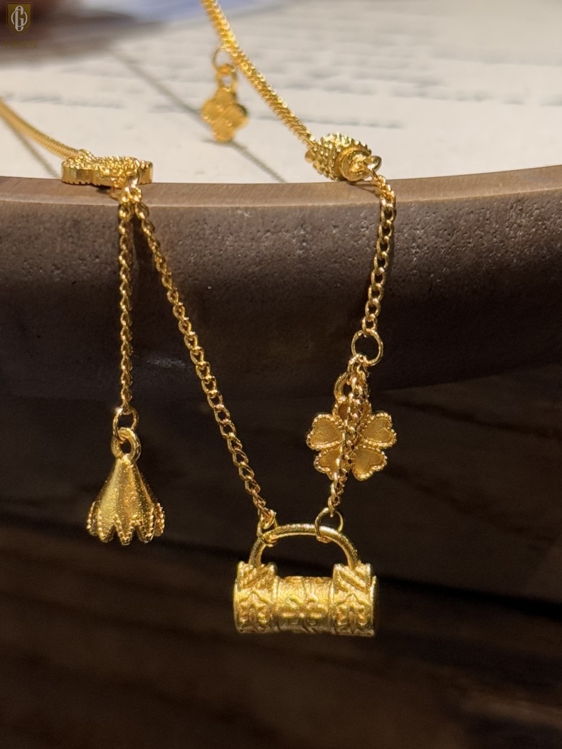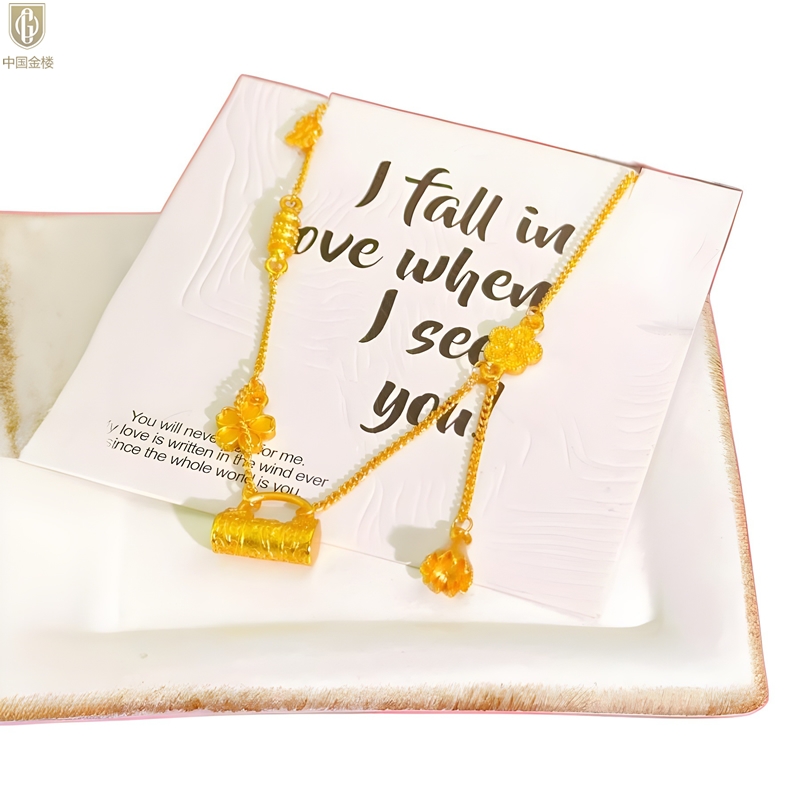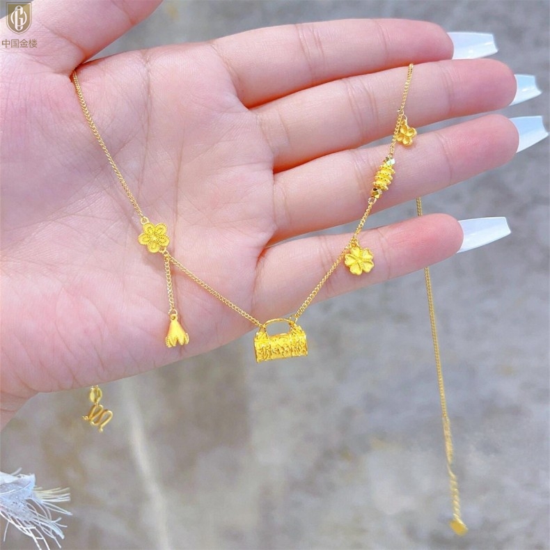 【品名】中国金楼硕果累累繁花锁包古法K金项链