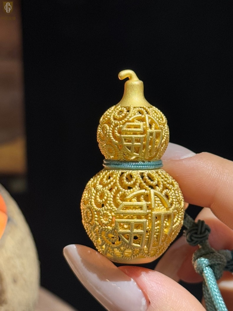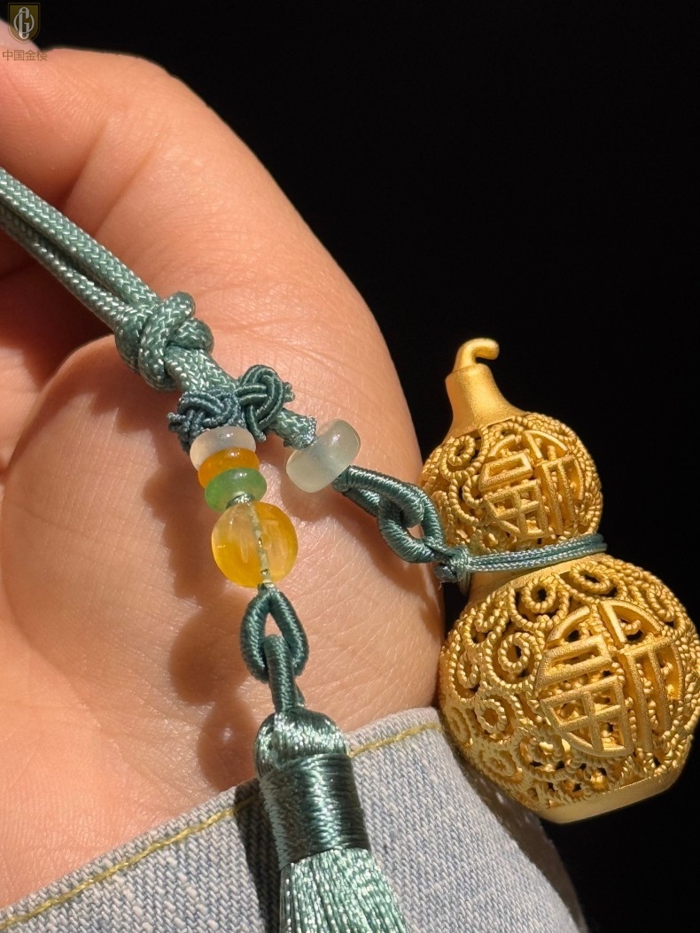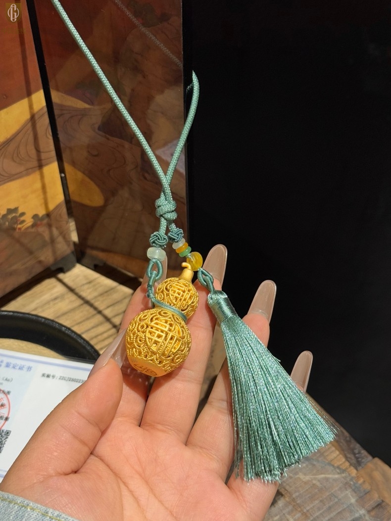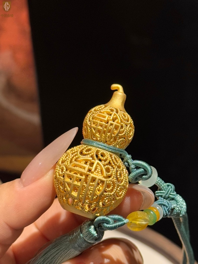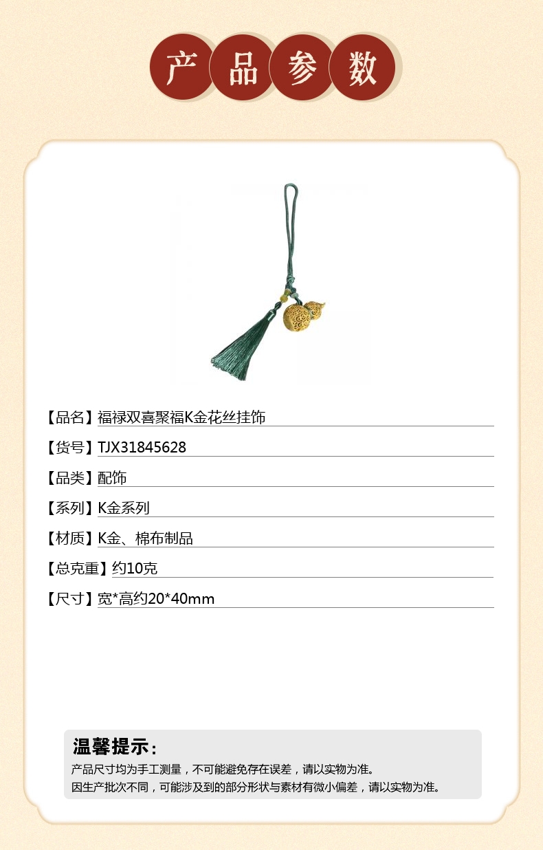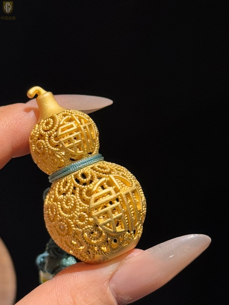 【品名】中国金楼福禄双喜聚福K金花丝挂饰