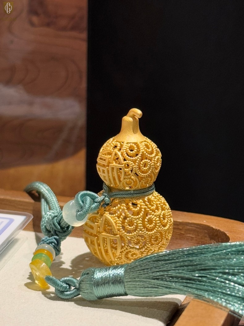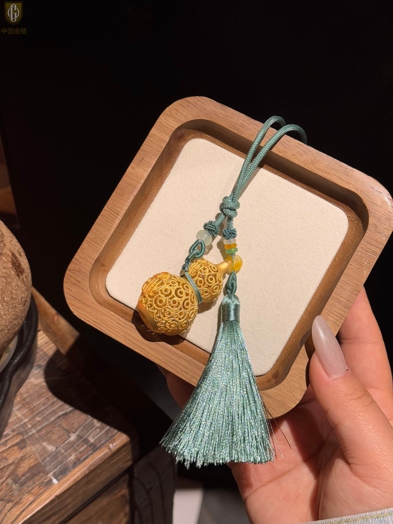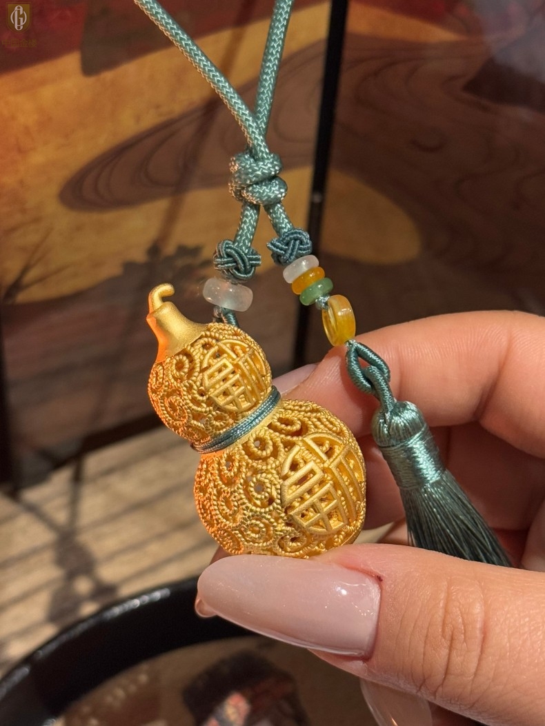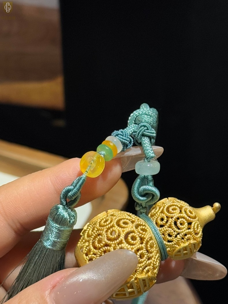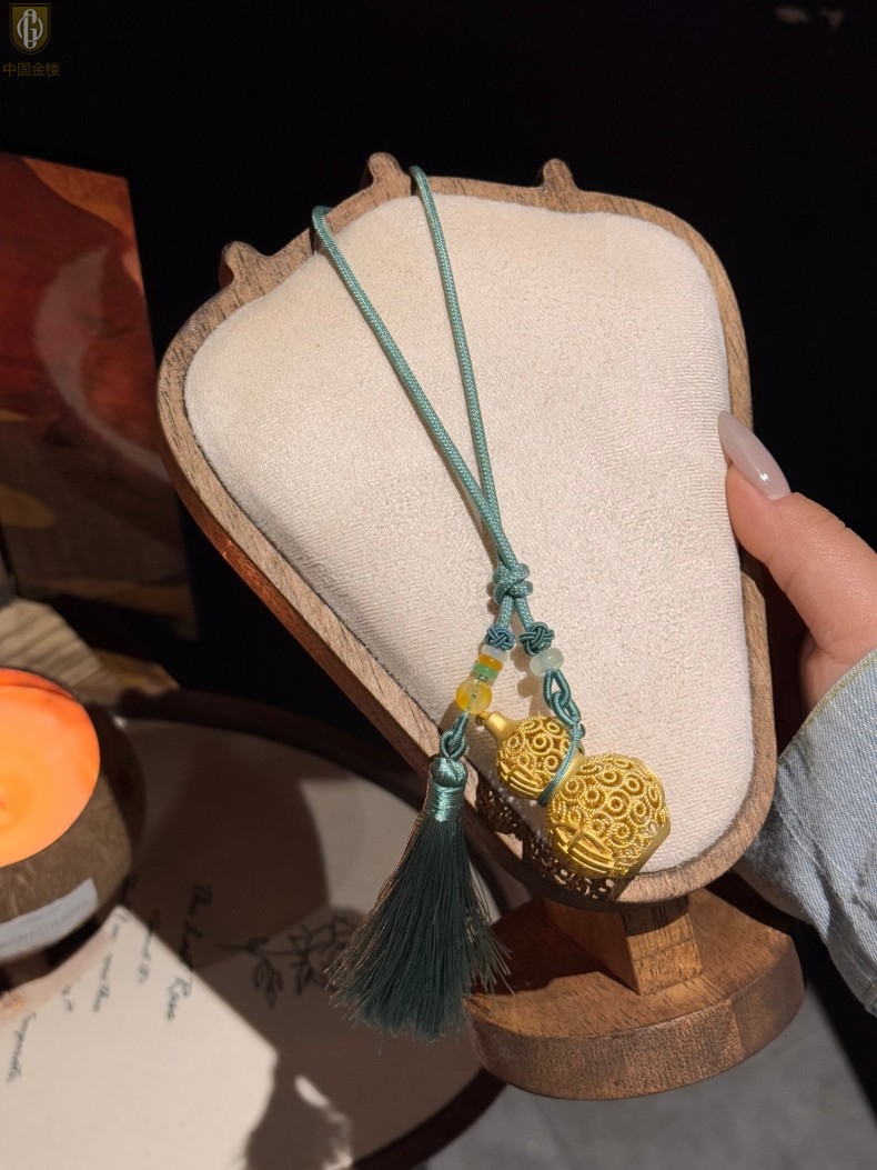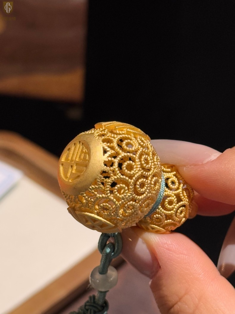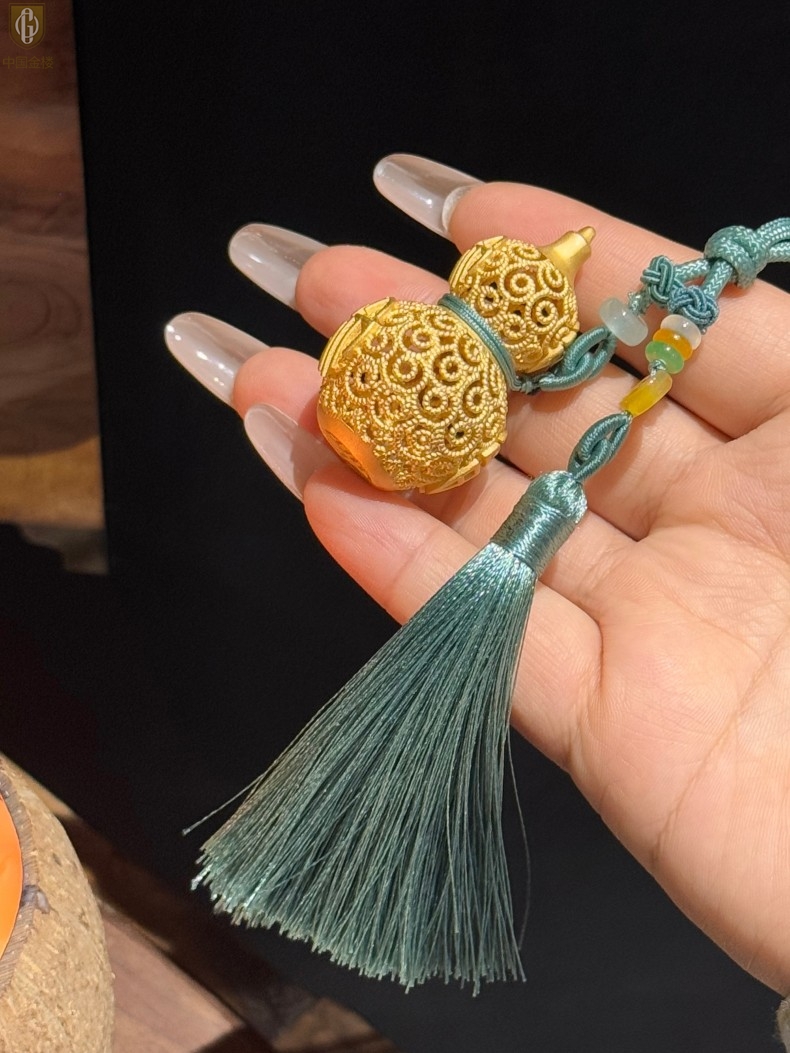 【品名】中国金楼福禄双喜聚福K金花丝挂饰