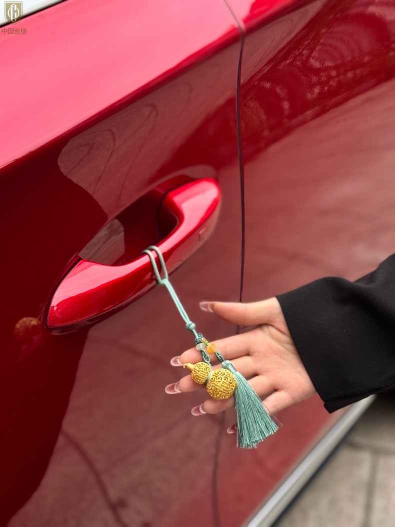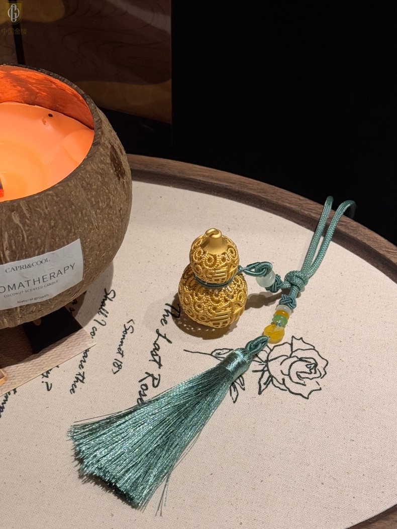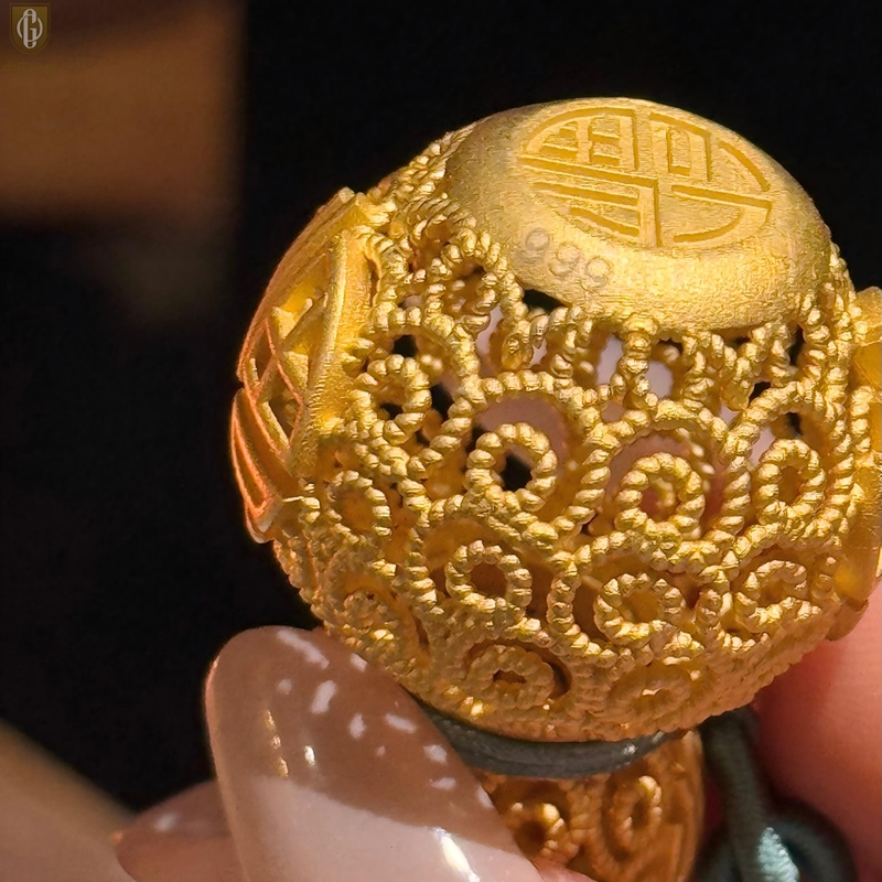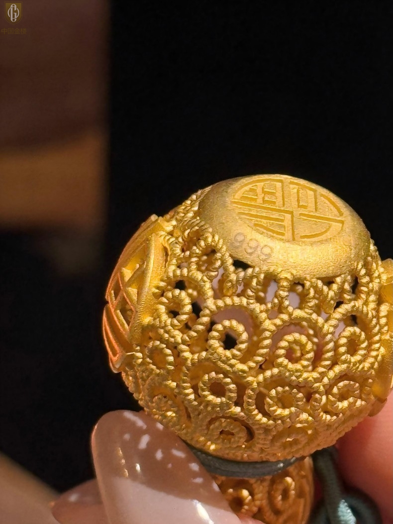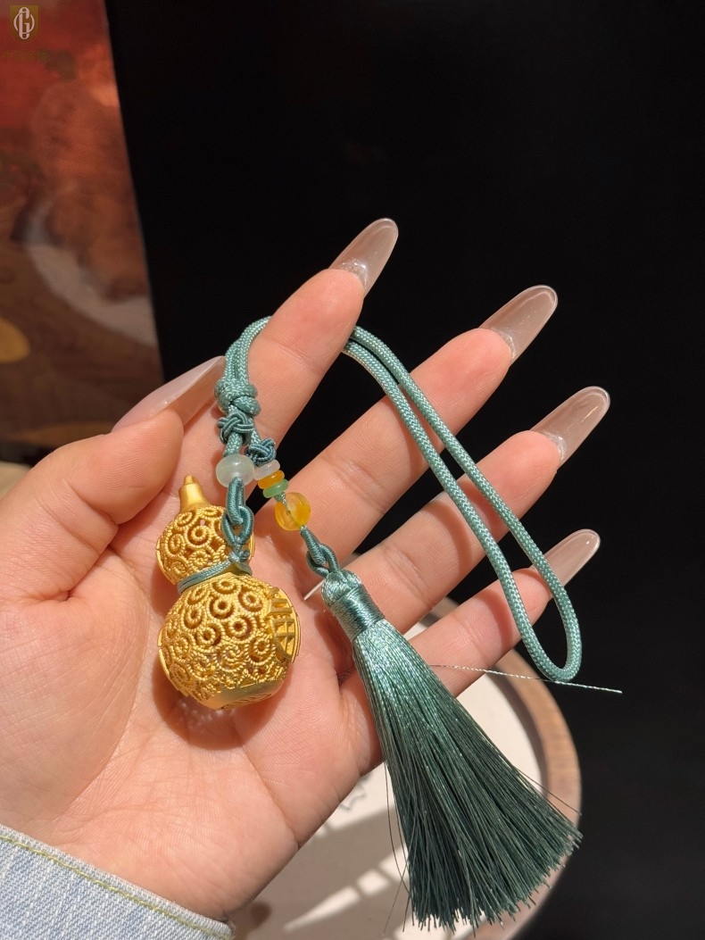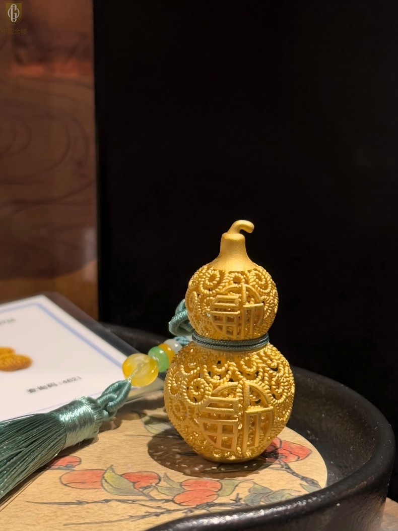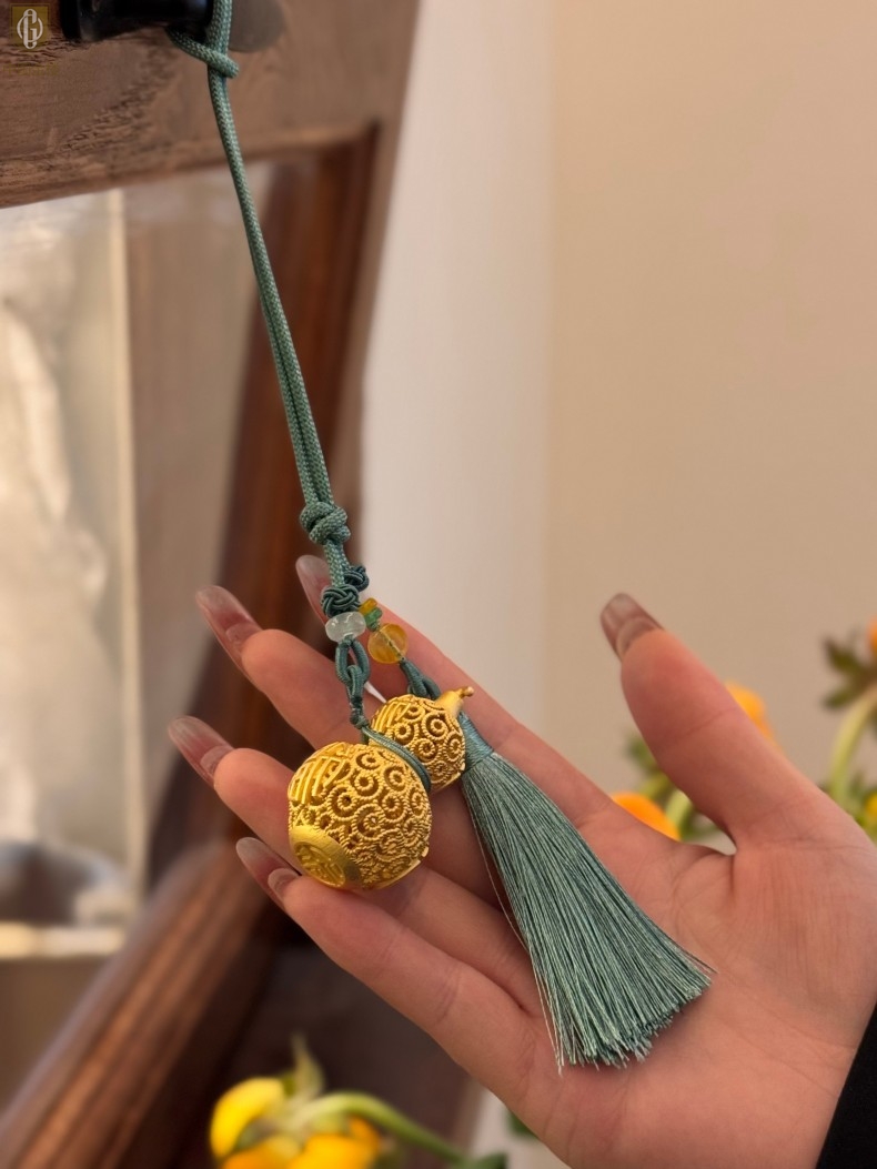 【品名】中国金楼福禄双喜聚福K金花丝挂饰