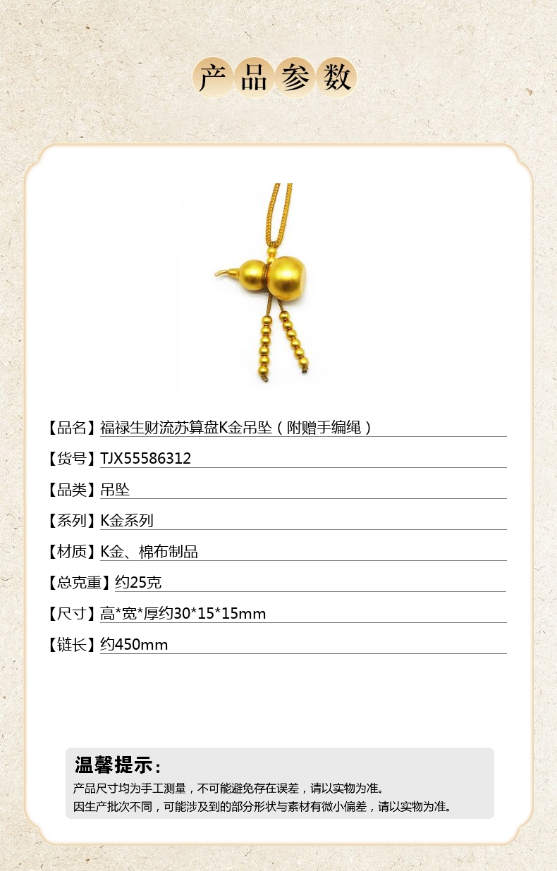 【品名】中国金楼福禄生财流苏算盘K金吊坠(附赠手编绳)