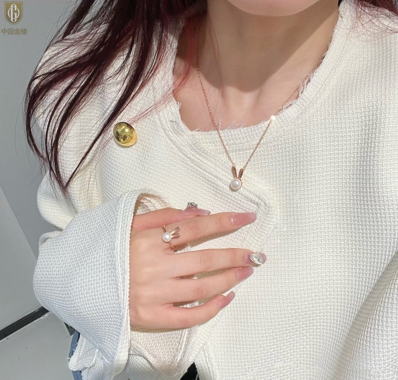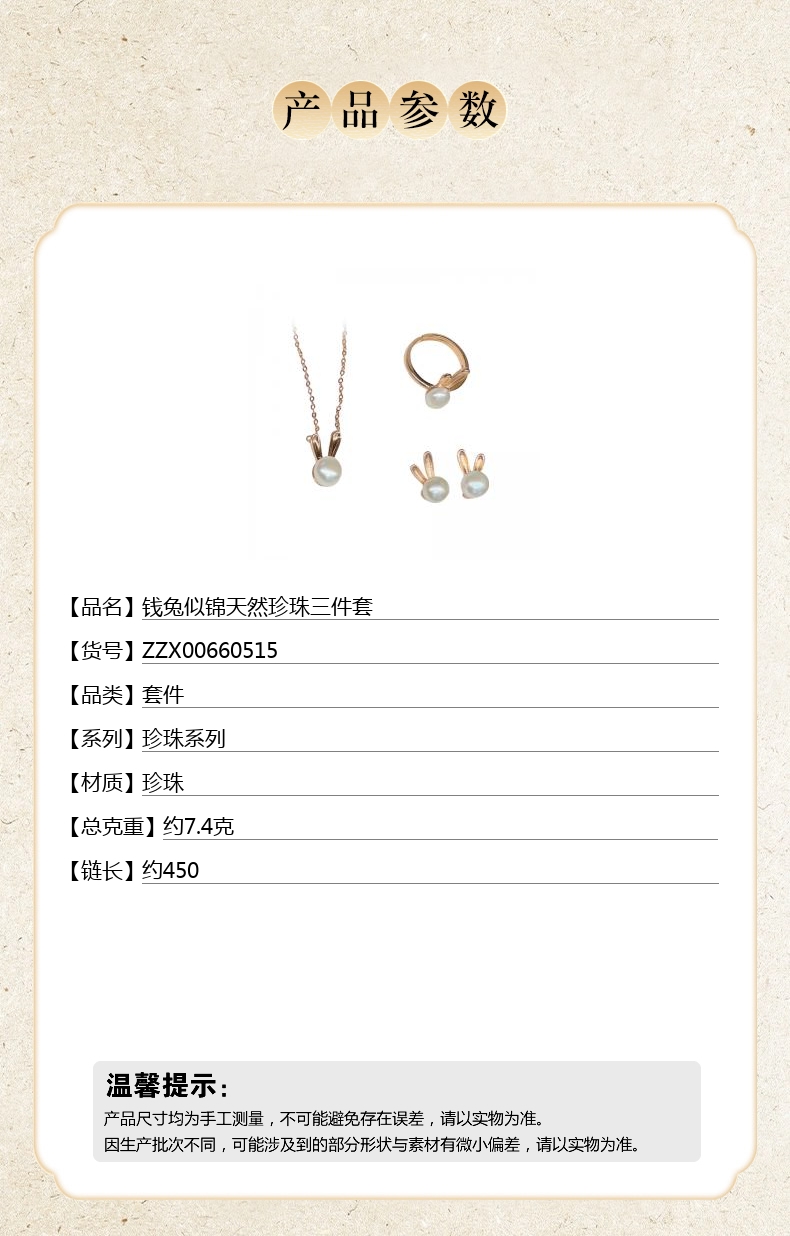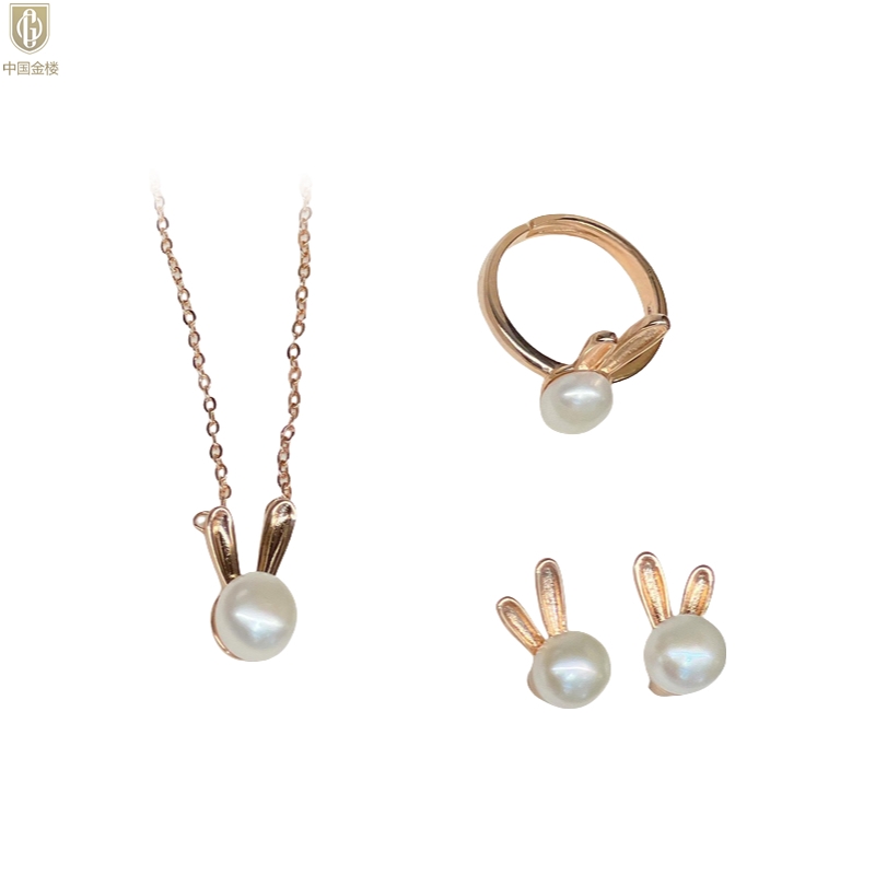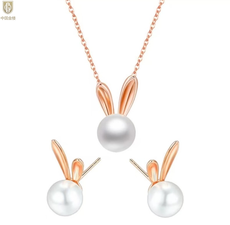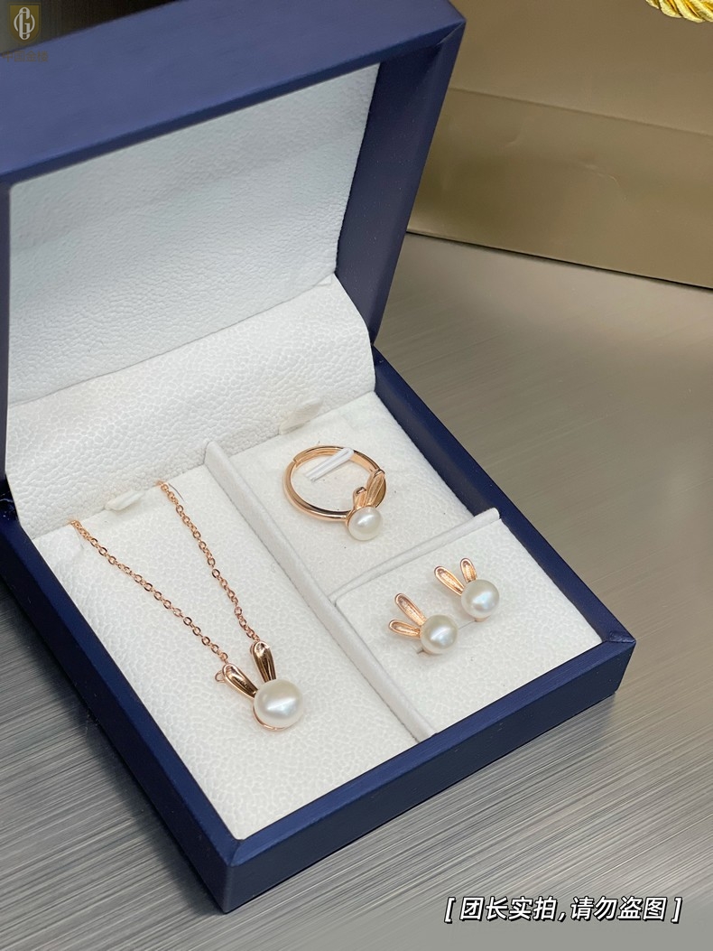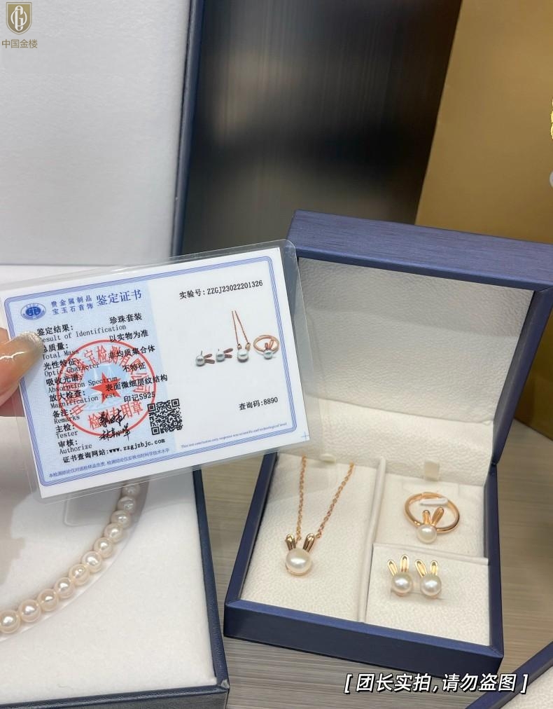 【品名】中国金楼钱兔似锦天然珍珠三件套