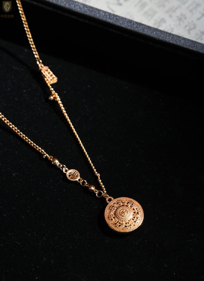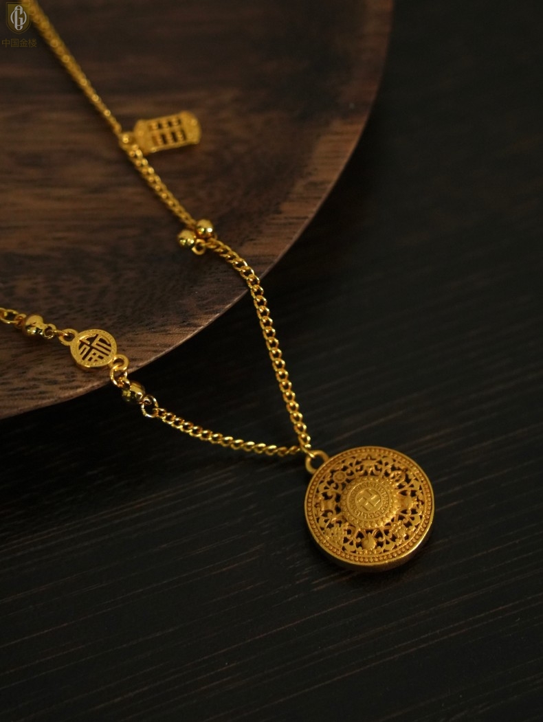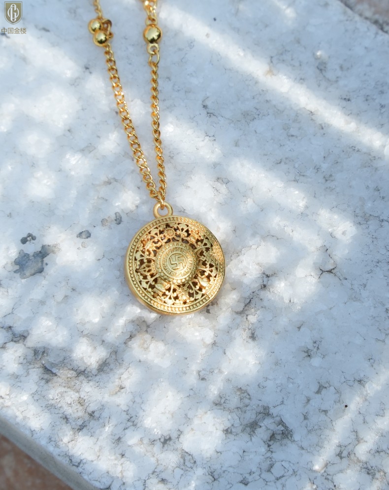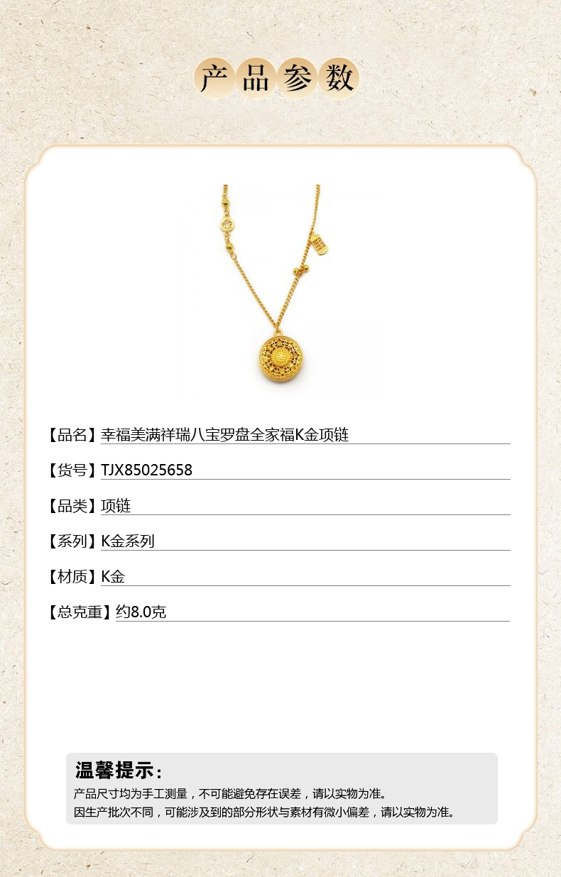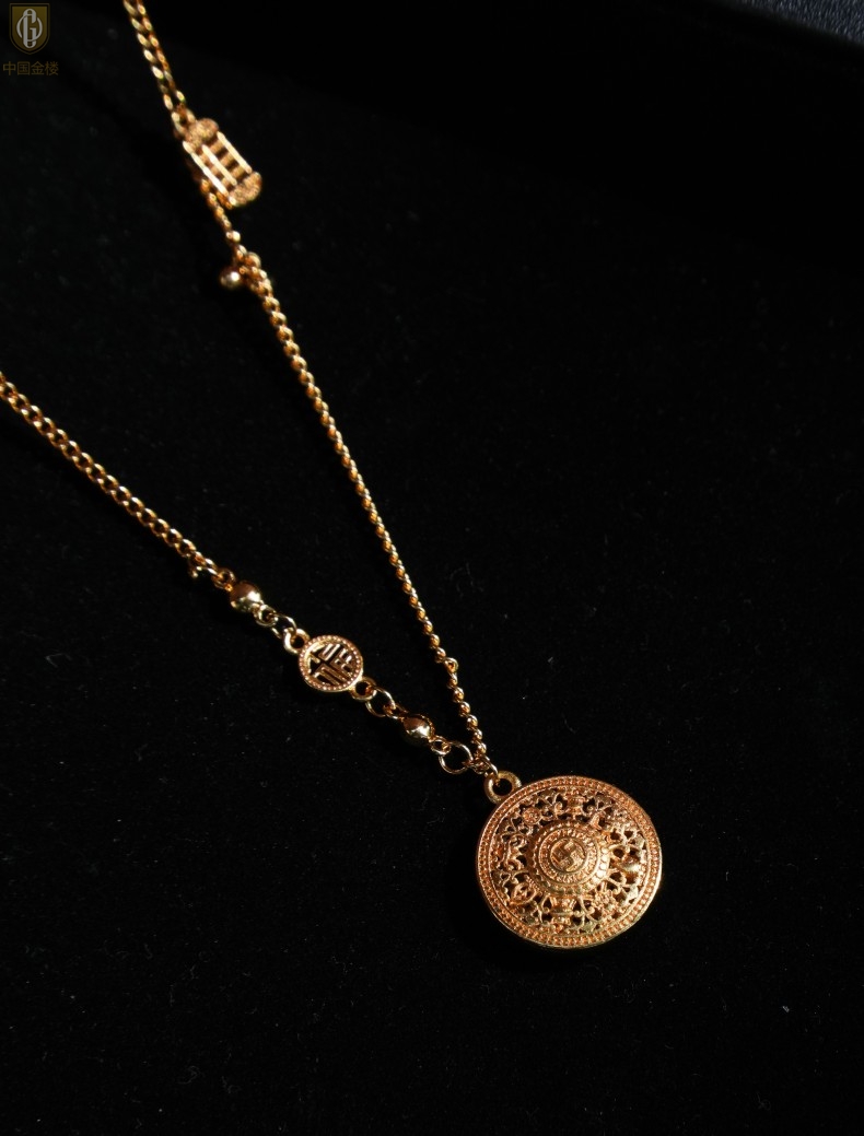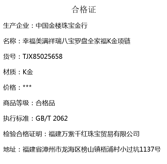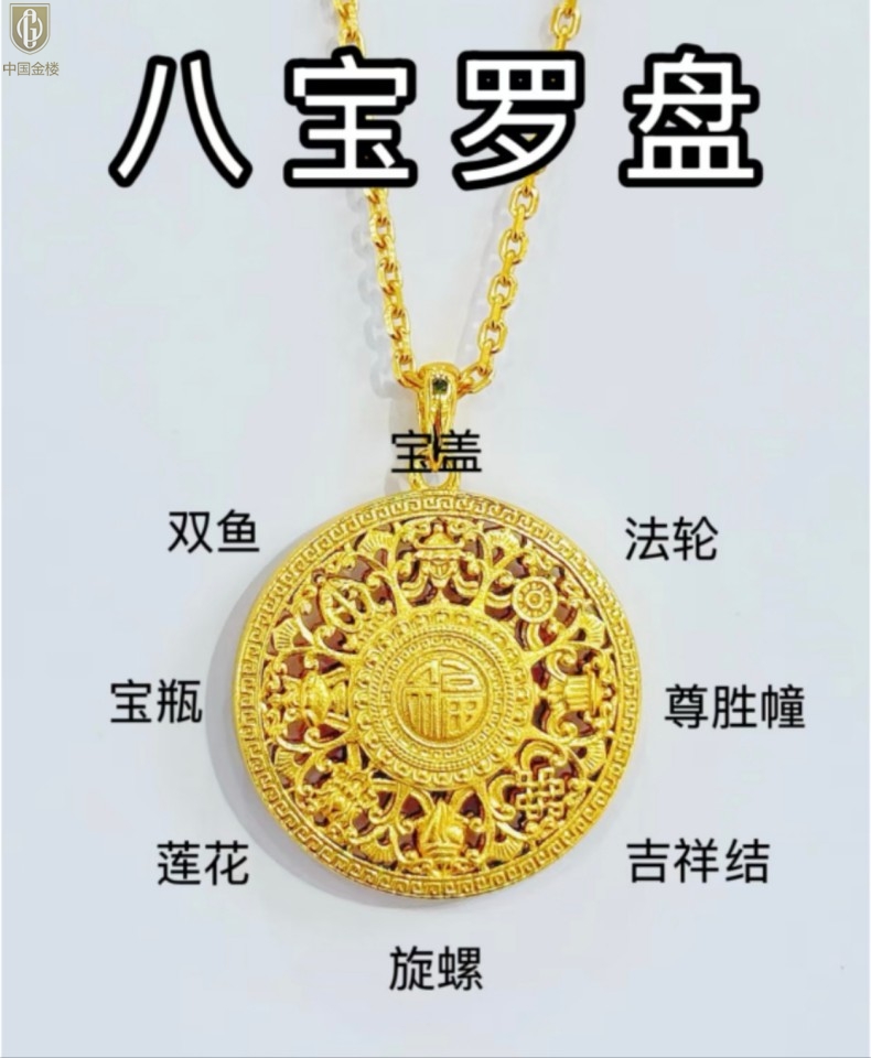 【品名】中国金楼幸福美满祥瑞八宝罗盘全家福K金项链