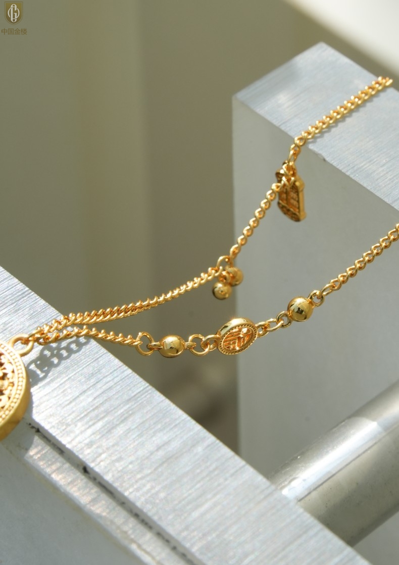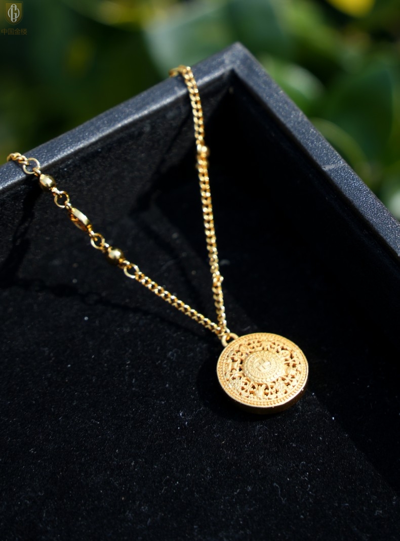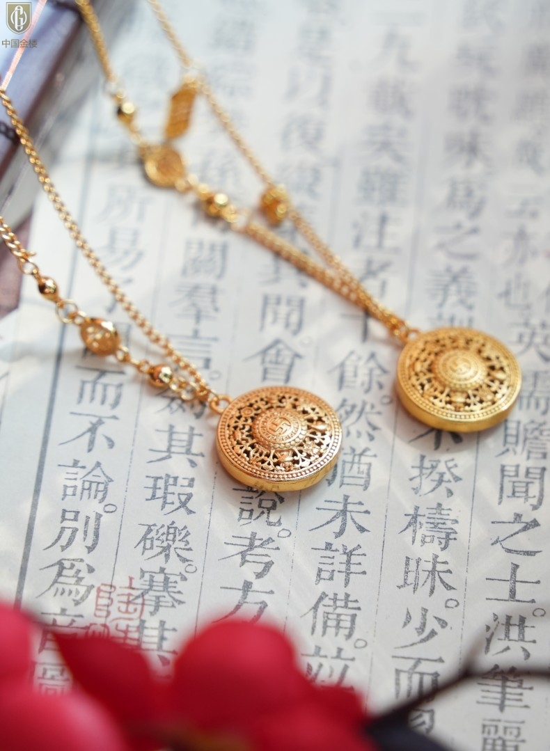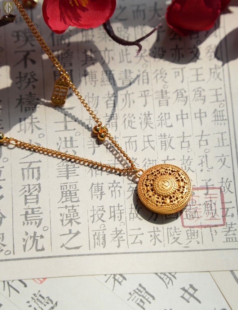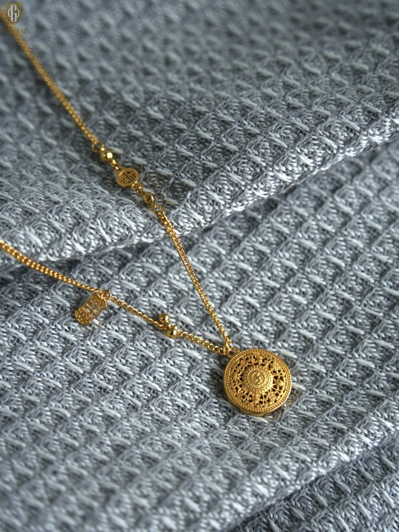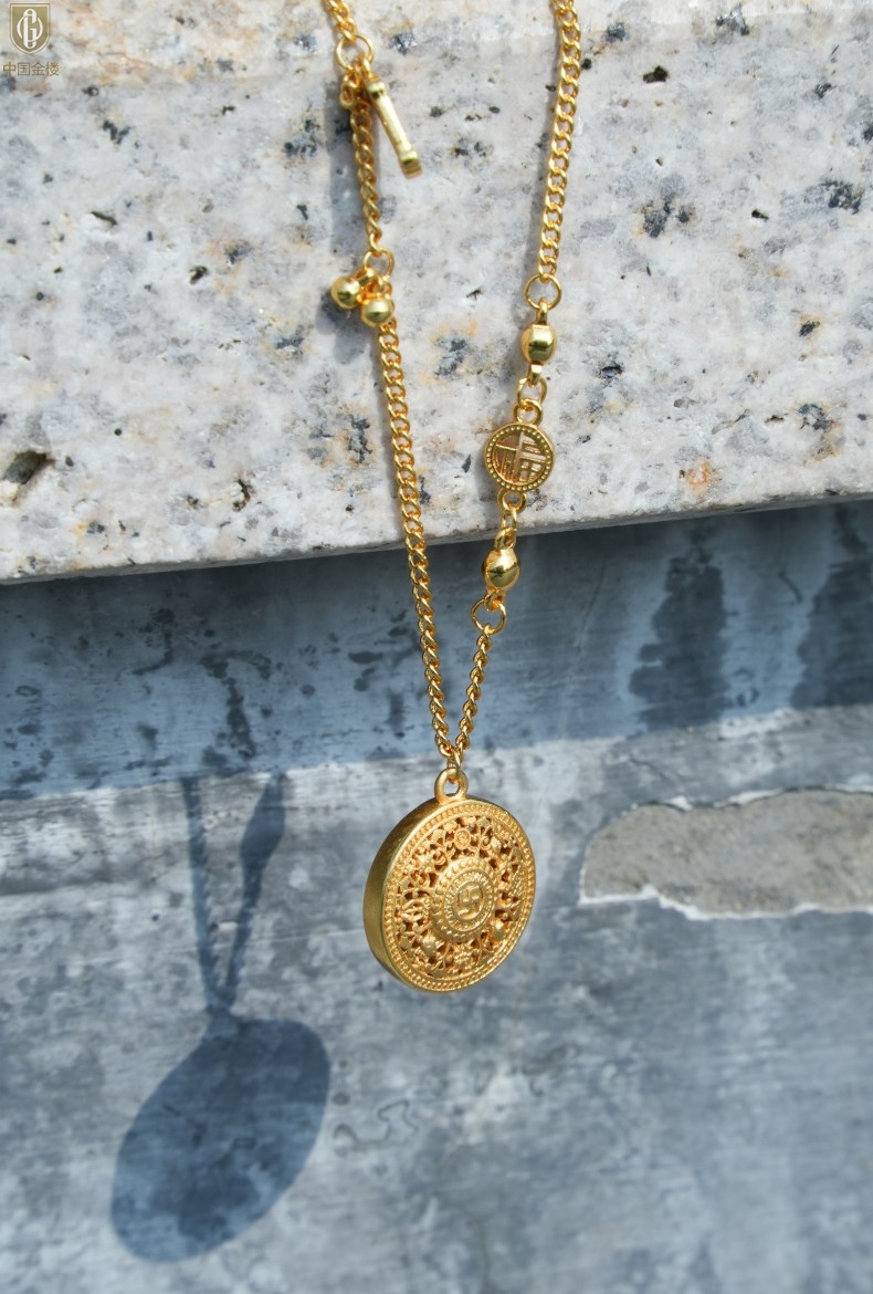 【品名】中国金楼幸福美满祥瑞八宝罗盘全家福K金项链