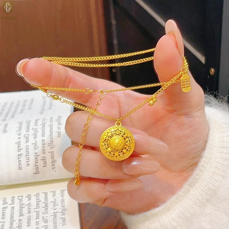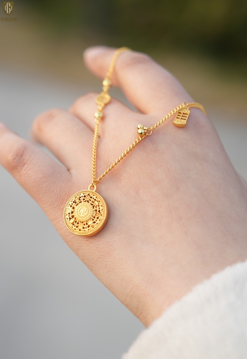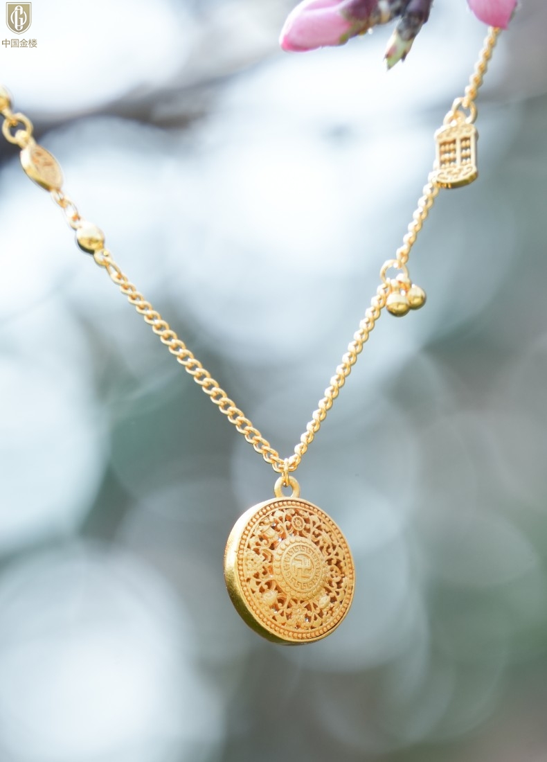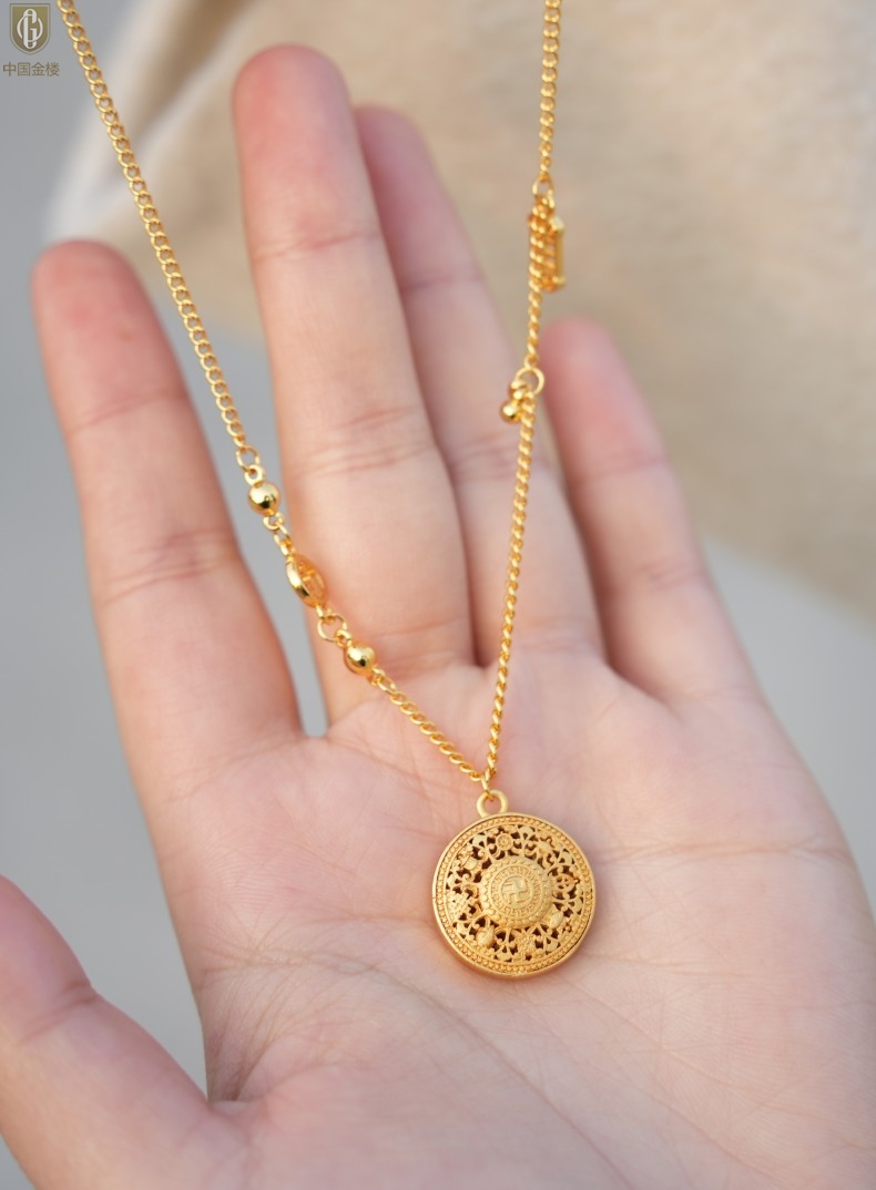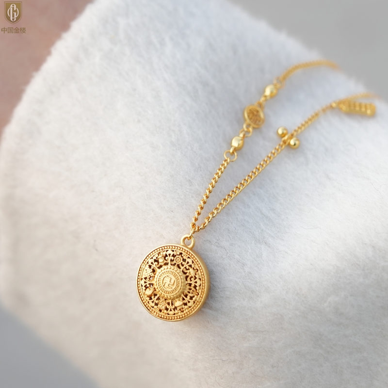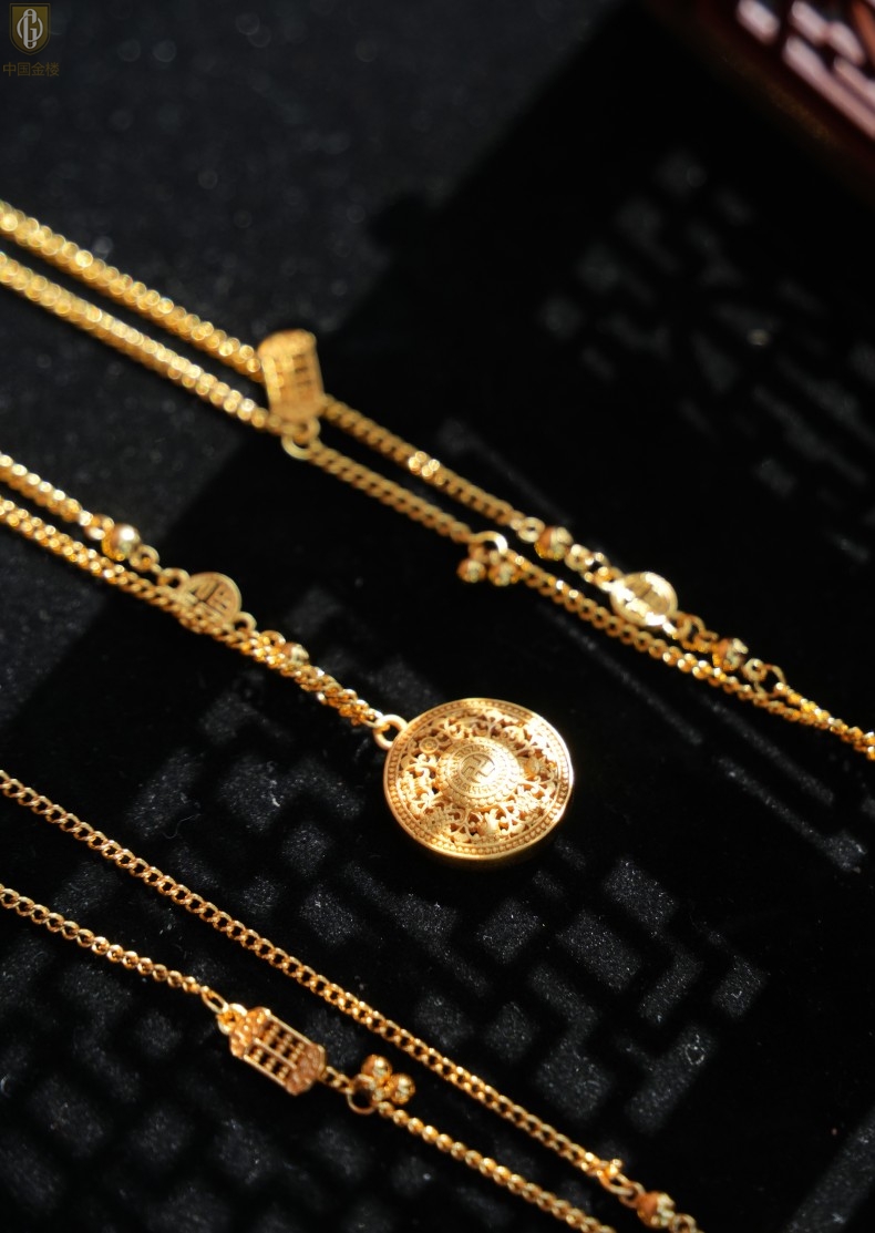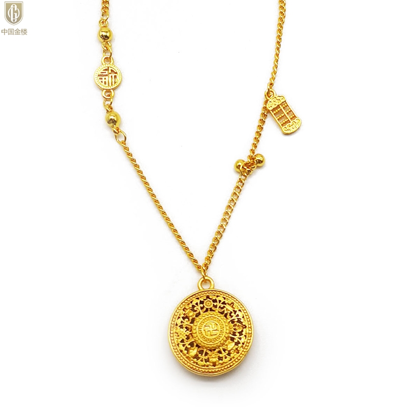 【品名】中国金楼幸福美满祥瑞八宝罗盘全家福K金项链