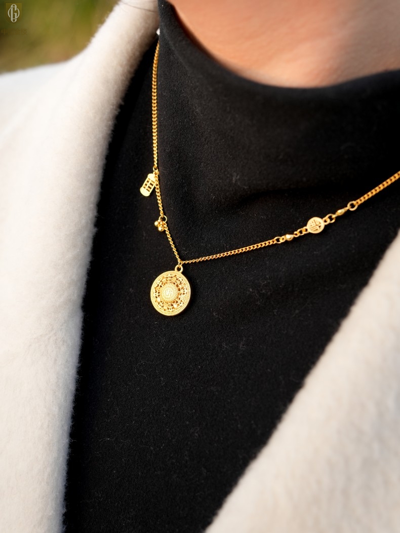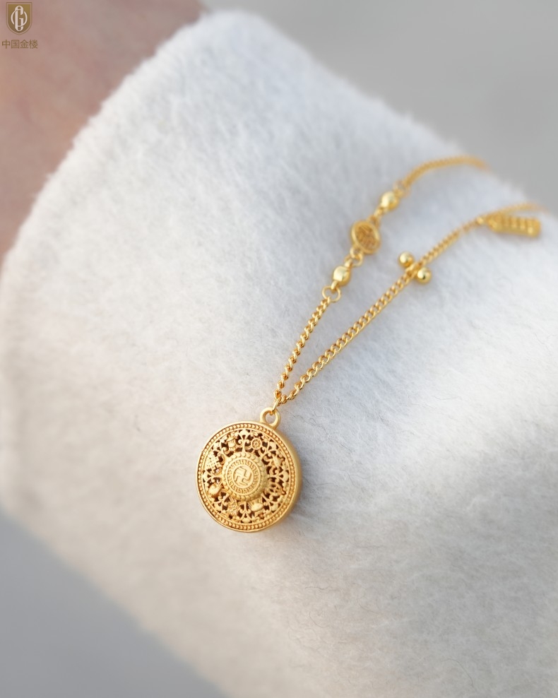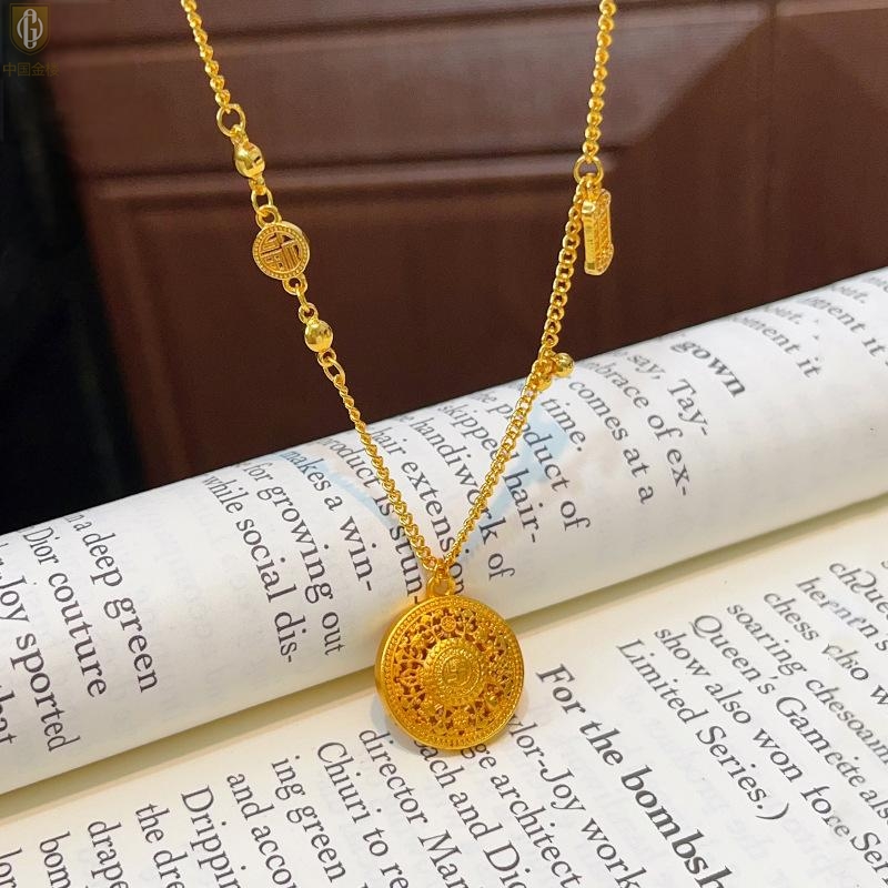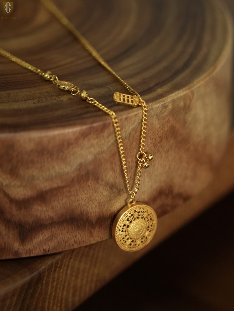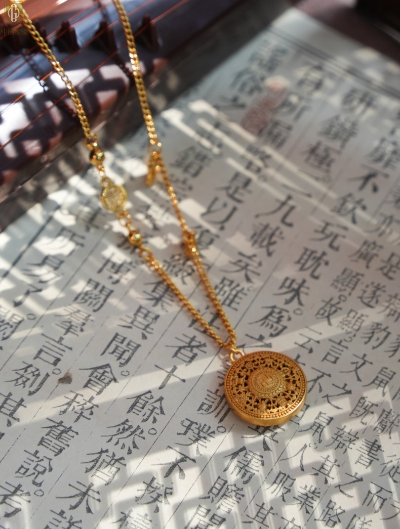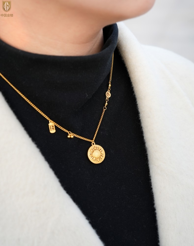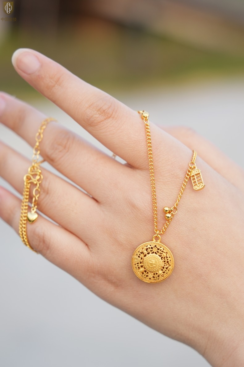 【品名】中国金楼幸福美满祥瑞八宝罗盘全家福K金项链