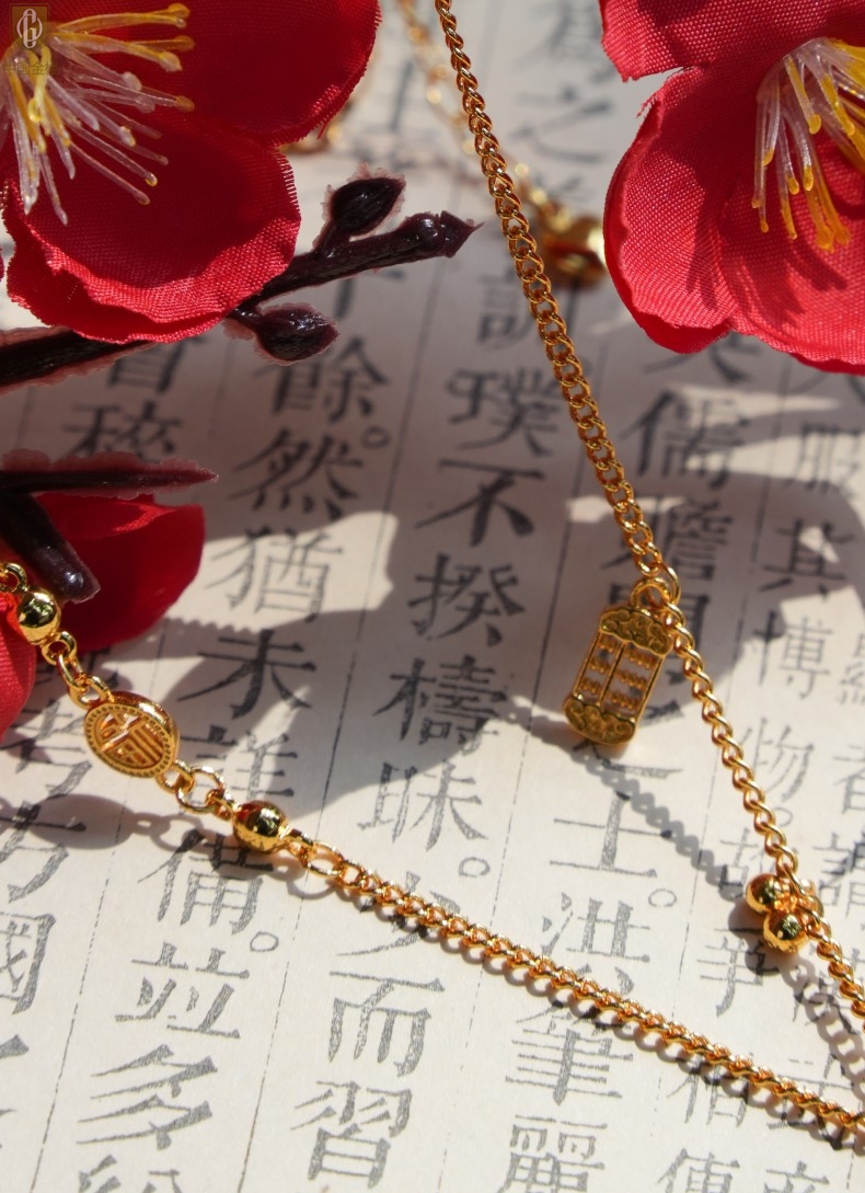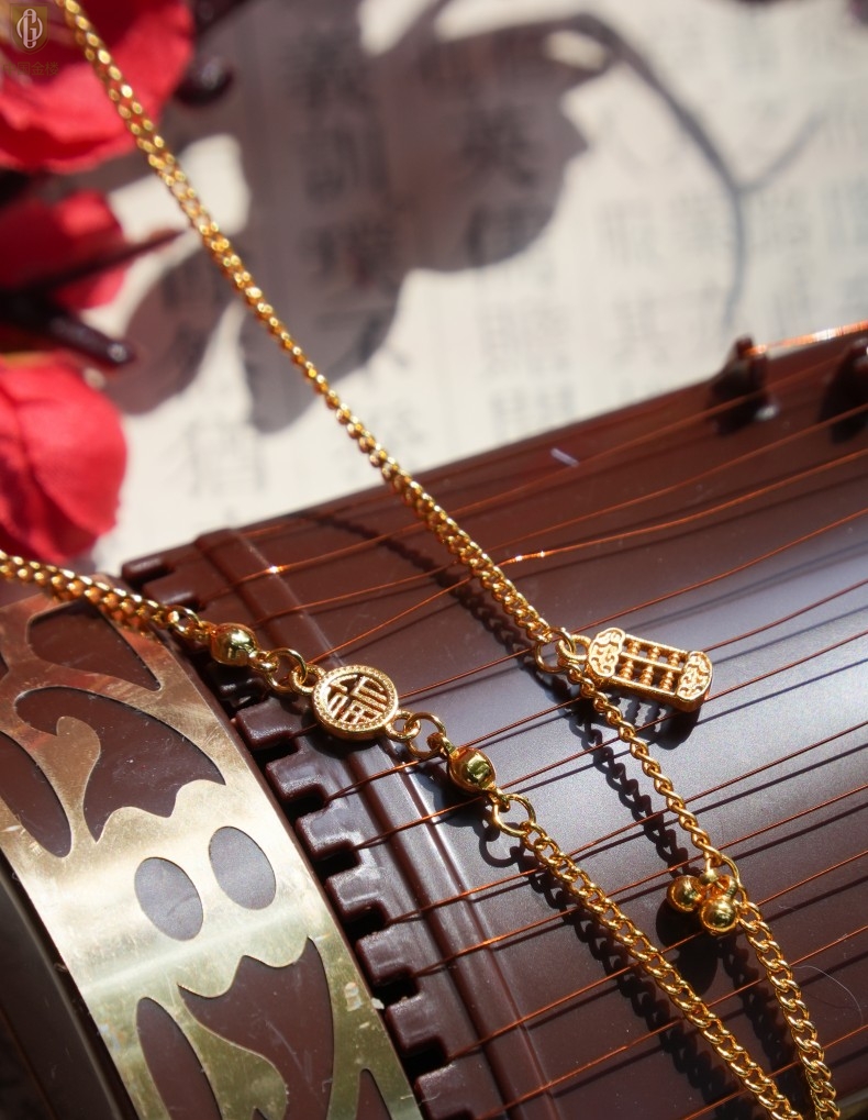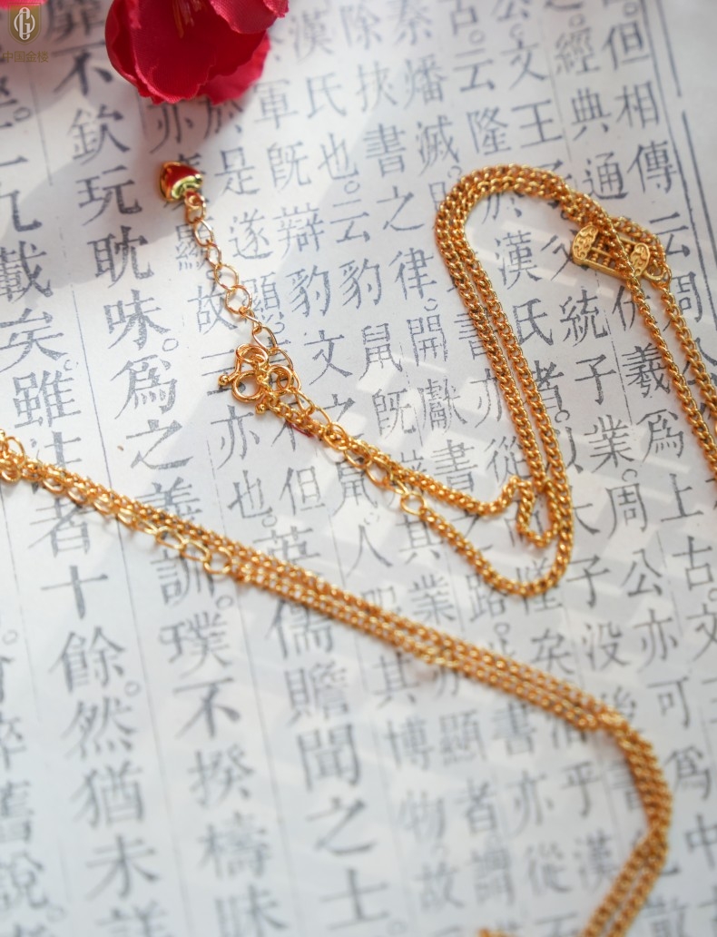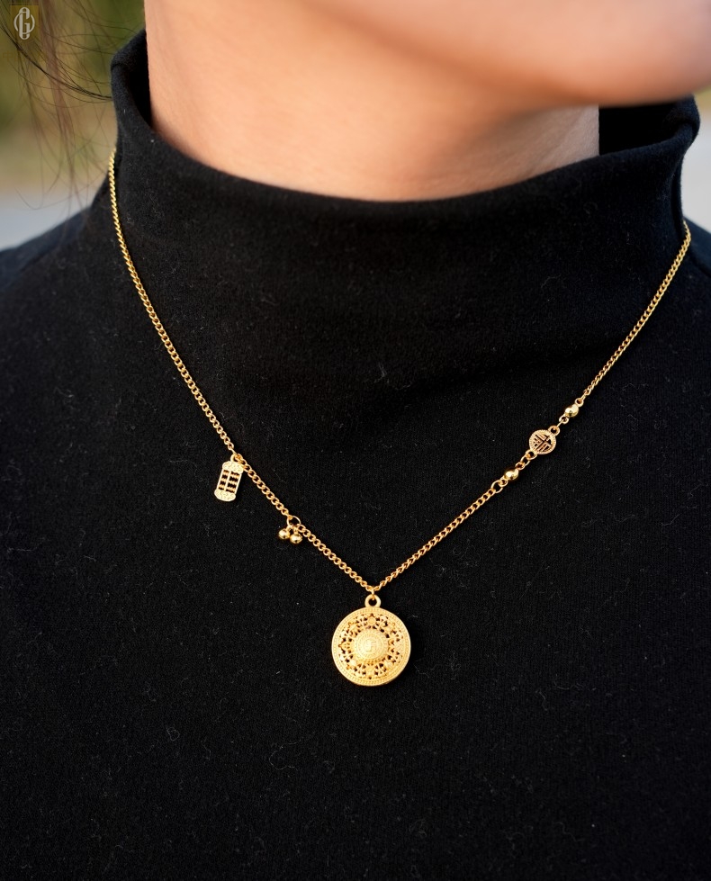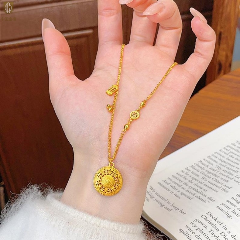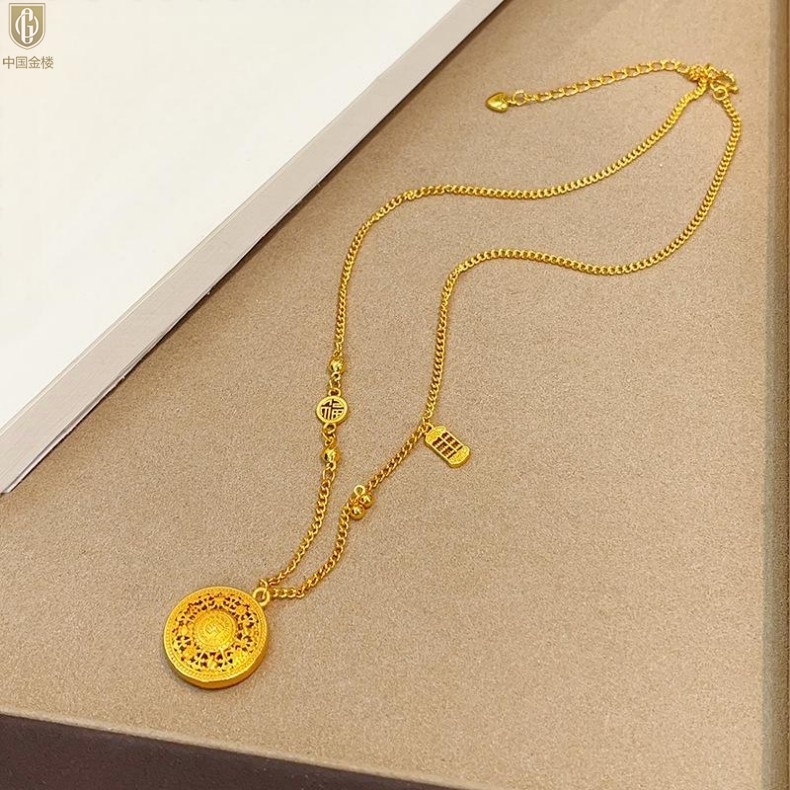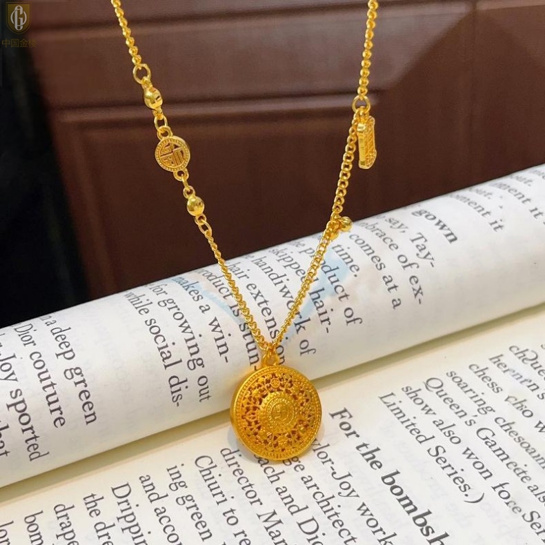 【品名】中国金楼幸福美满祥瑞八宝罗盘全家福K金项链