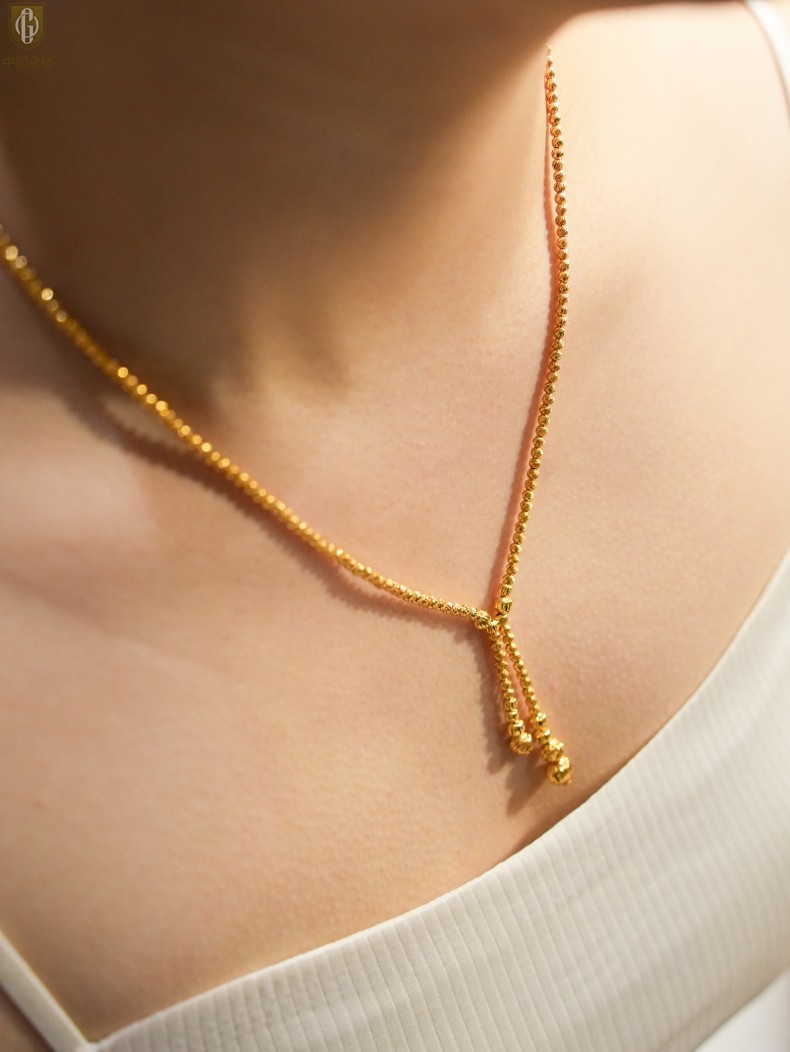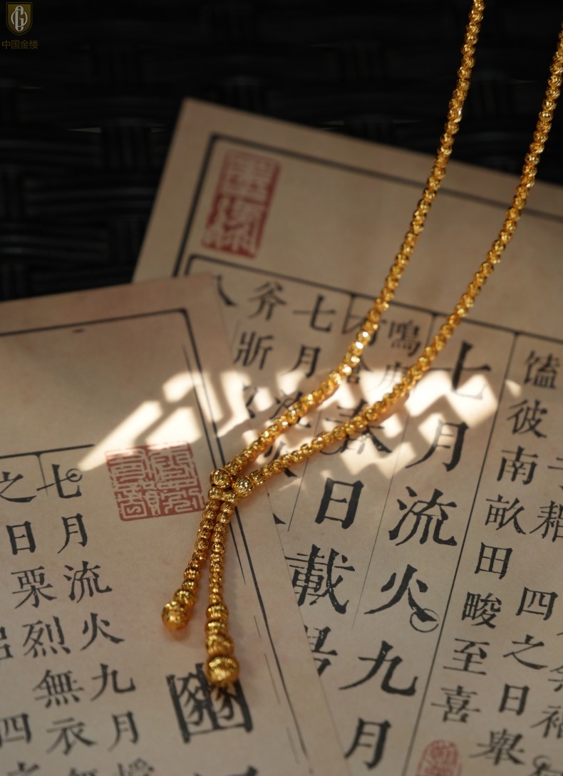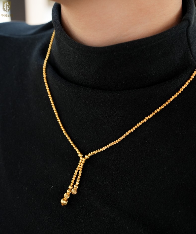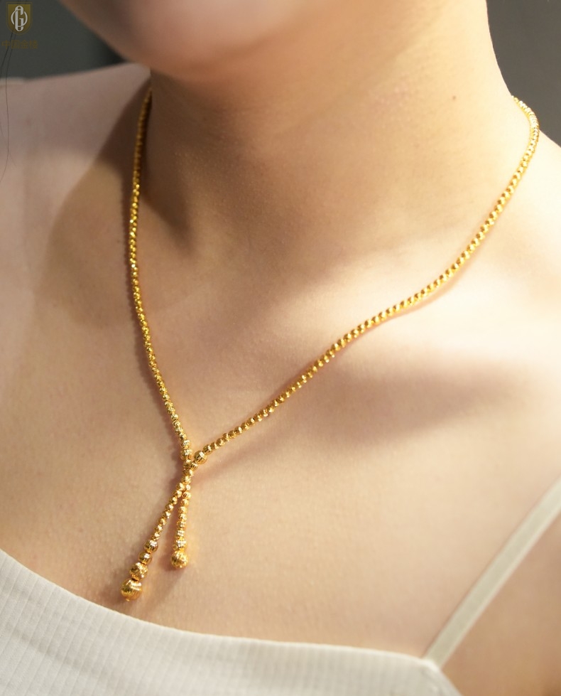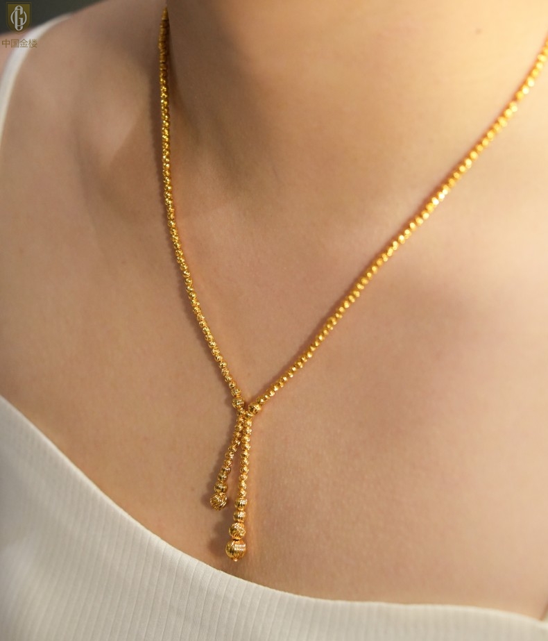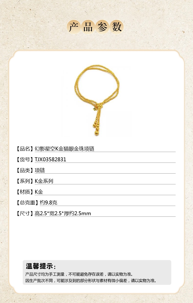 【品名】中国金楼幻影星空K金猫眼金珠项链