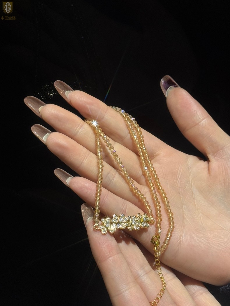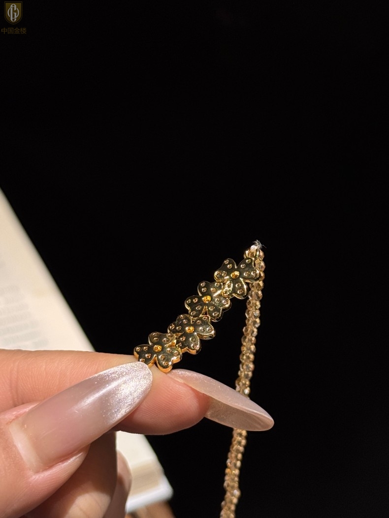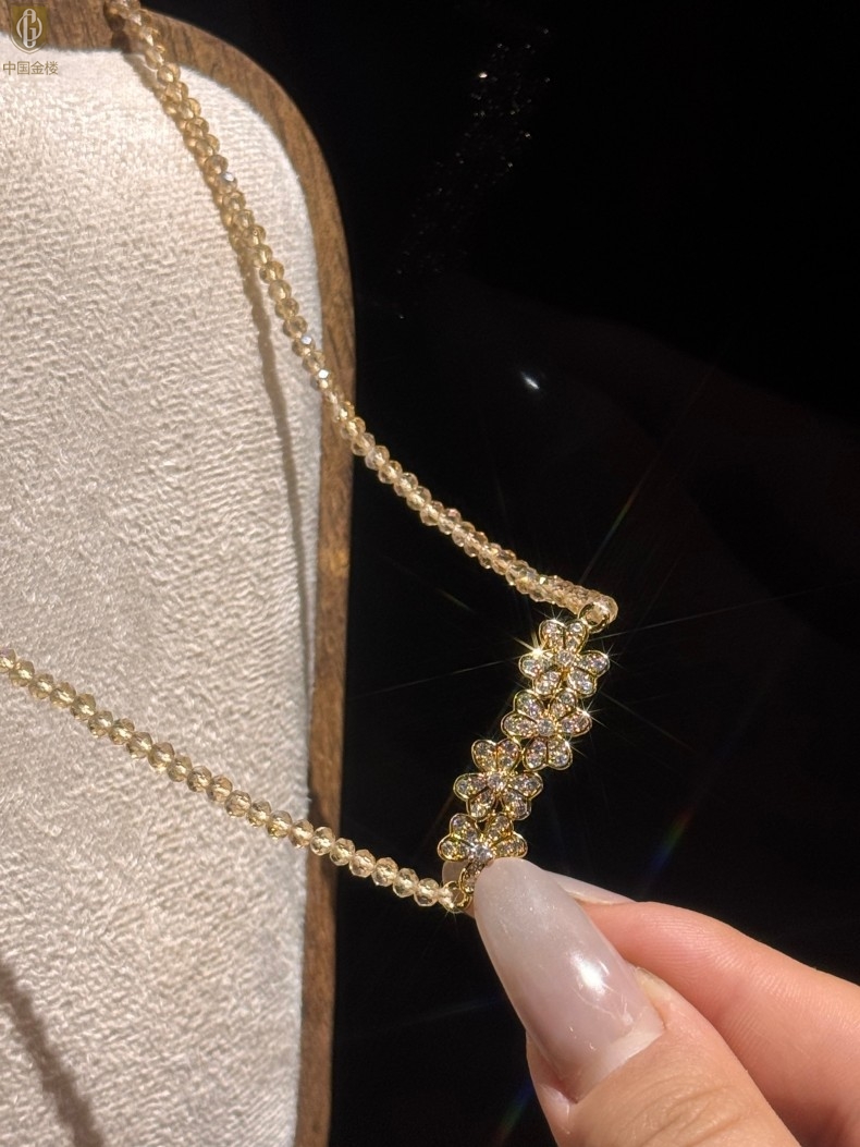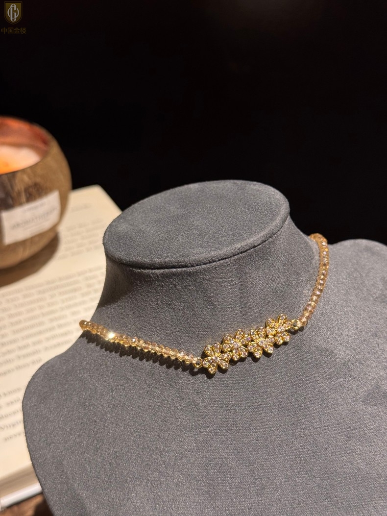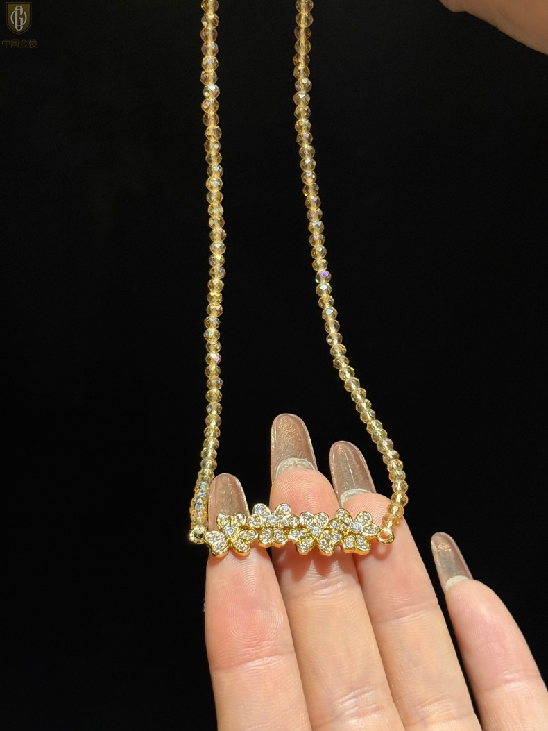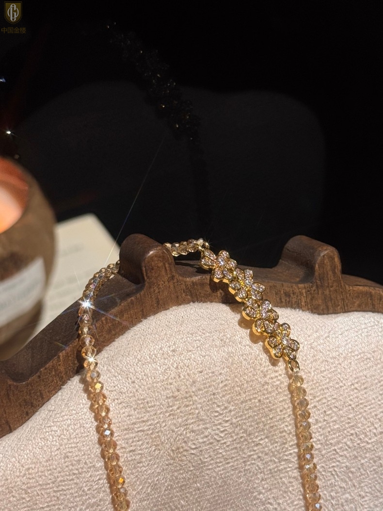【品名】中国金楼幸福连连满钻三叶草招财晶项链