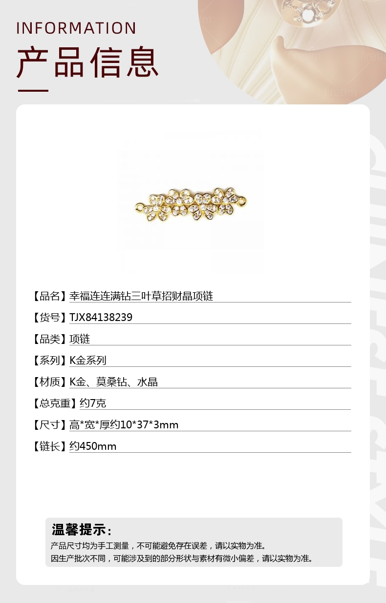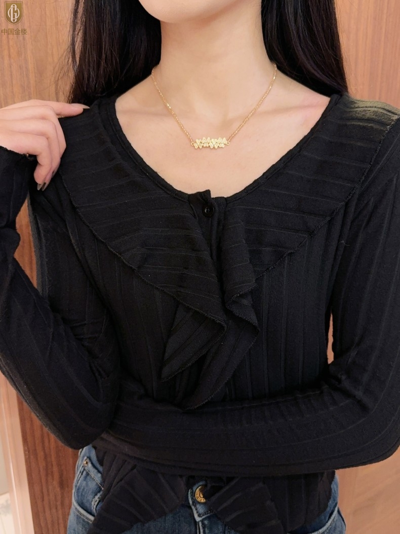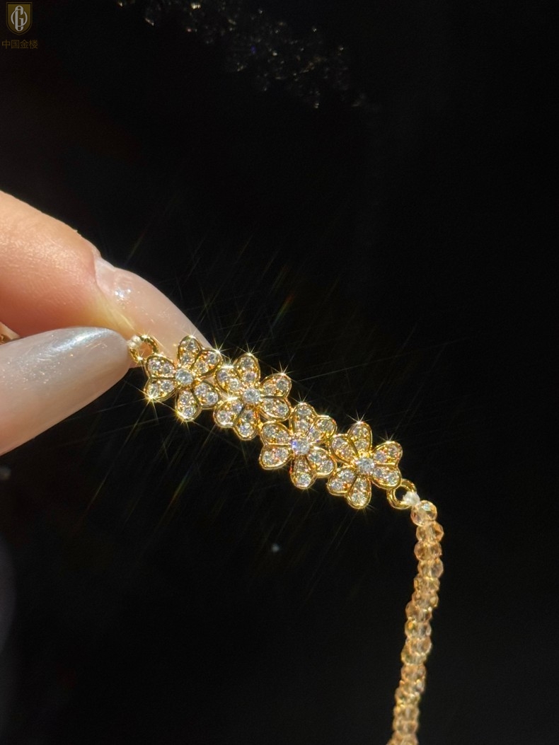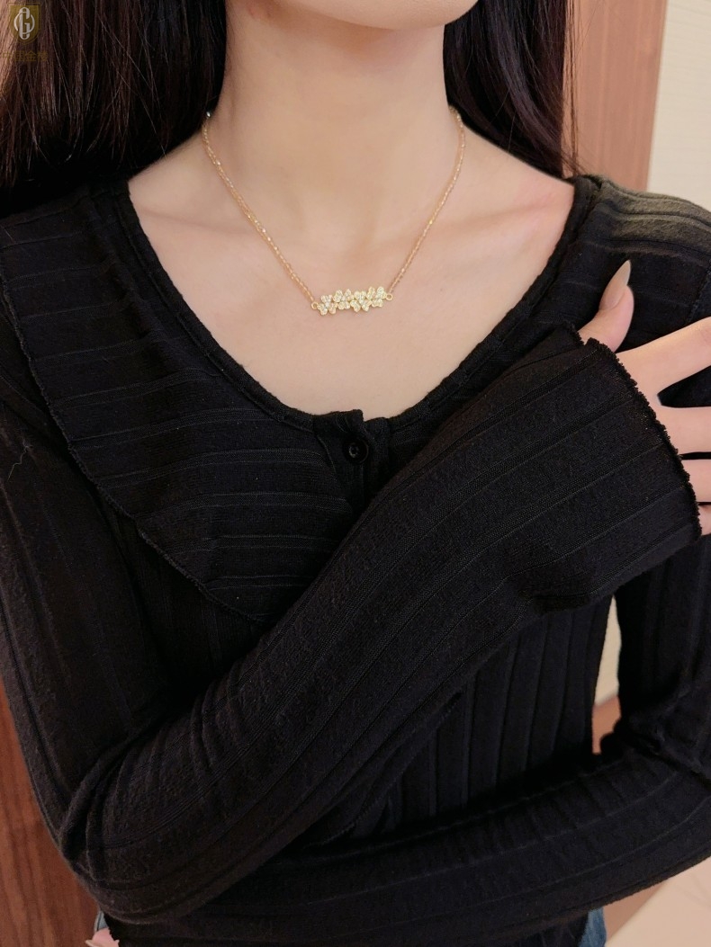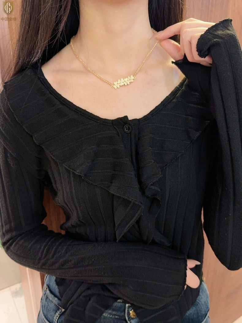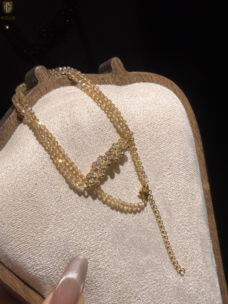 【品名】中国金楼幸福连连满钻三叶草招财晶项链