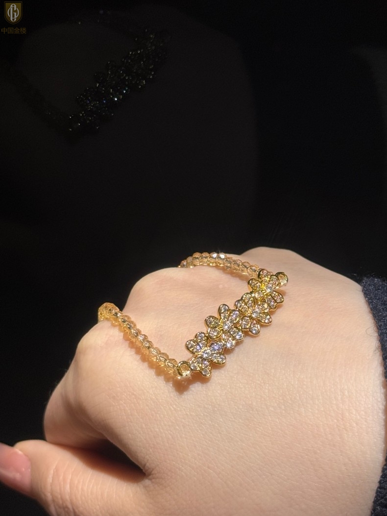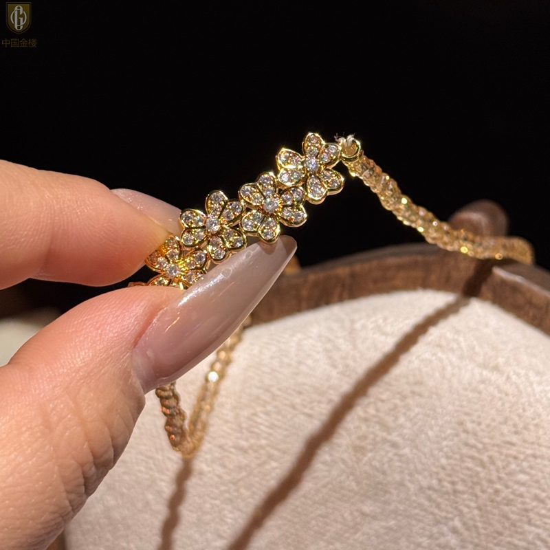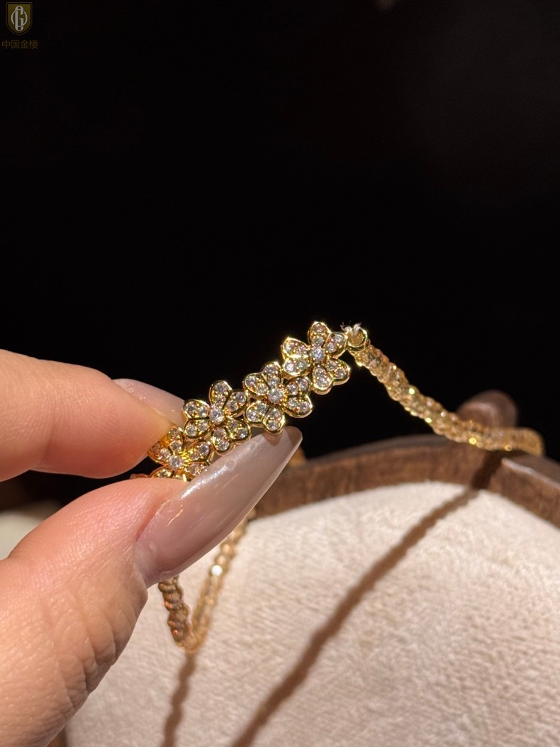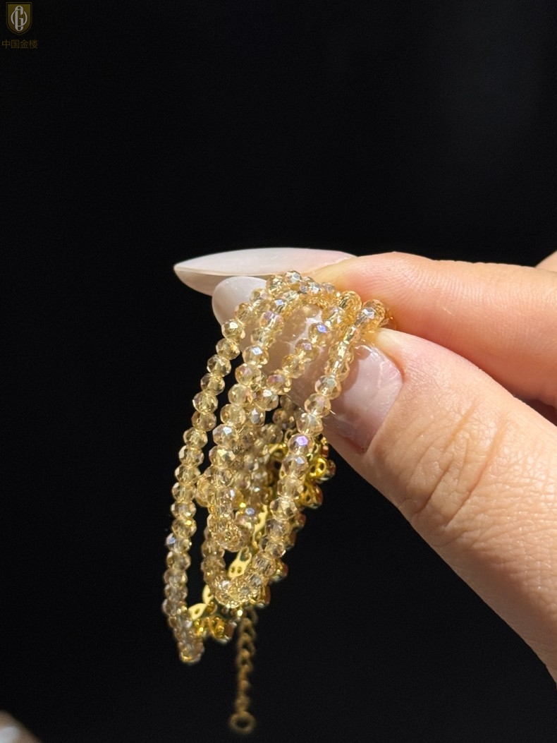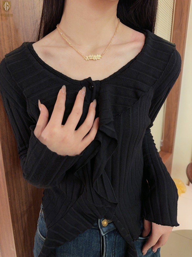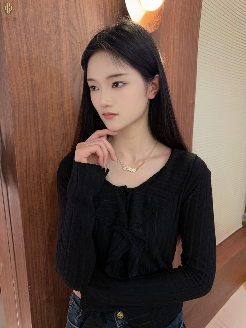 【品名】中国金楼幸福连连满钻三叶草招财晶项链