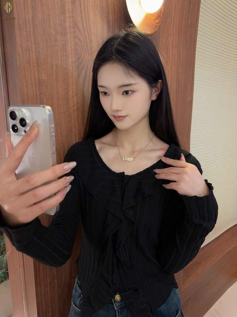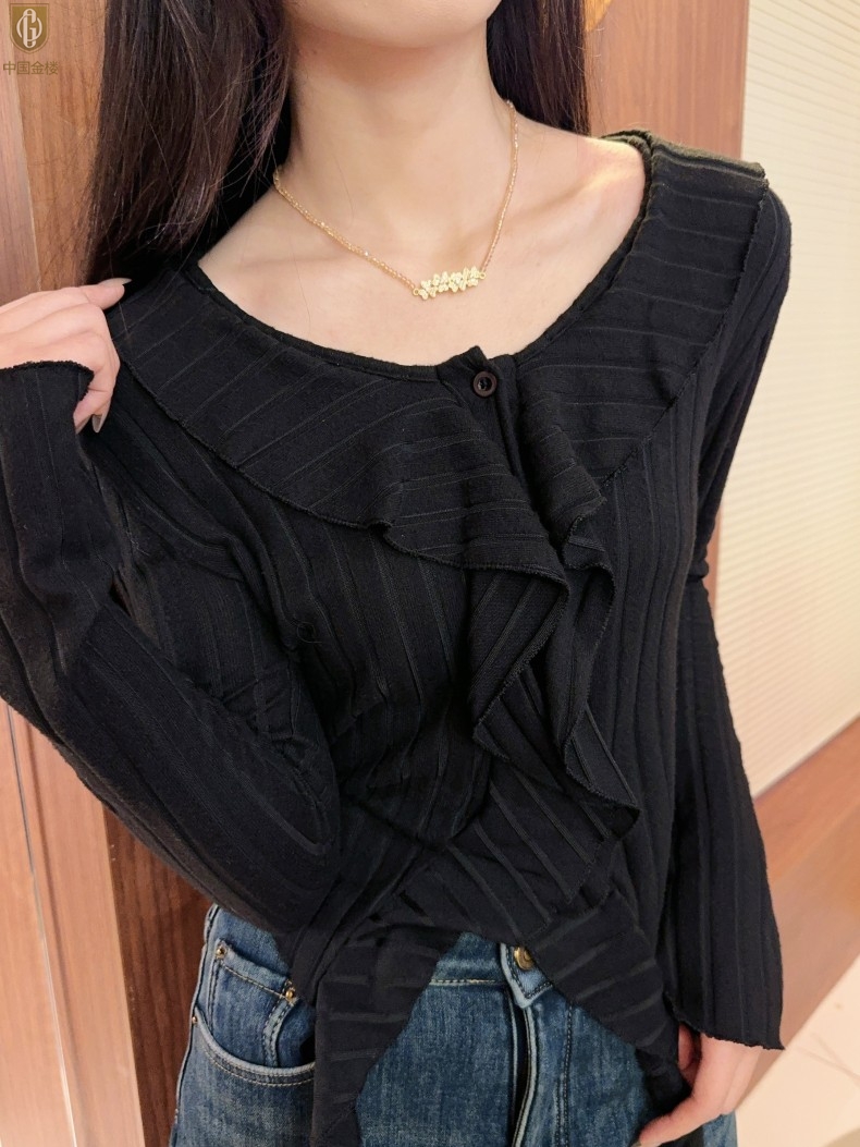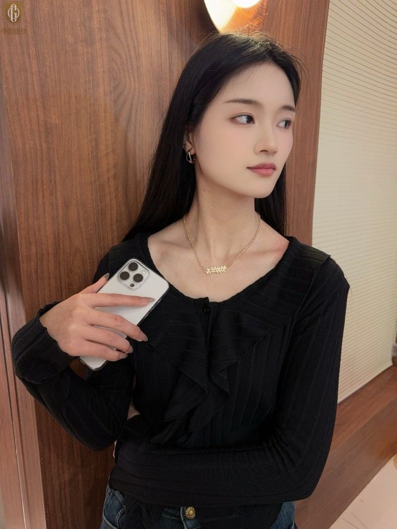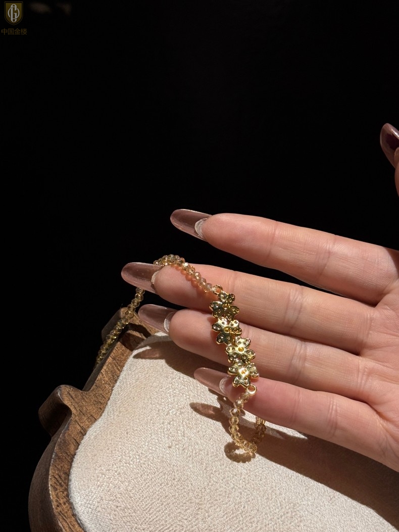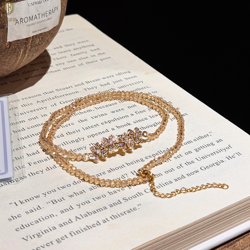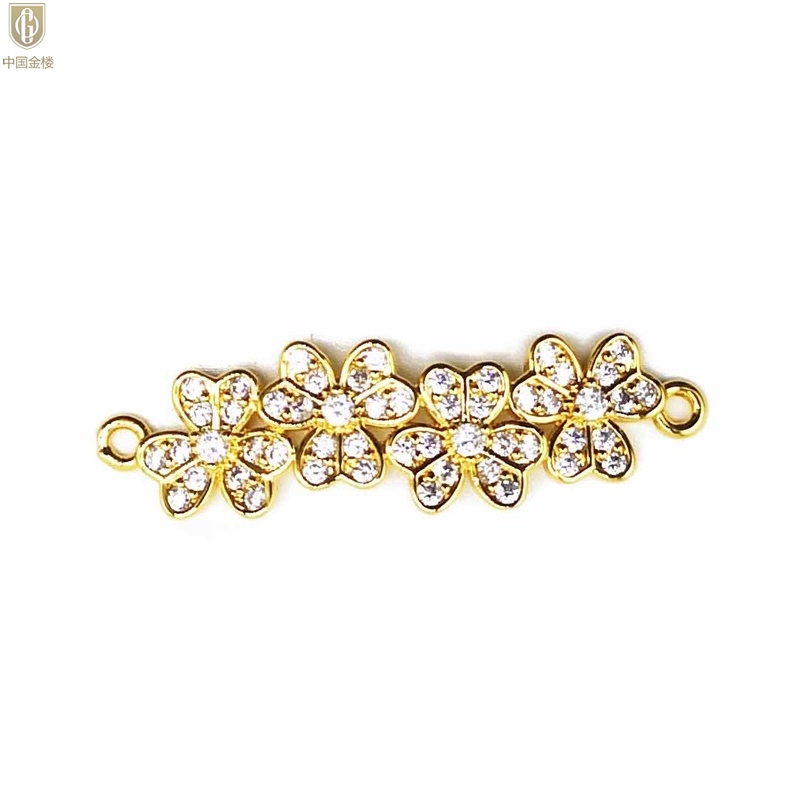 【品名】中国金楼幸福连连满钻三叶草招财晶项链