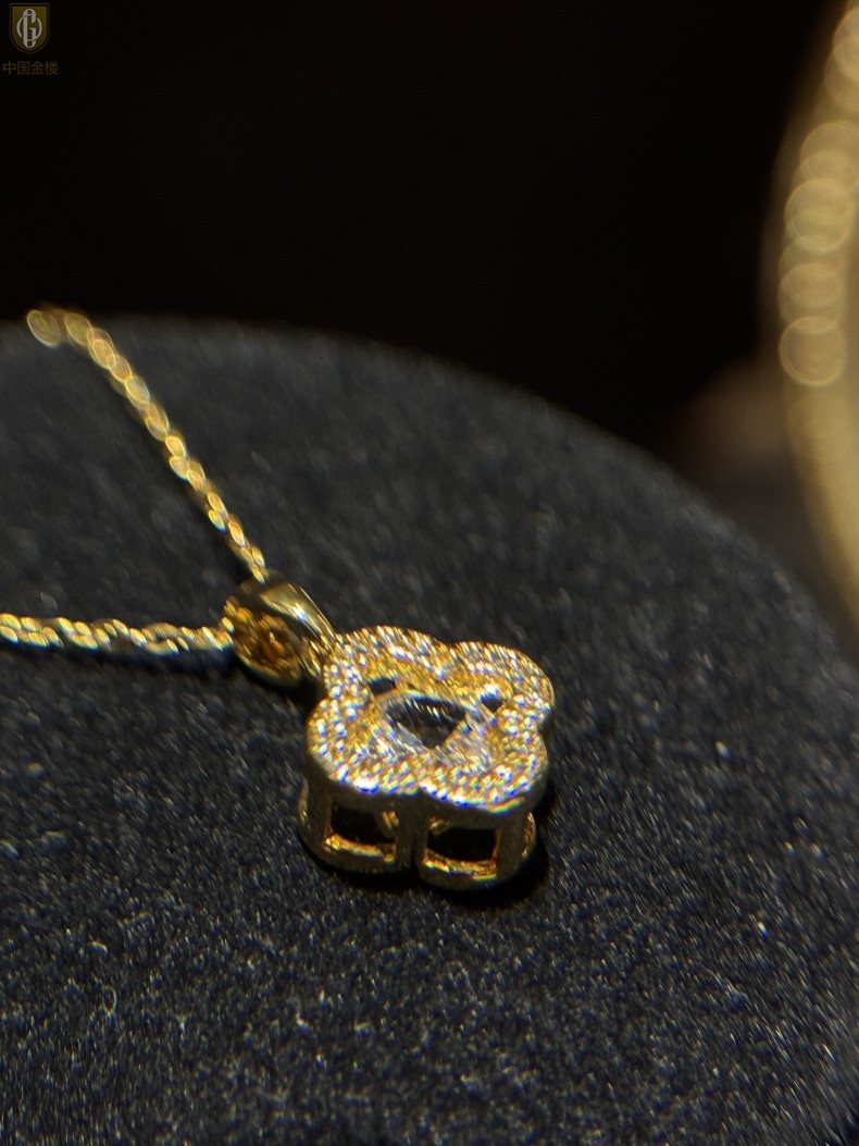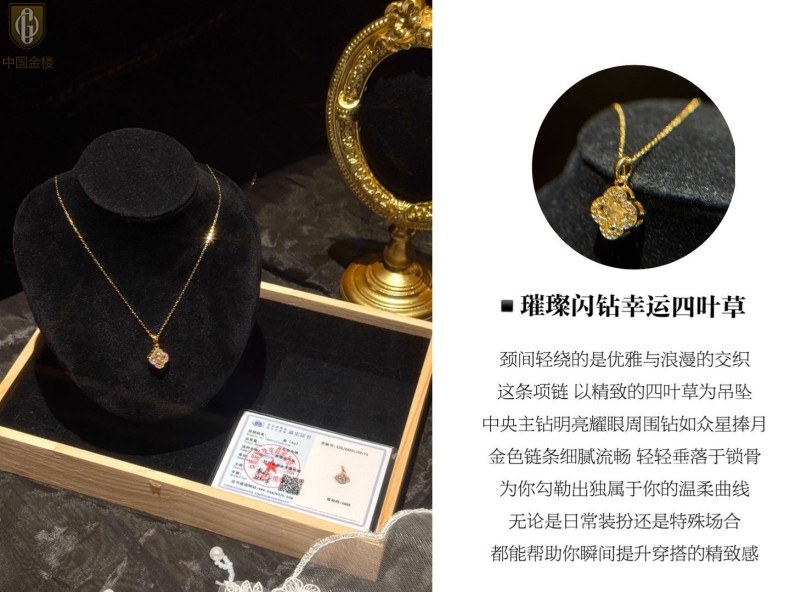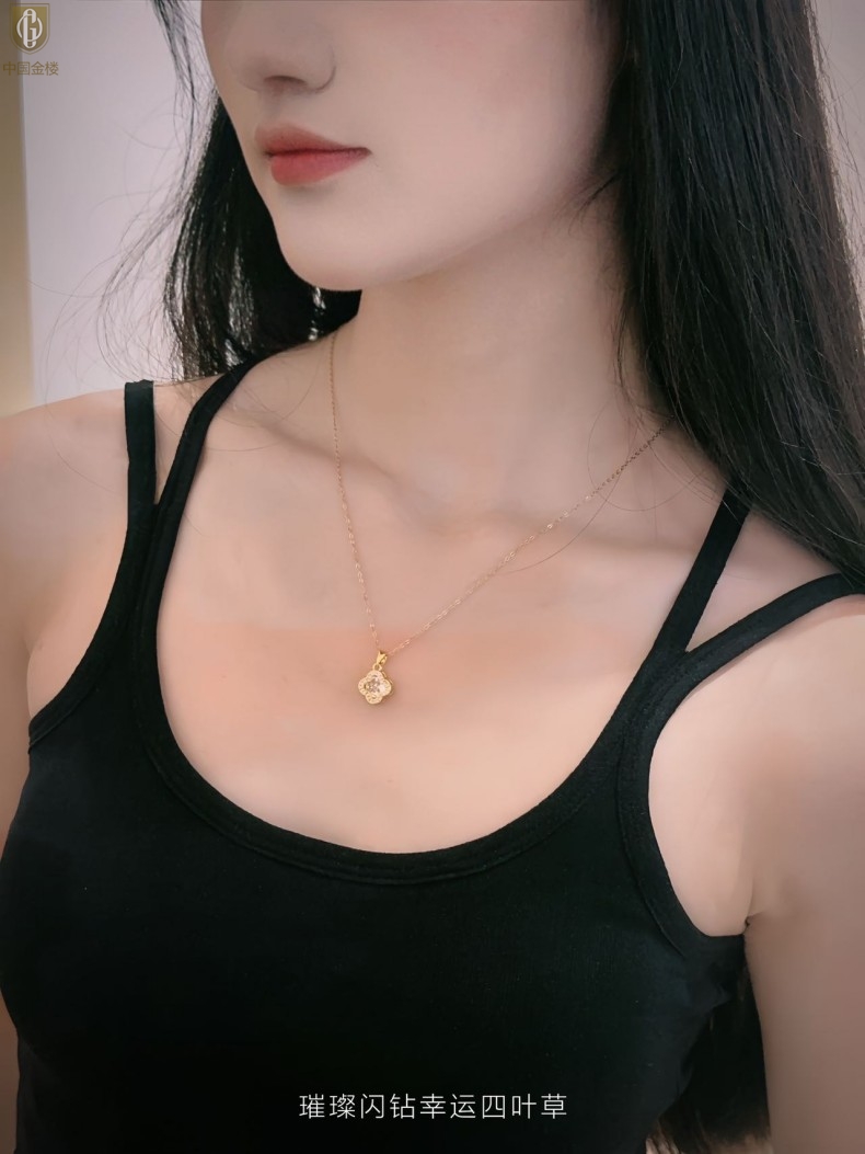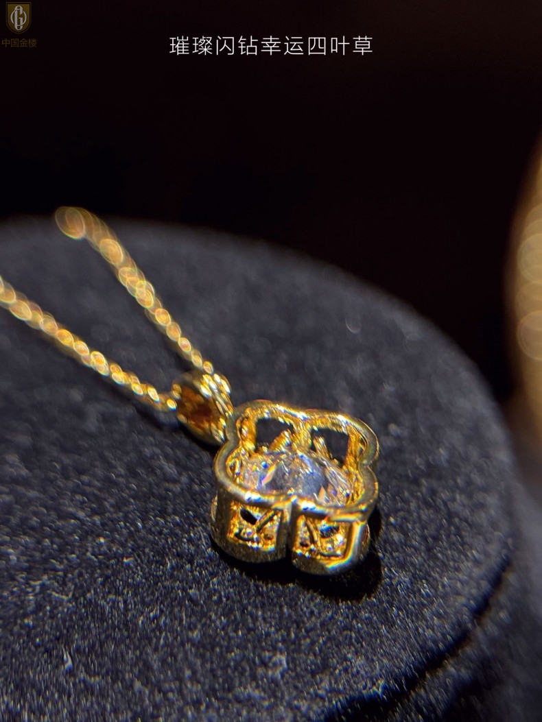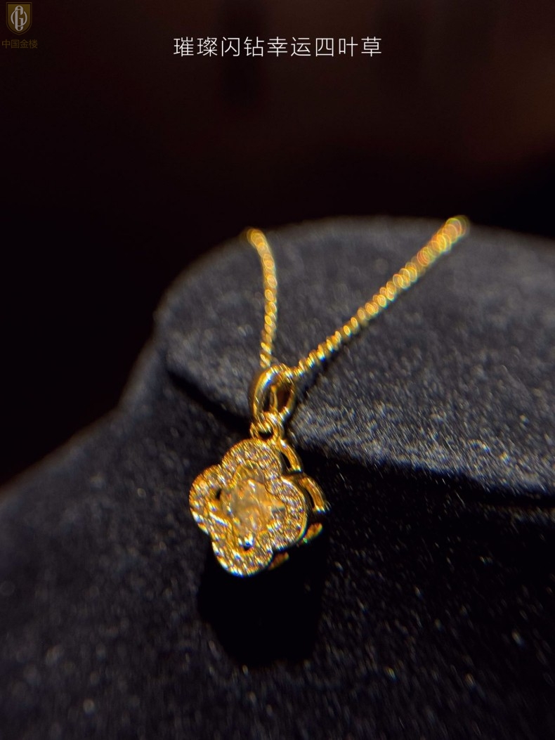 【品名】中国金楼璀璨闪钻幸运四叶草项链