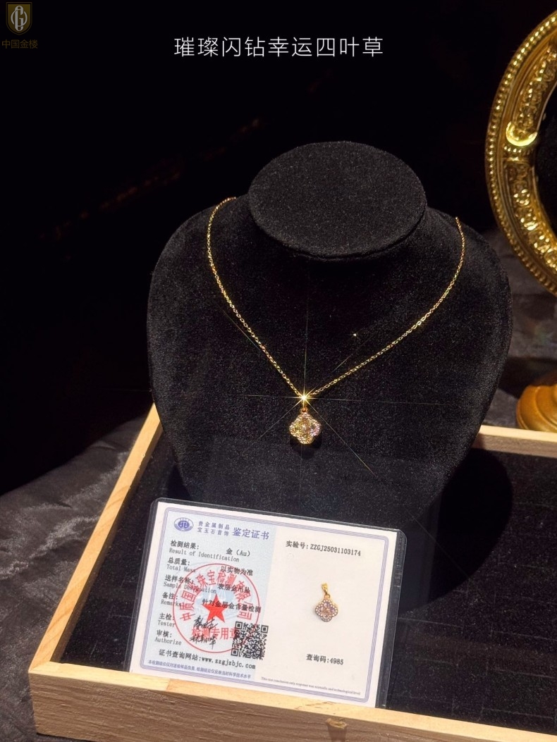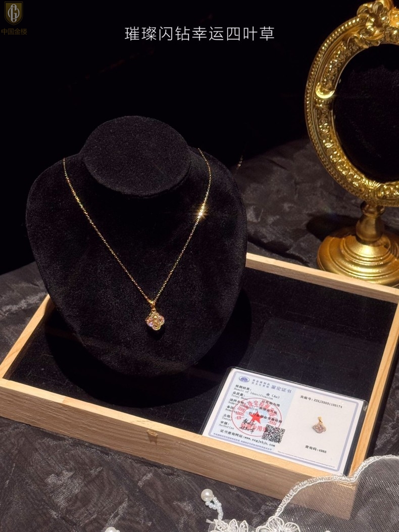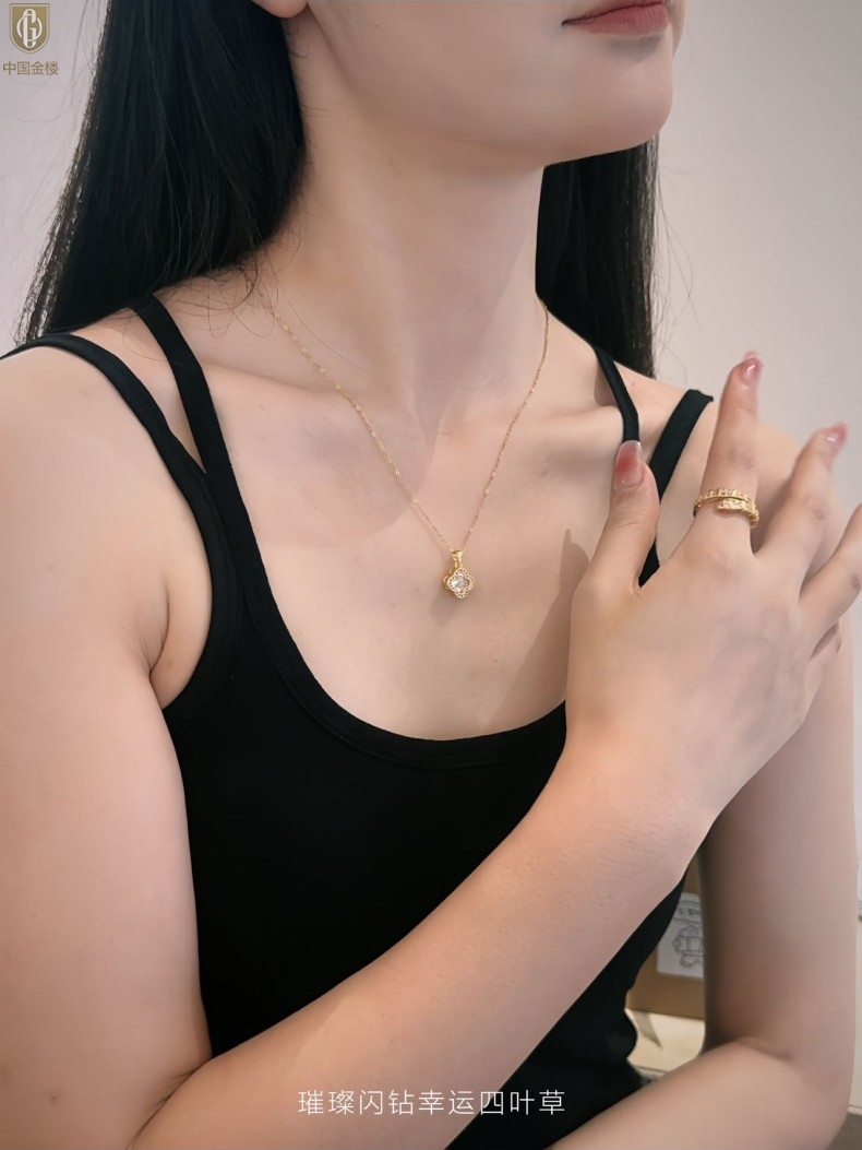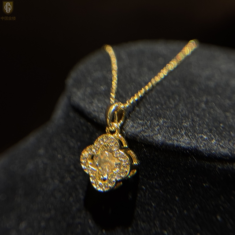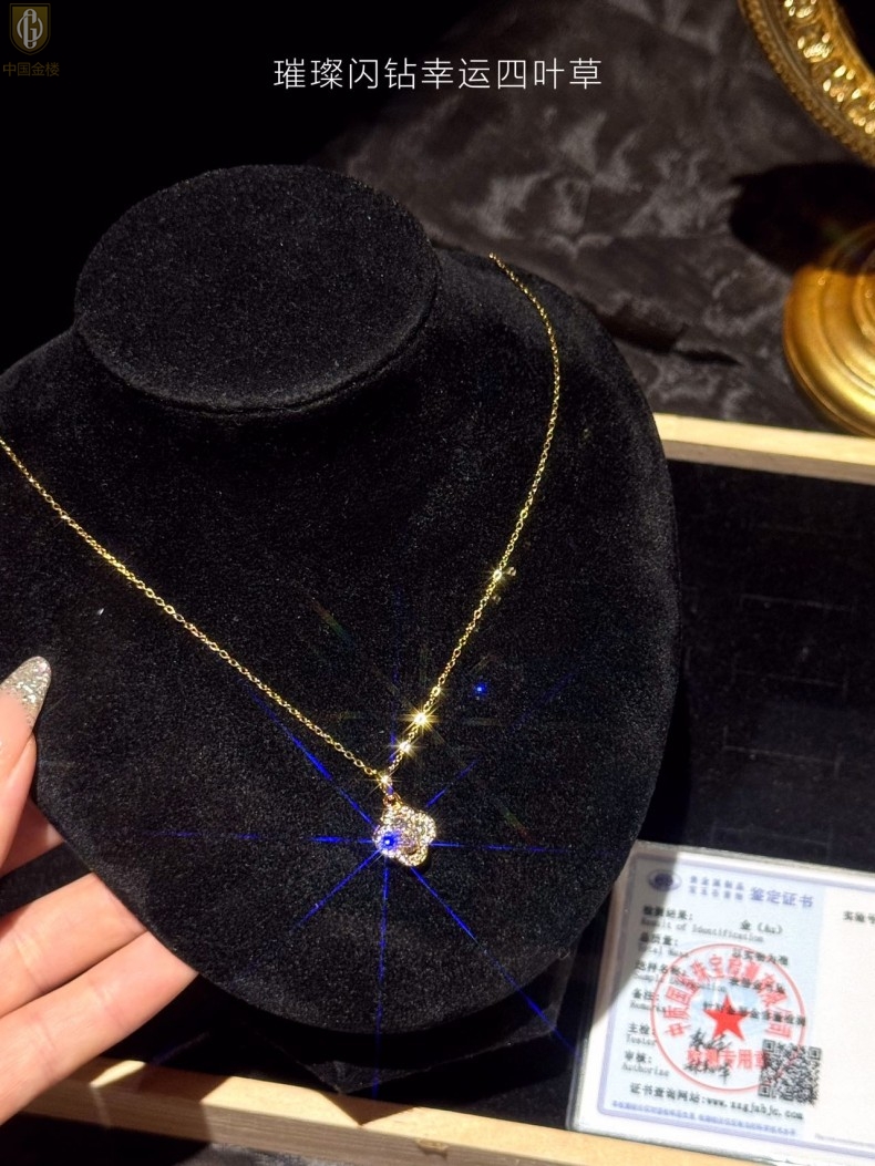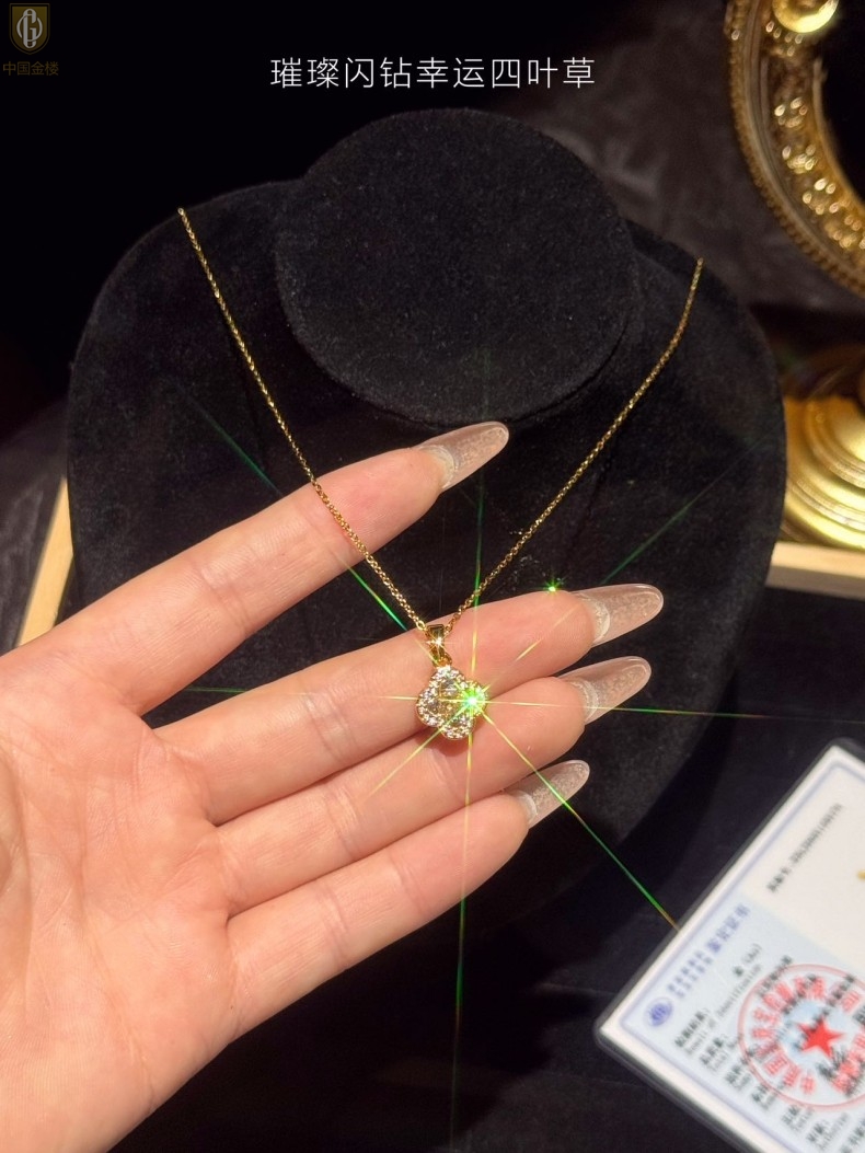【品名】中国金楼璀璨闪钻幸运四叶草项链