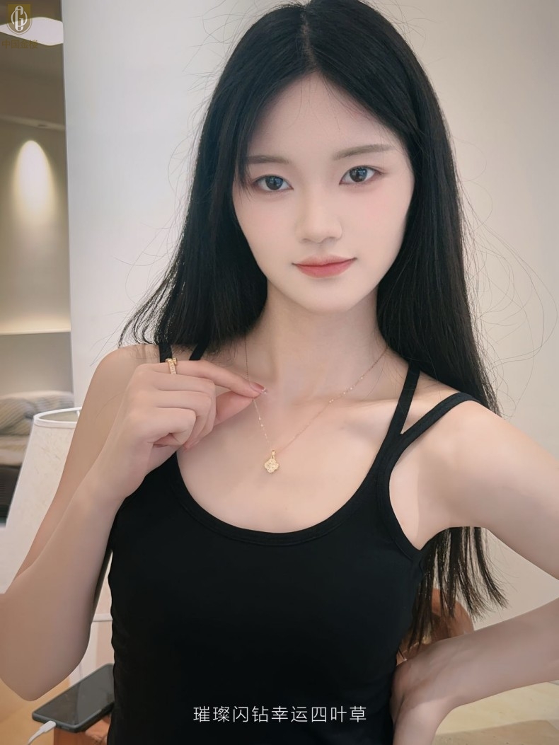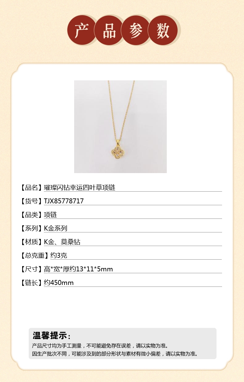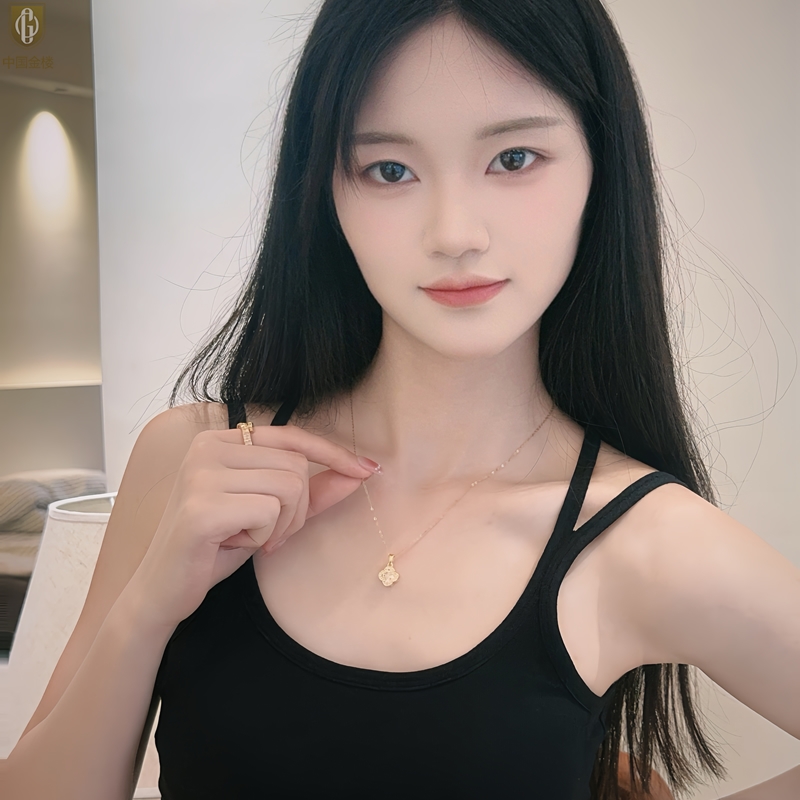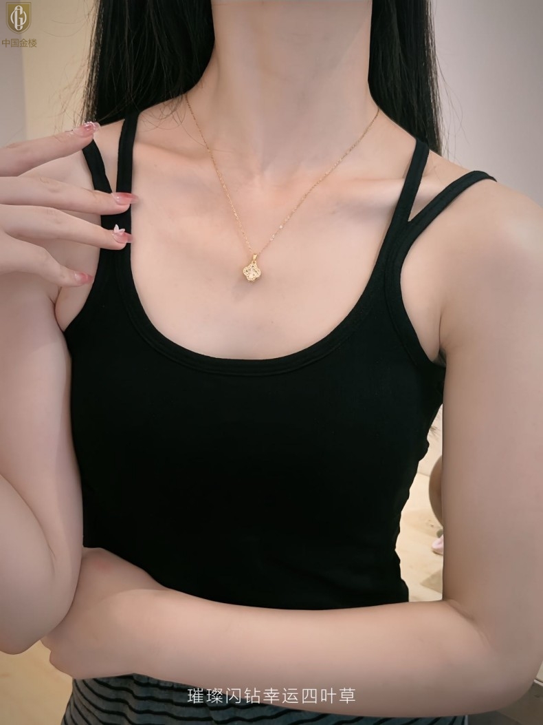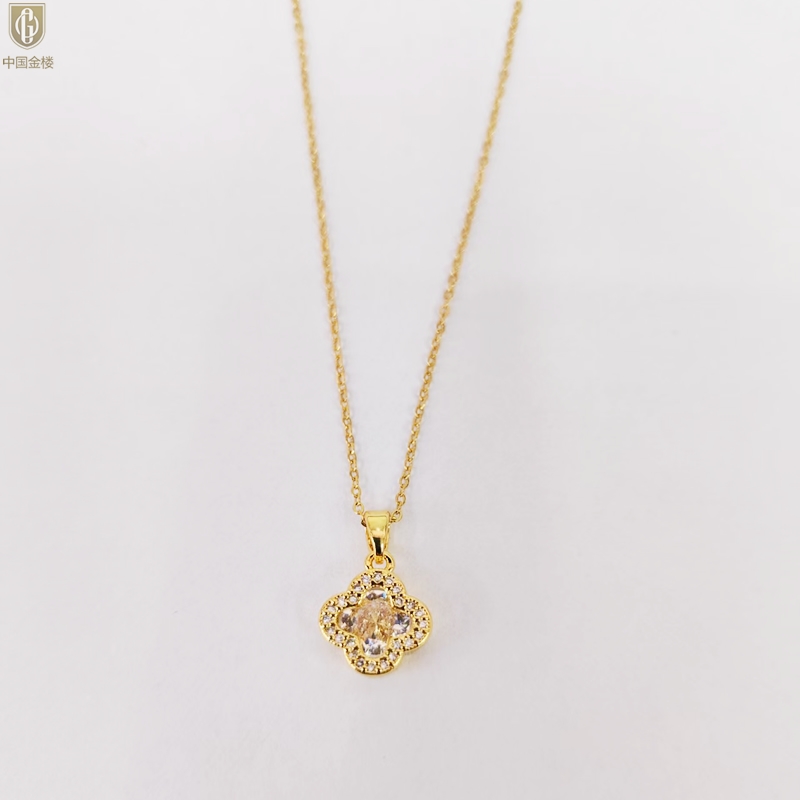 【品名】中国金楼璀璨闪钻幸运四叶草项链