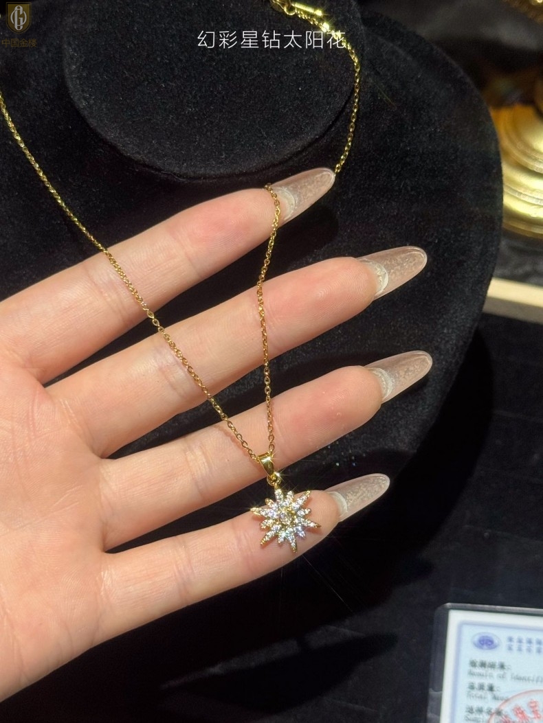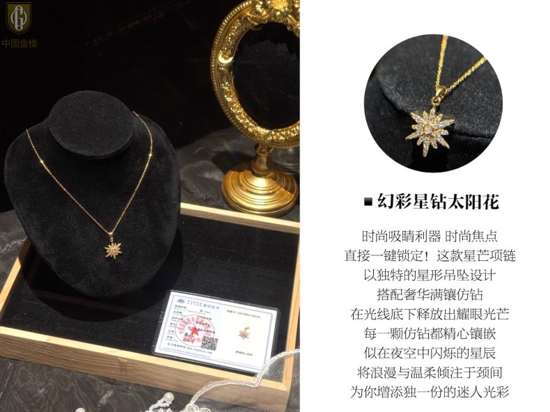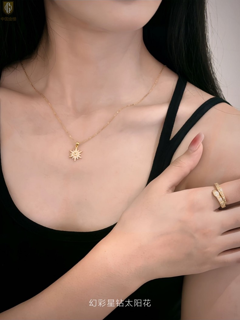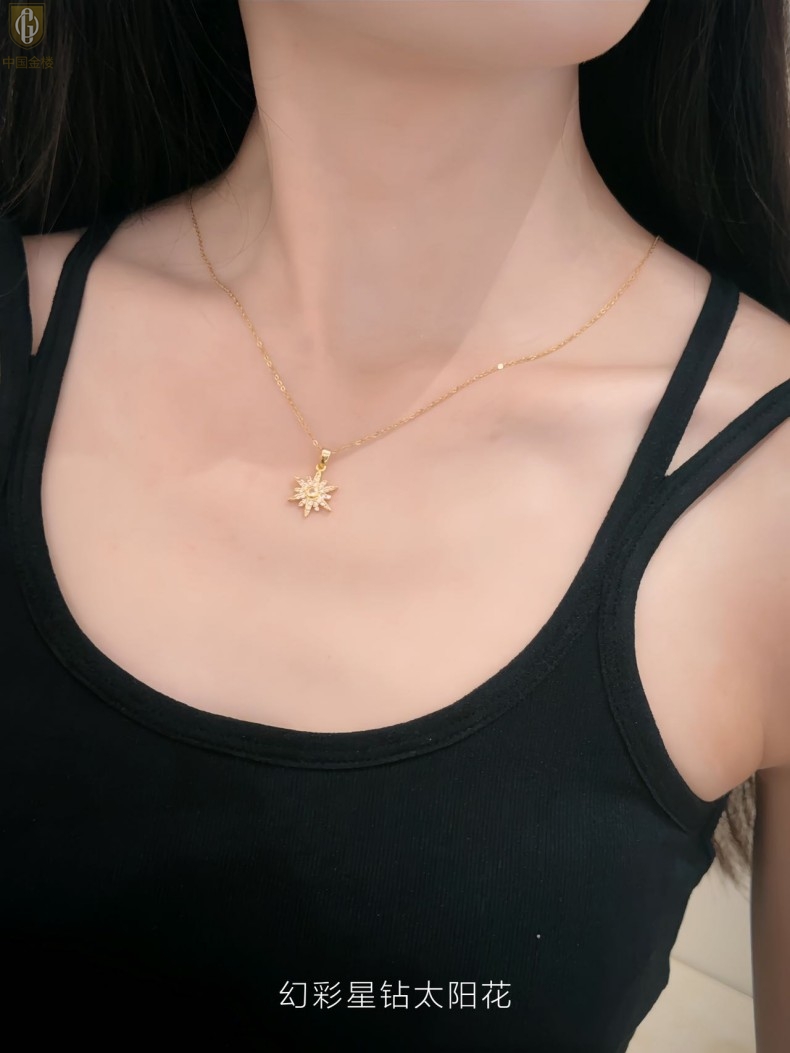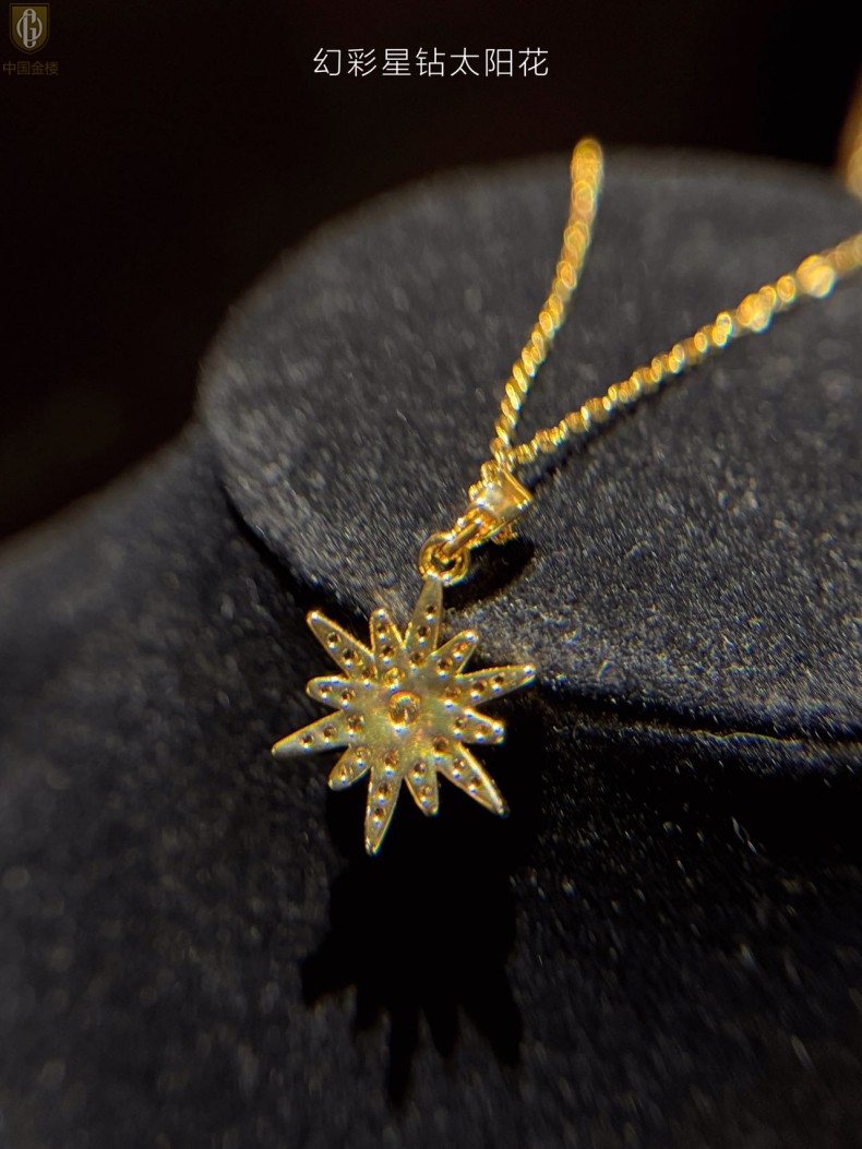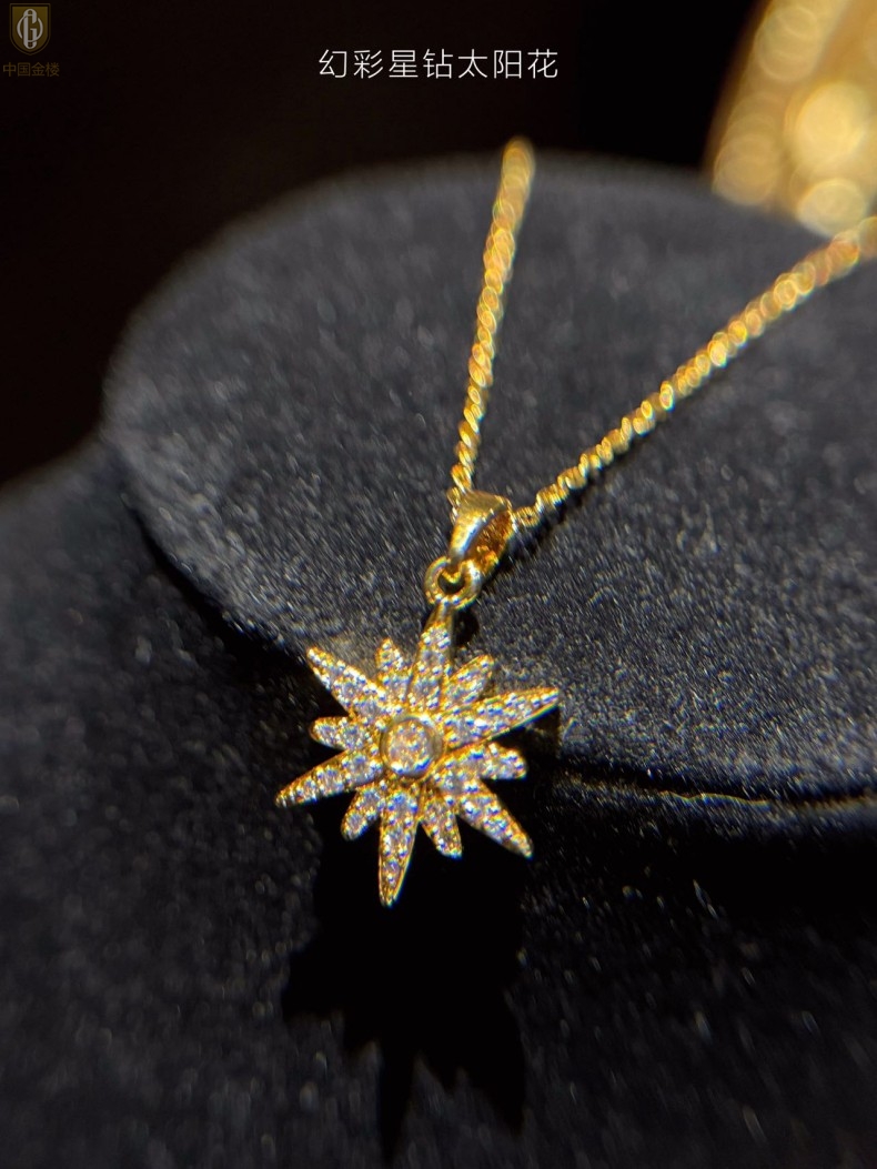 【品名】中国金楼幻彩星钻太阳花项链