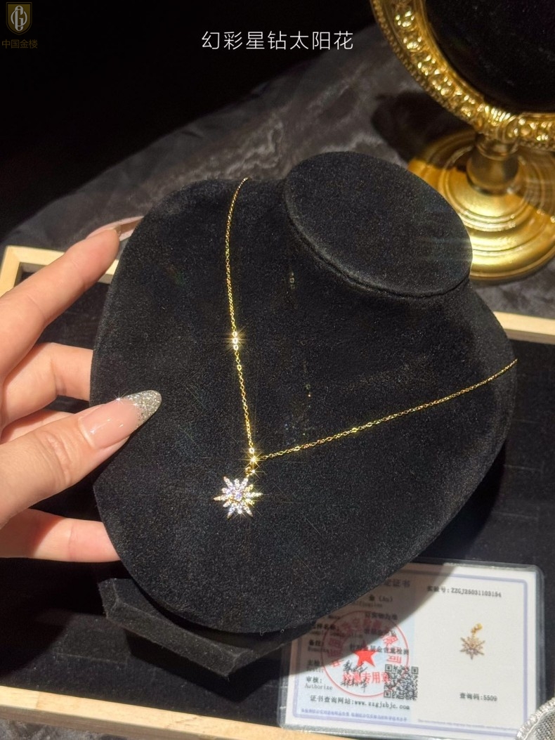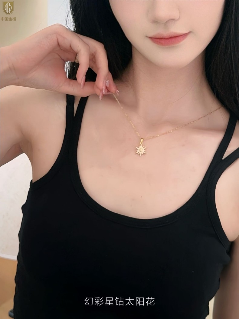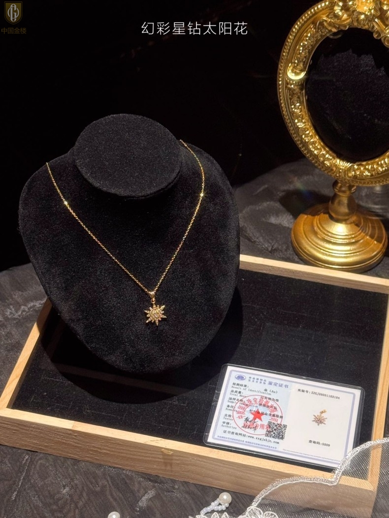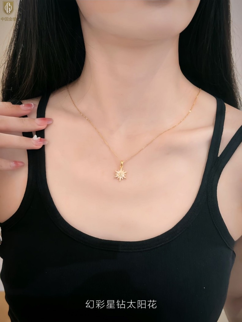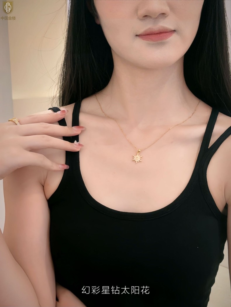 【品名】中国金楼幻彩星钻太阳花项链
