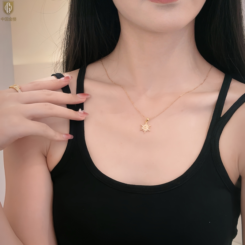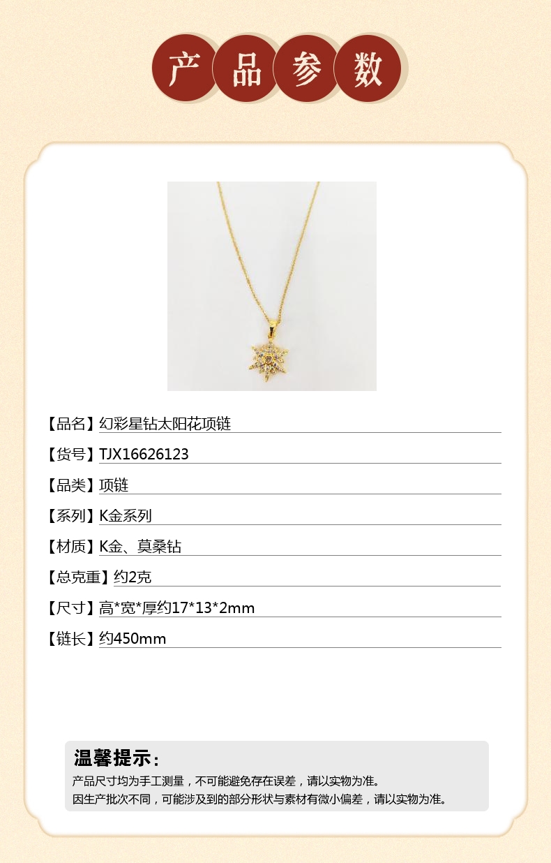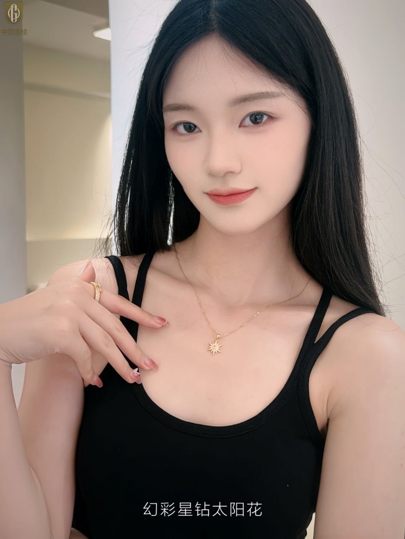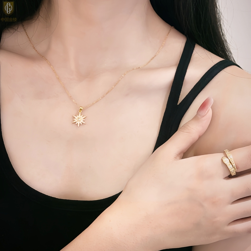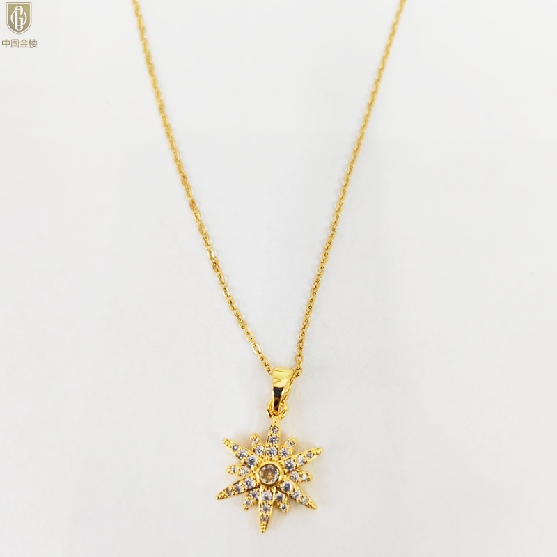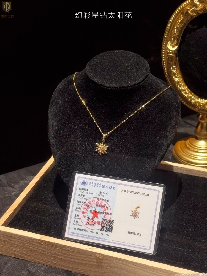 【品名】中国金楼幻彩星钻太阳花项链
