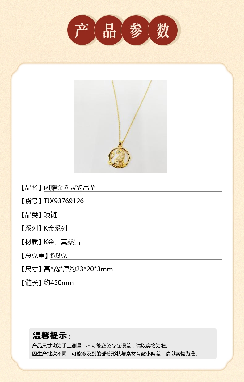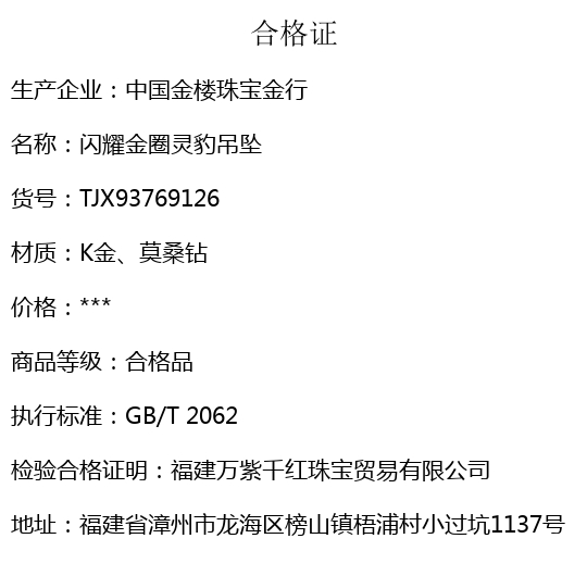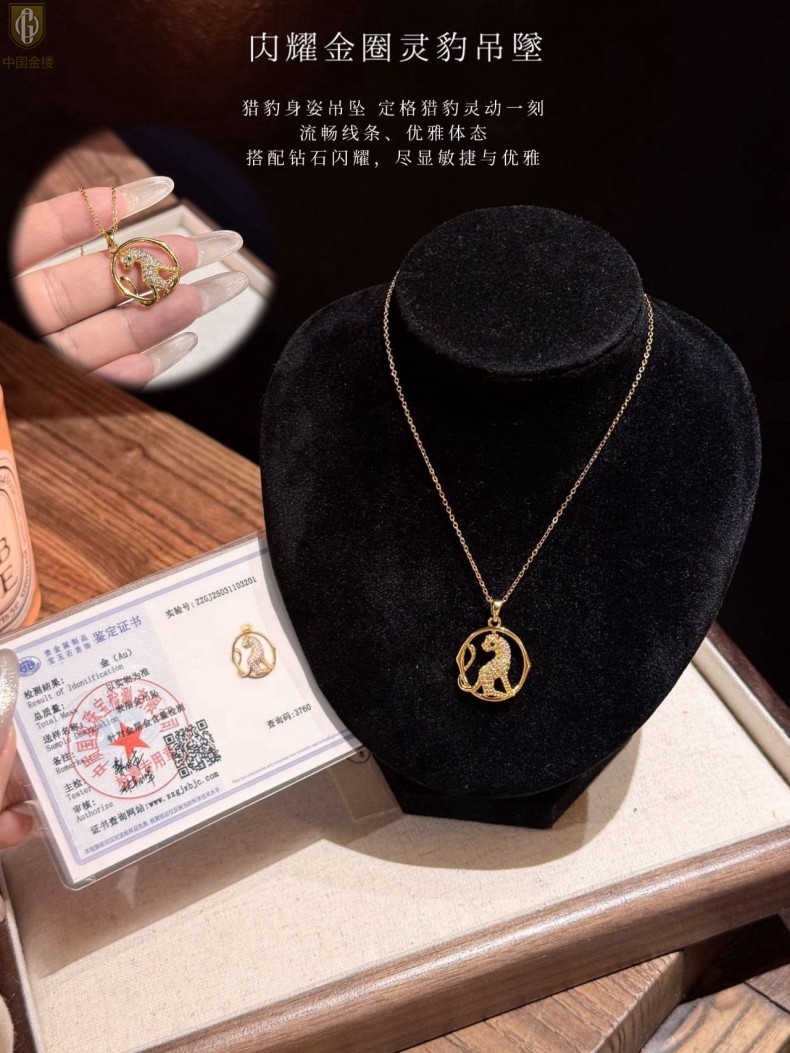 【品名】中国金楼闪耀金圈灵豹吊坠