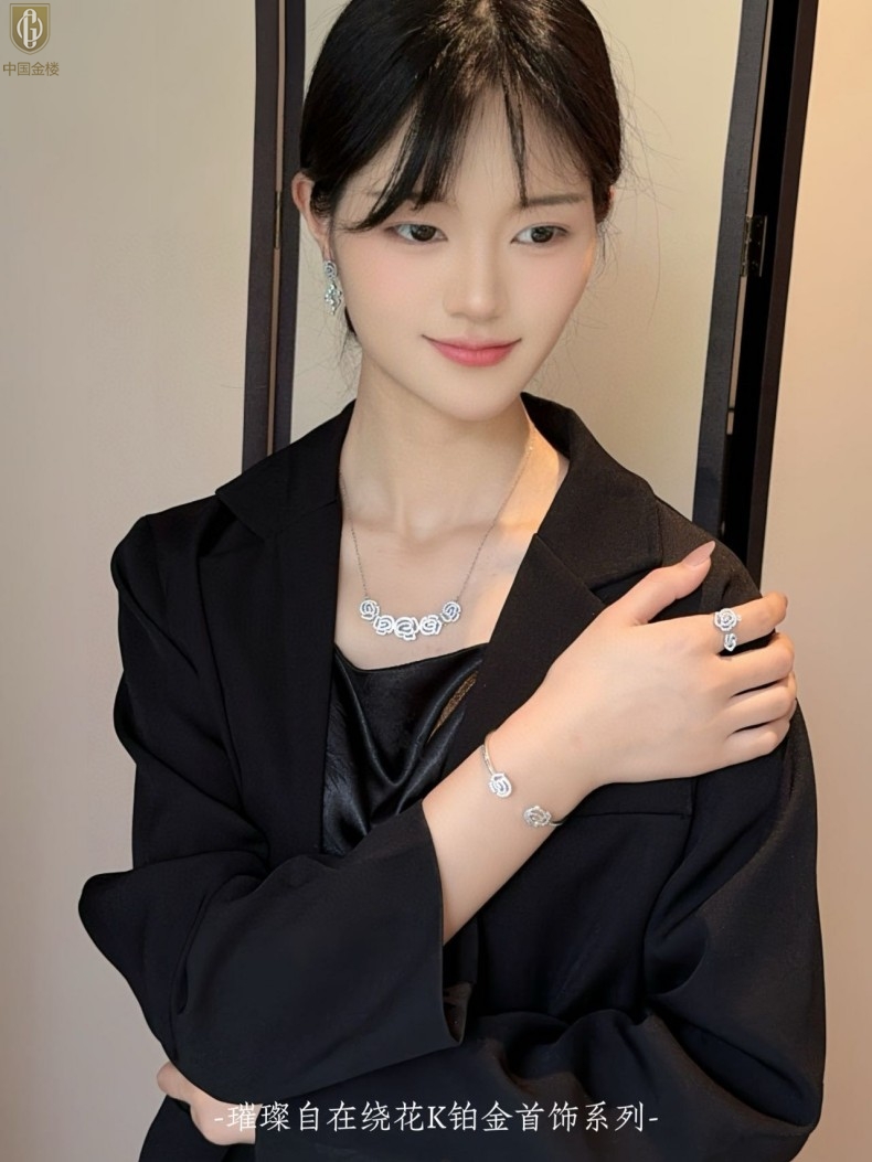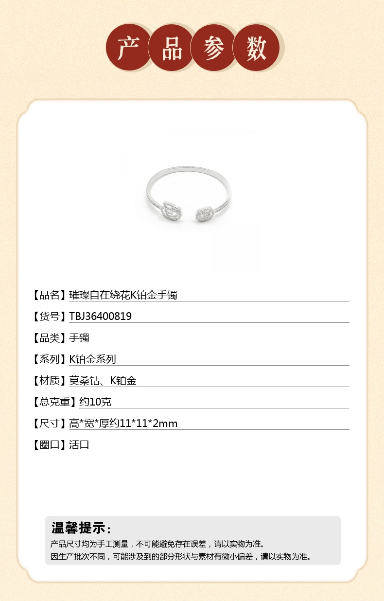 【品名】中国金楼璀璨自在绕花K铂金手镯