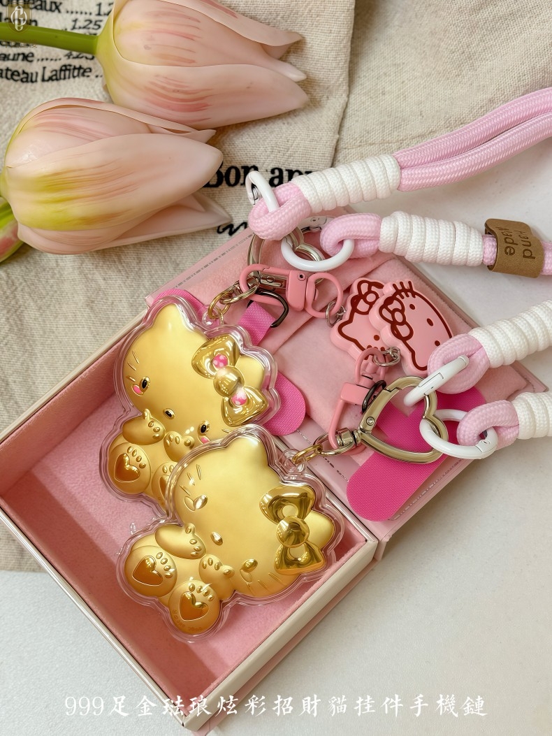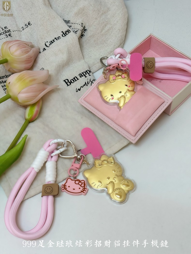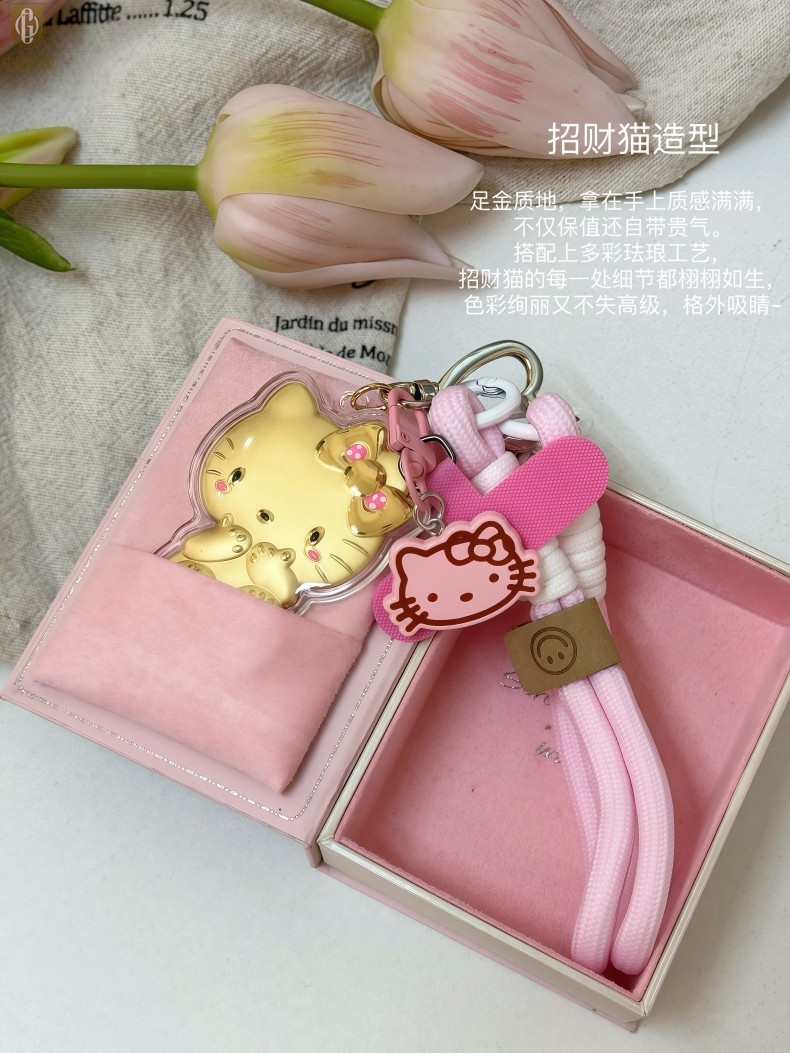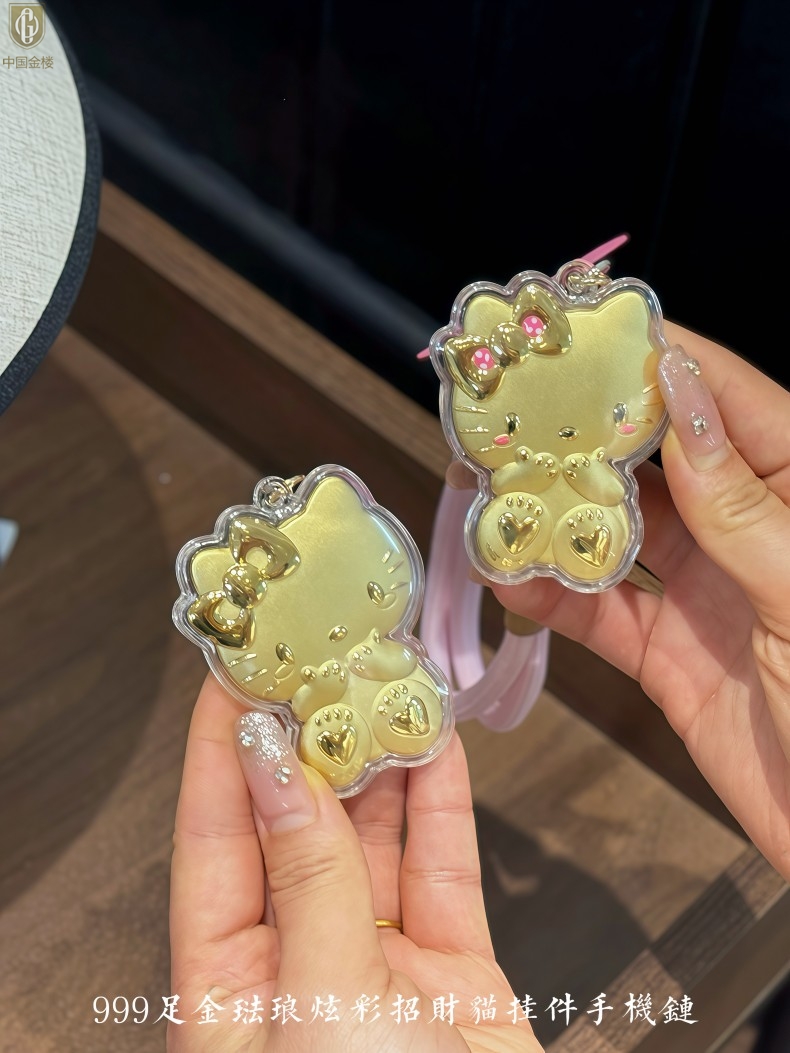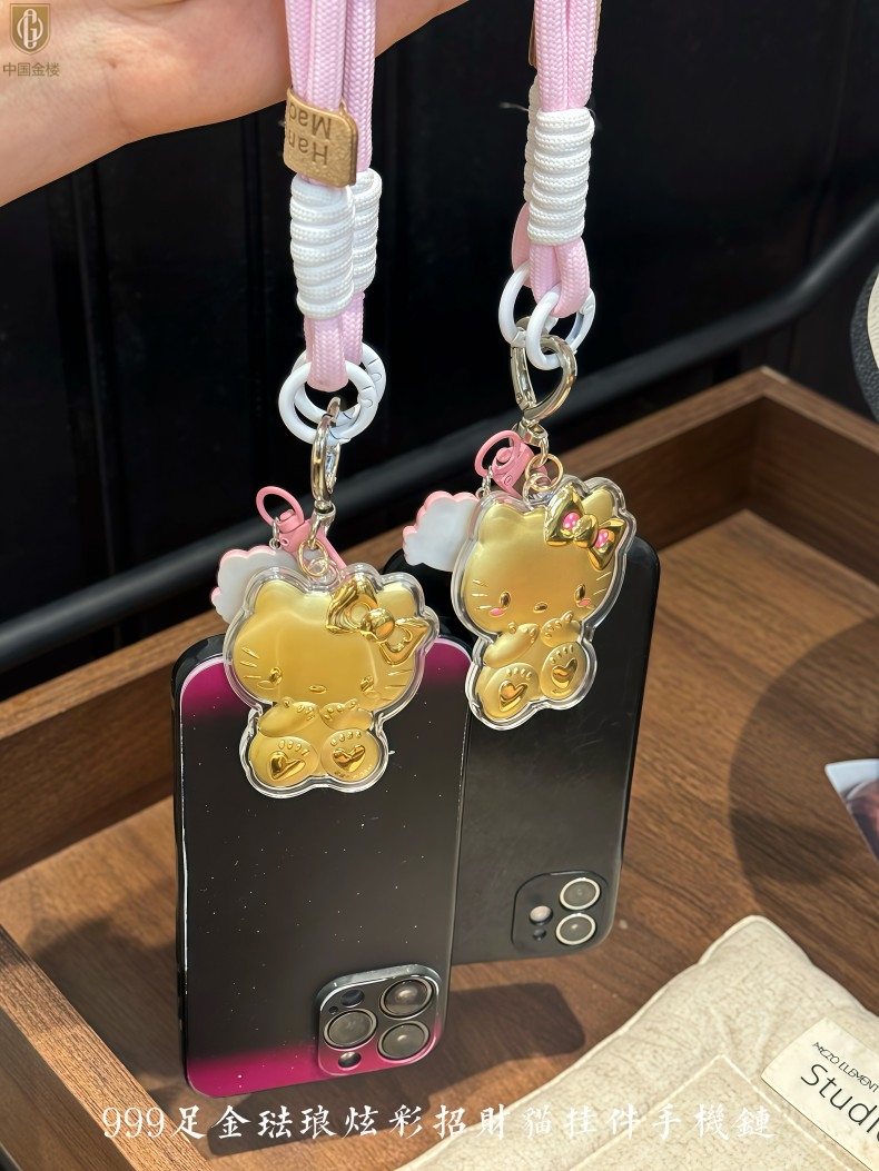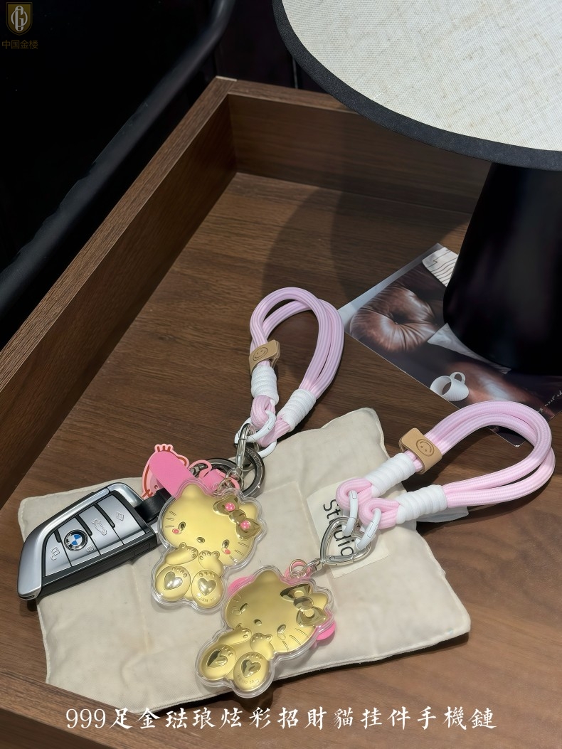 【品名】中国金楼999足金珐琅炫彩招财猫挂件手机链(专属礼盒礼袋)