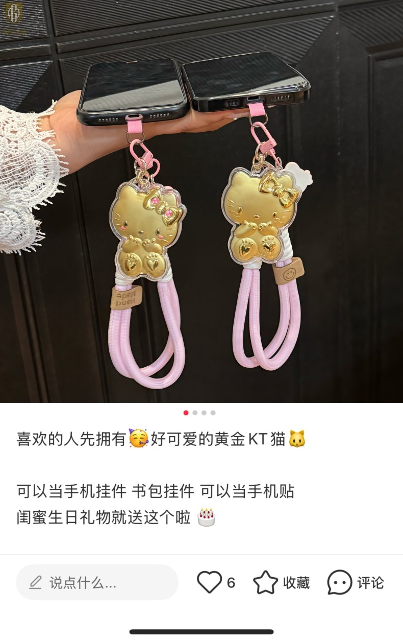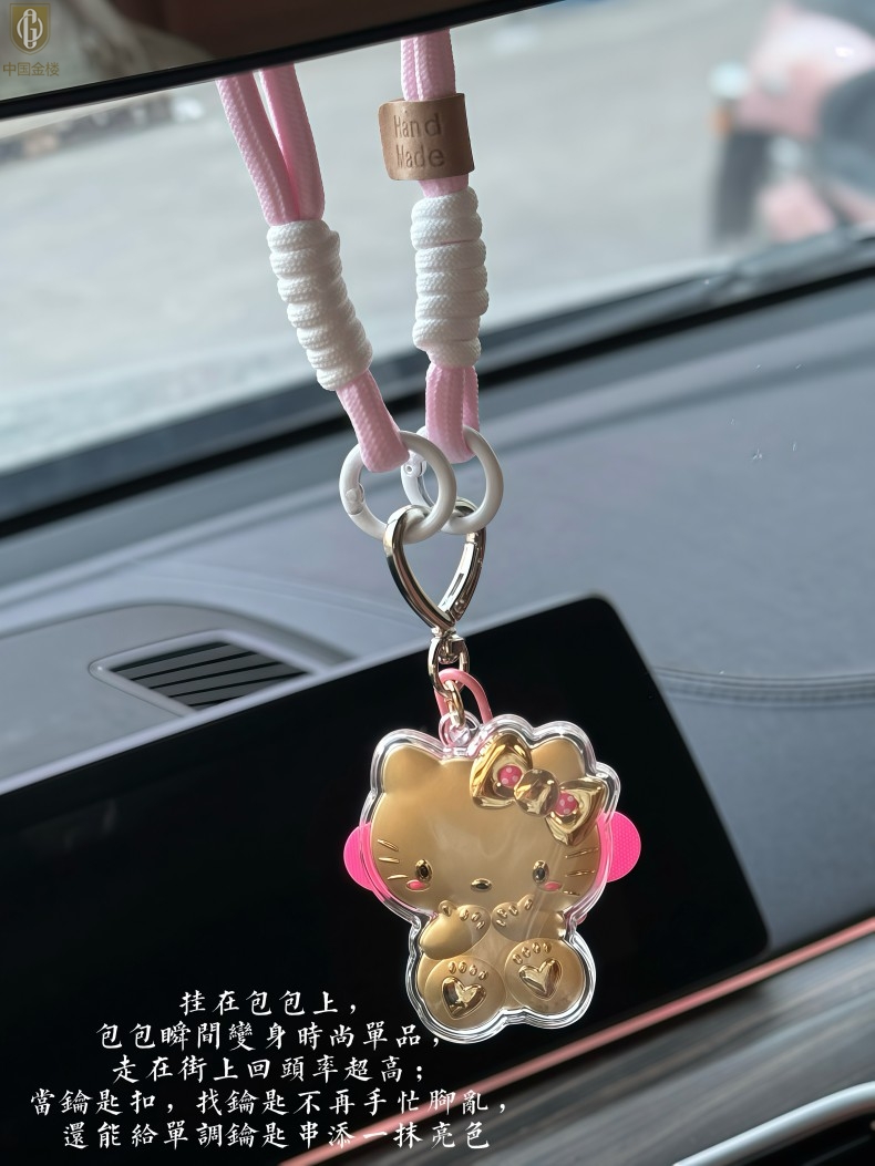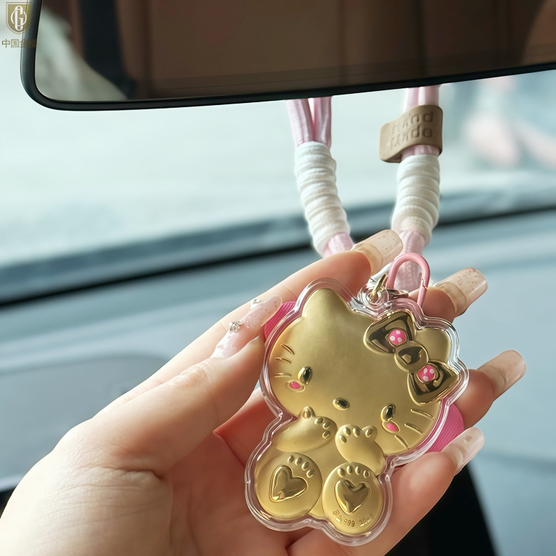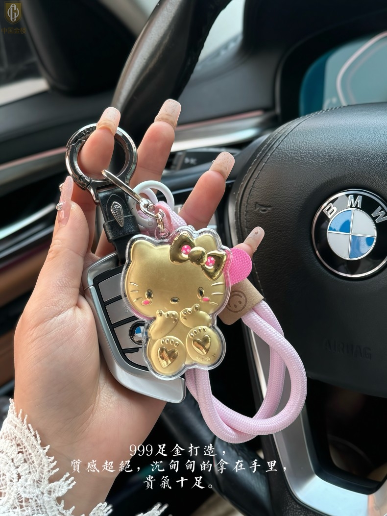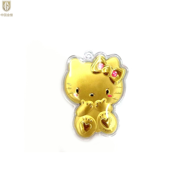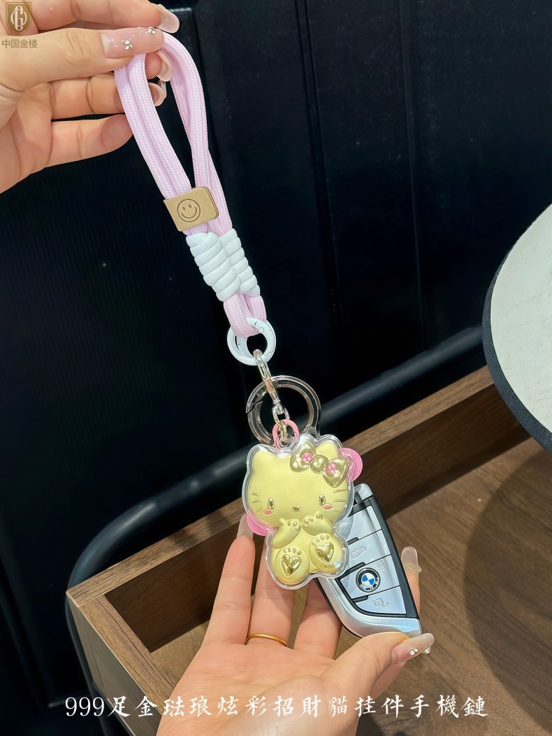 【品名】中国金楼999足金珐琅炫彩招财猫挂件手机链(专属礼盒礼袋)