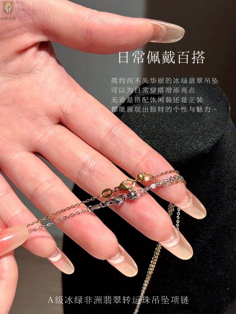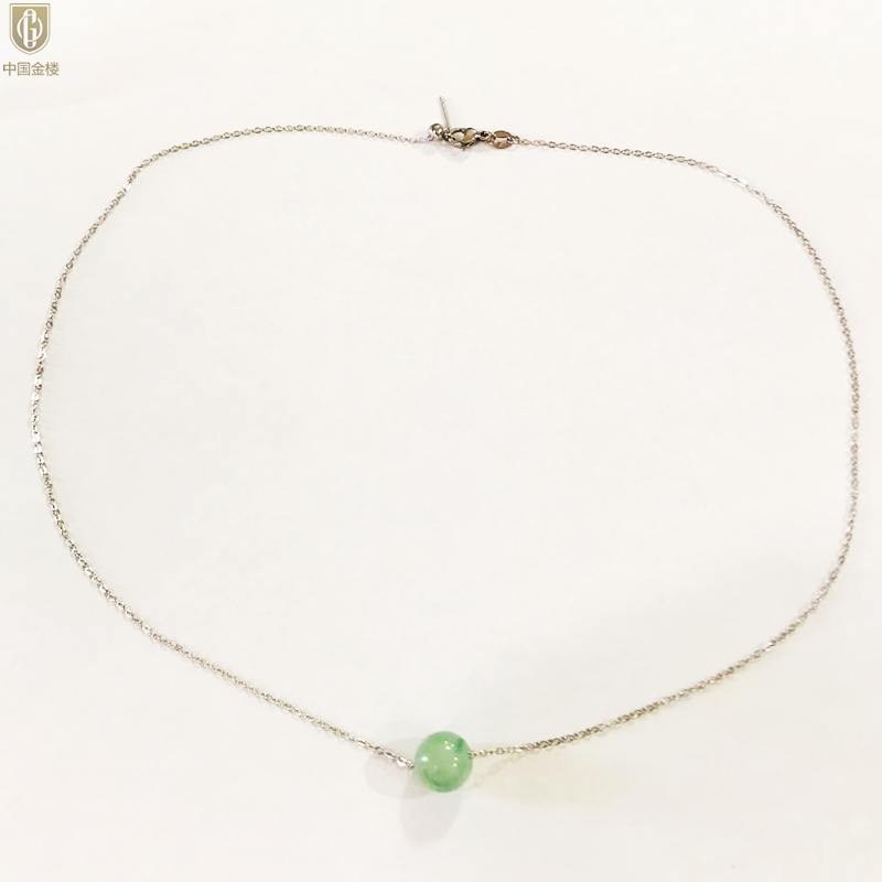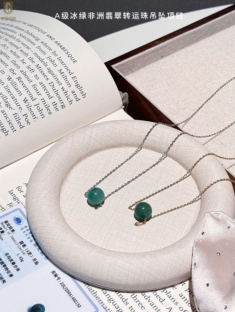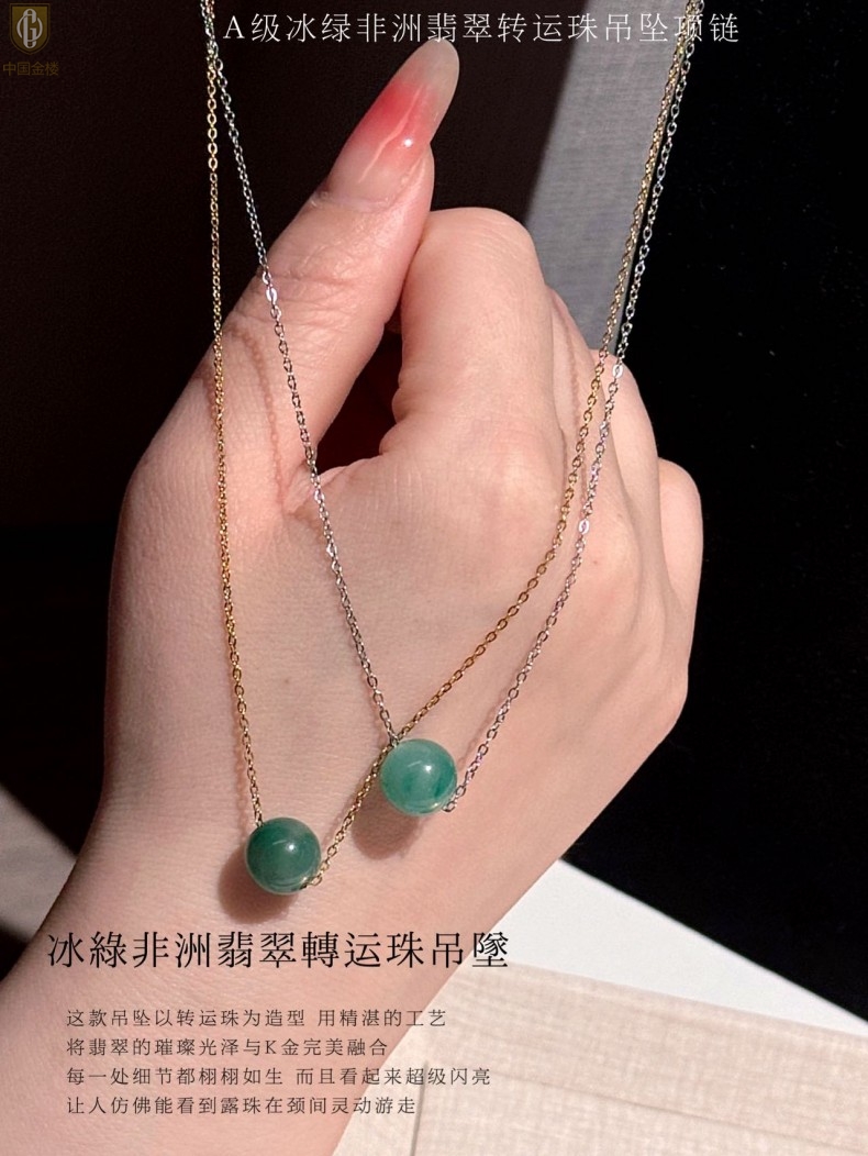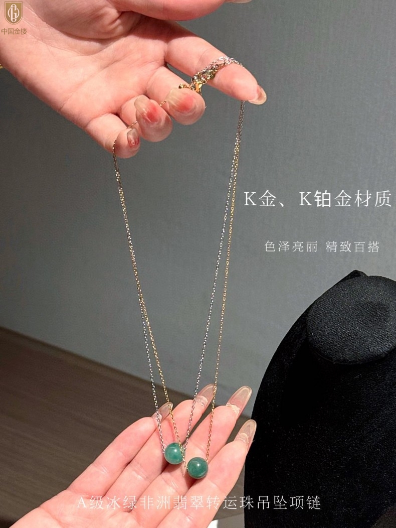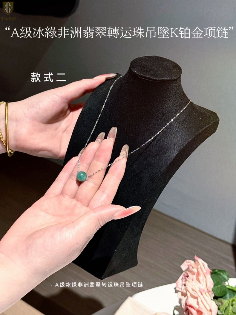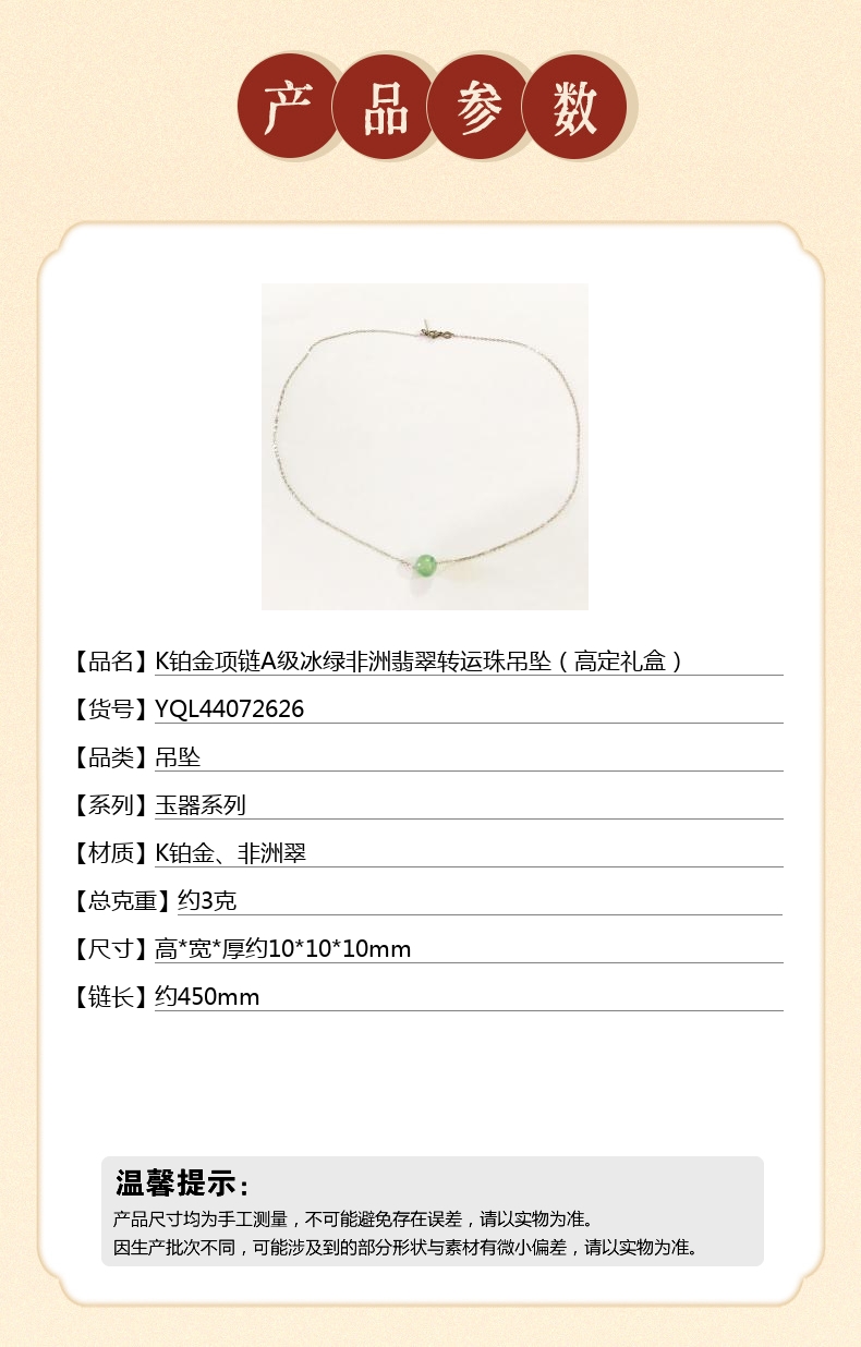 【品名】中国金楼K铂金项链A级冰绿非洲翡翠转运珠吊坠(高定礼盒)