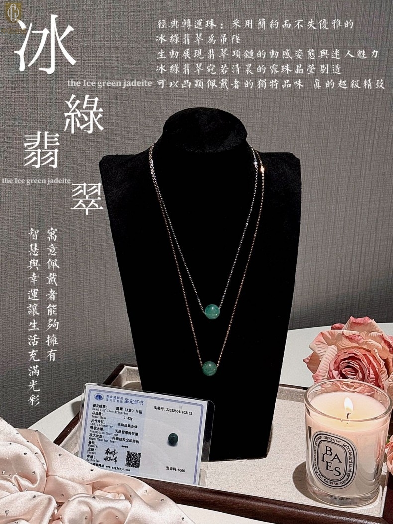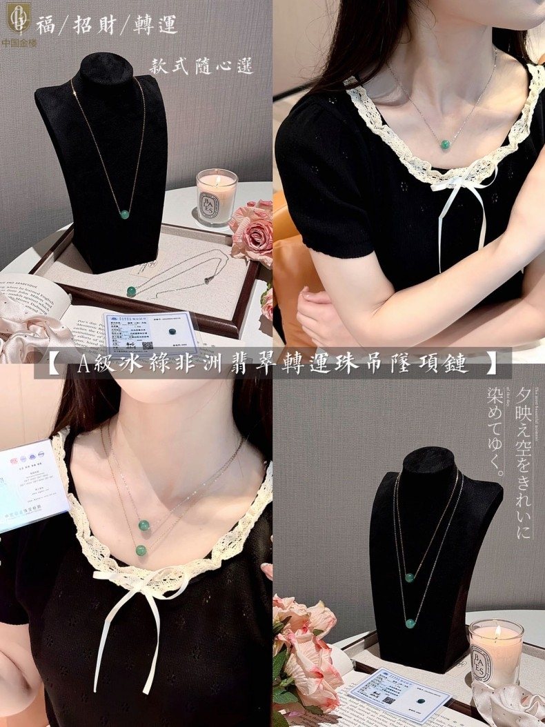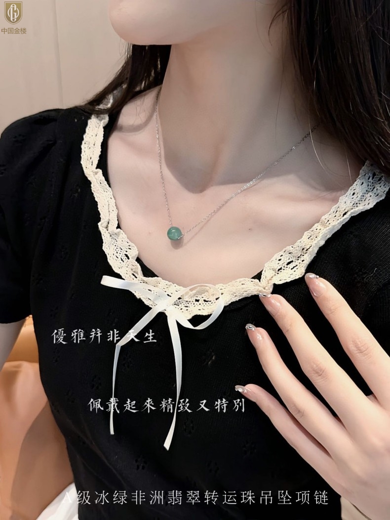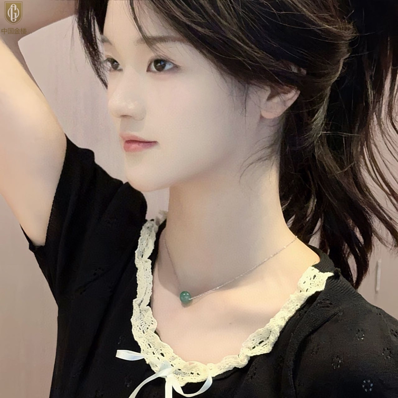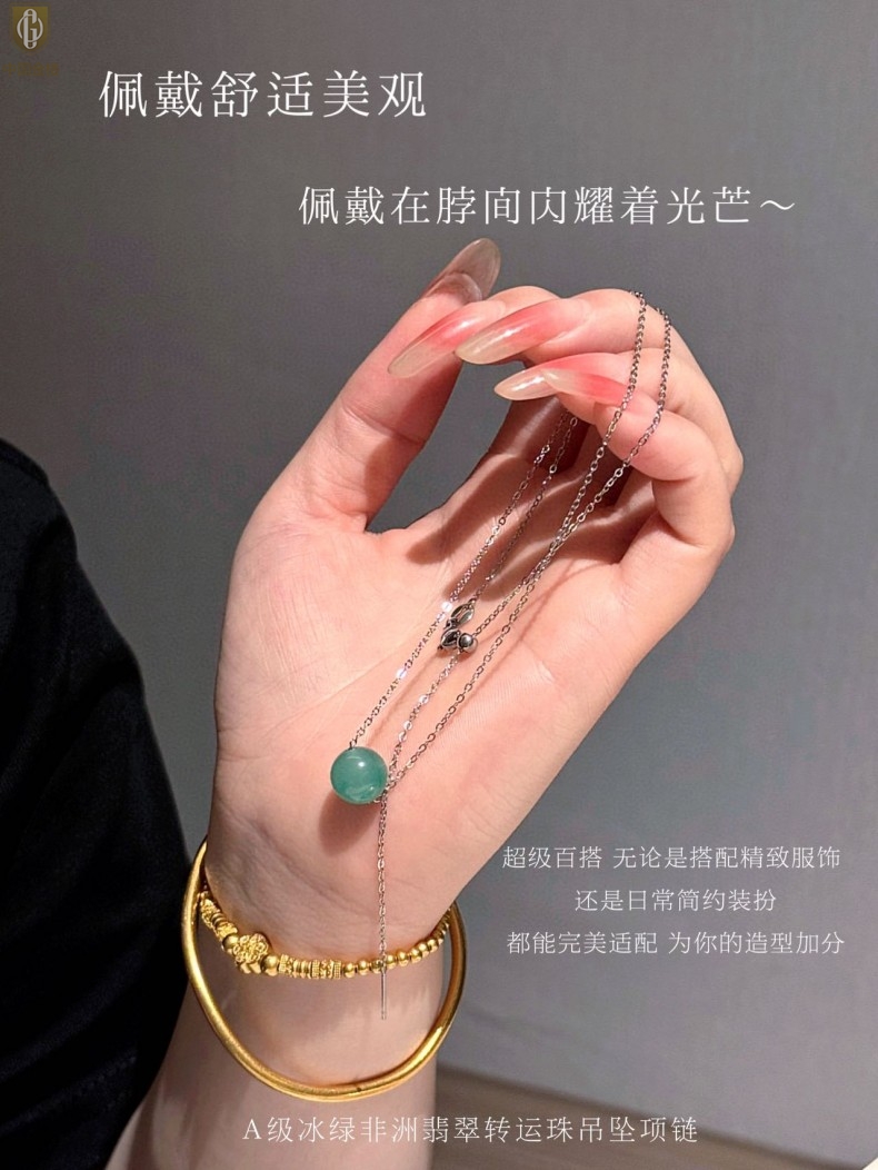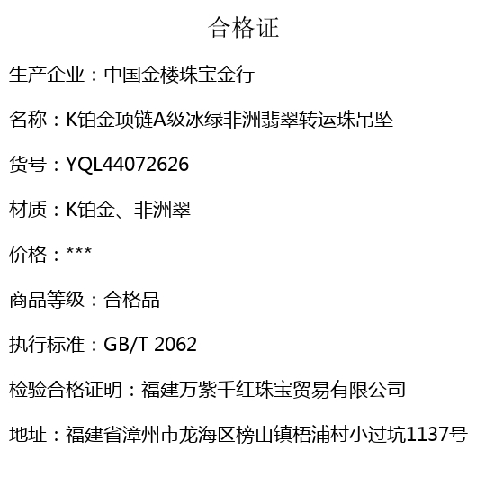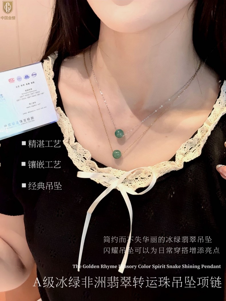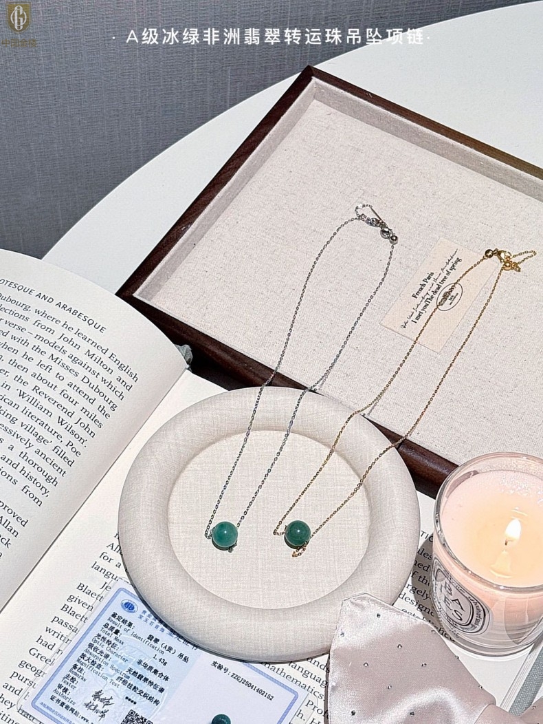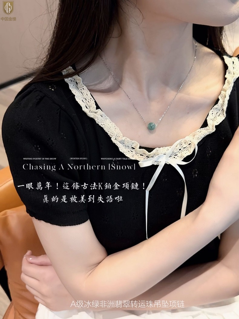 【品名】中国金楼K铂金项链A级冰绿非洲翡翠转运珠吊坠(高定礼盒)