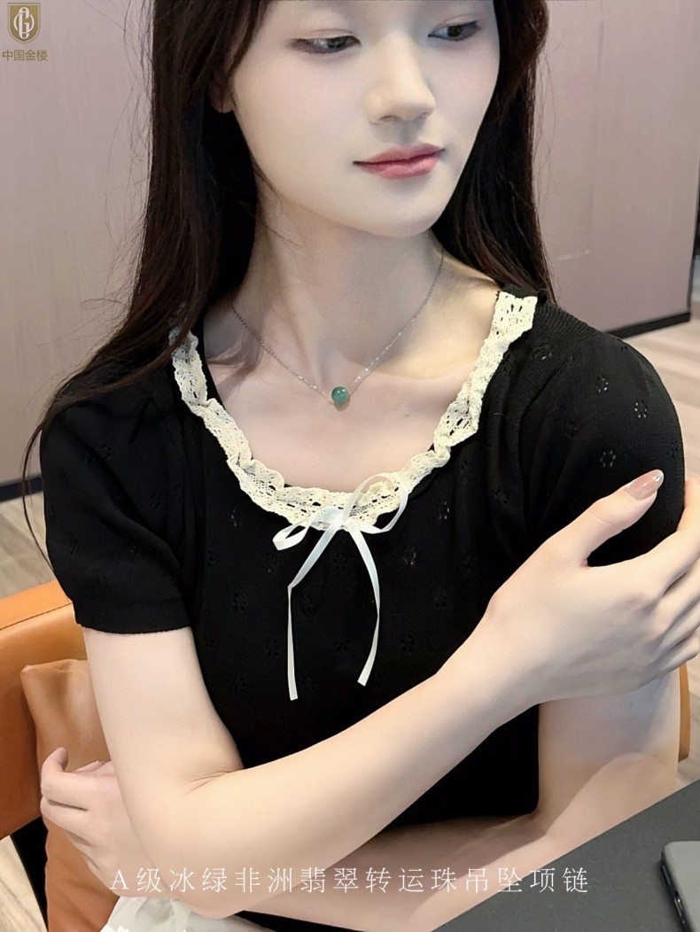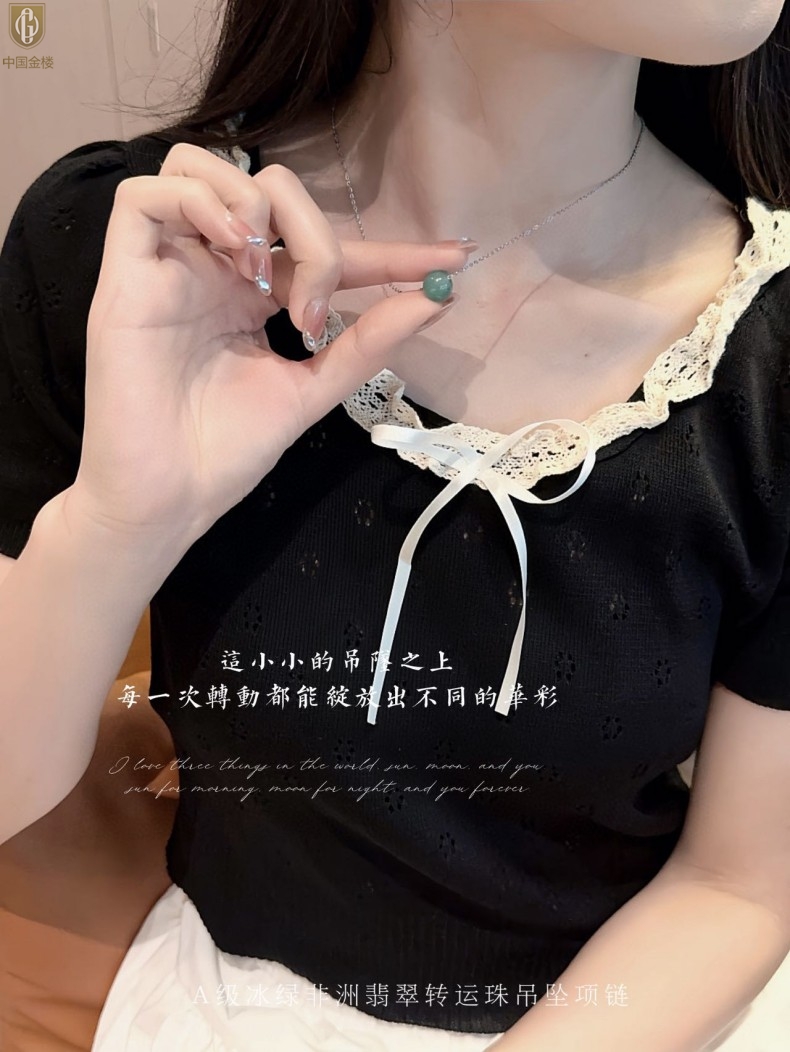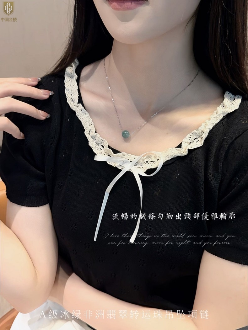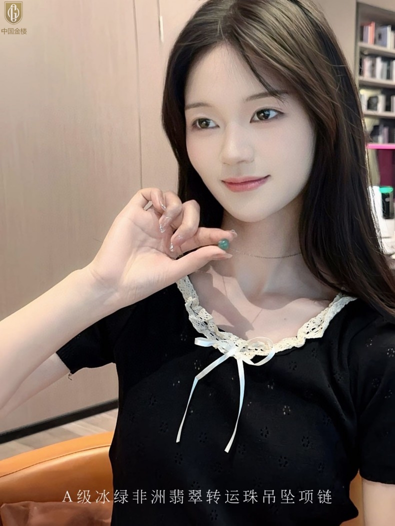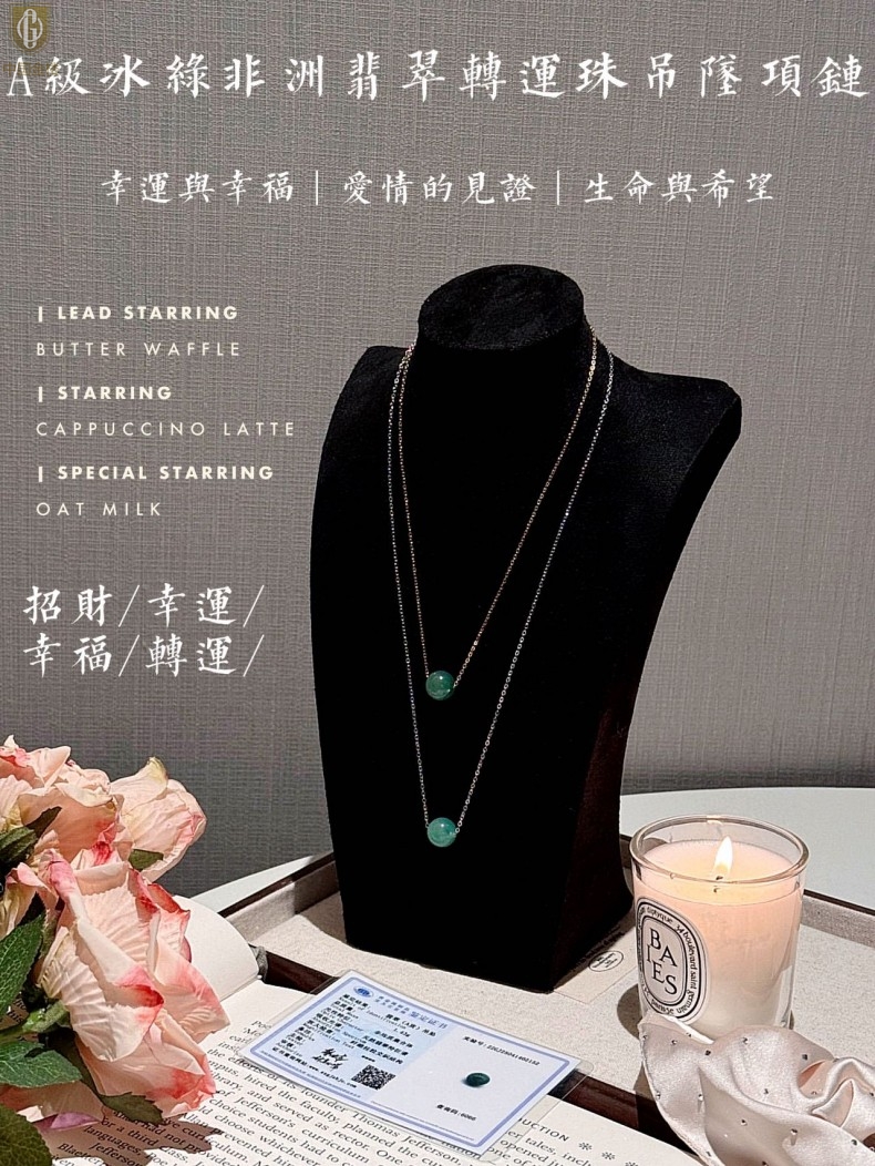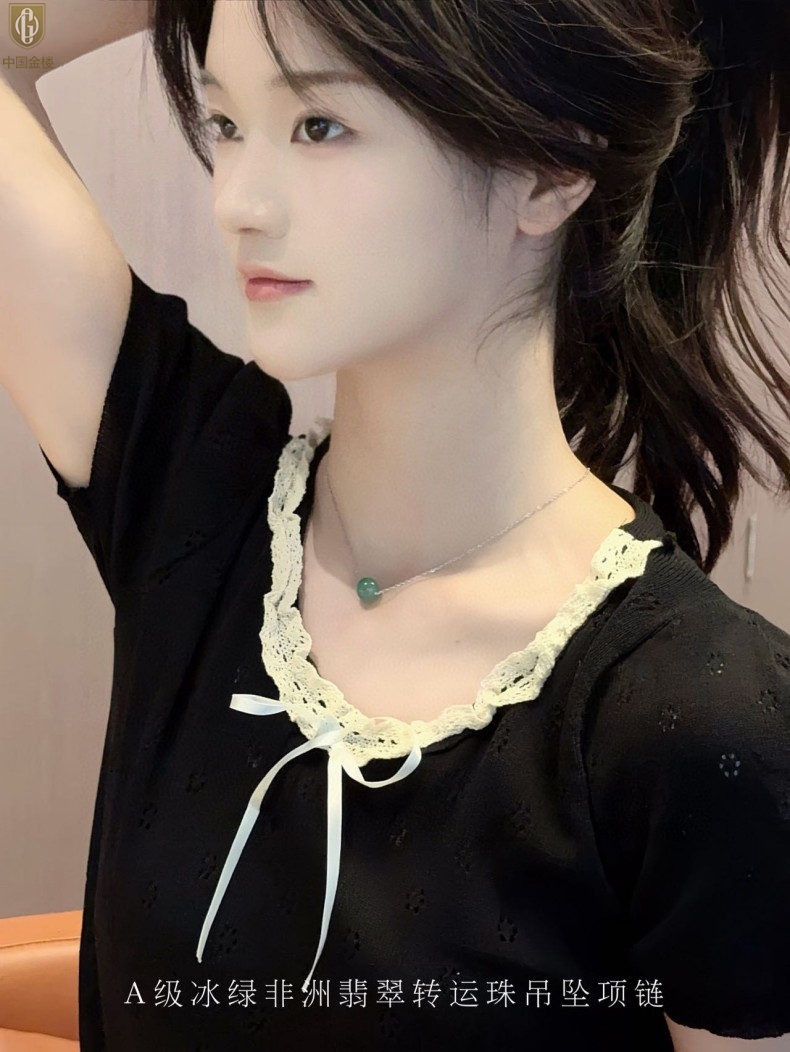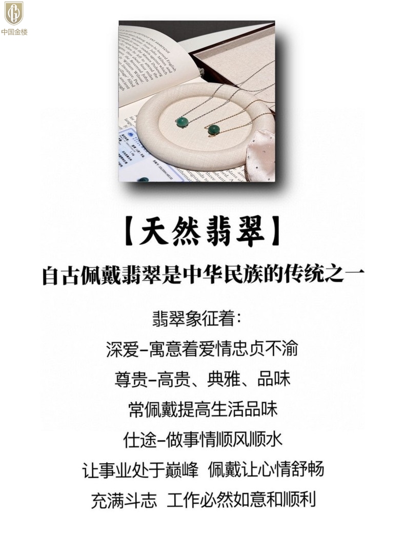 【品名】中国金楼K铂金项链A级冰绿非洲翡翠转运珠吊坠(高定礼盒)