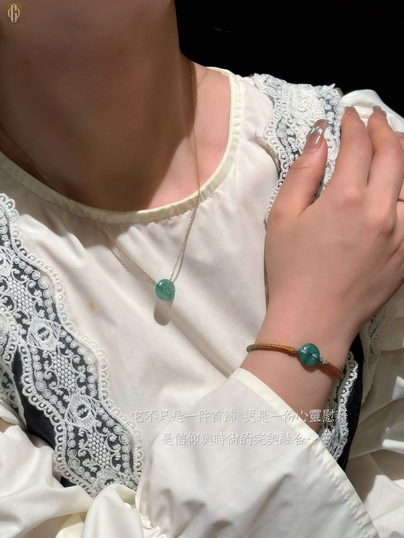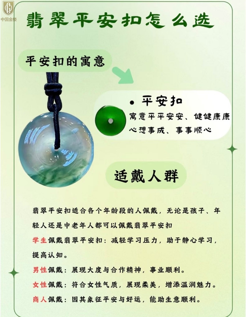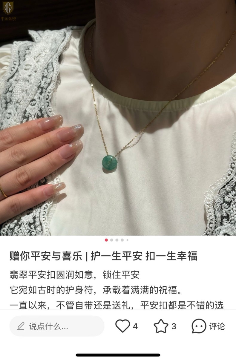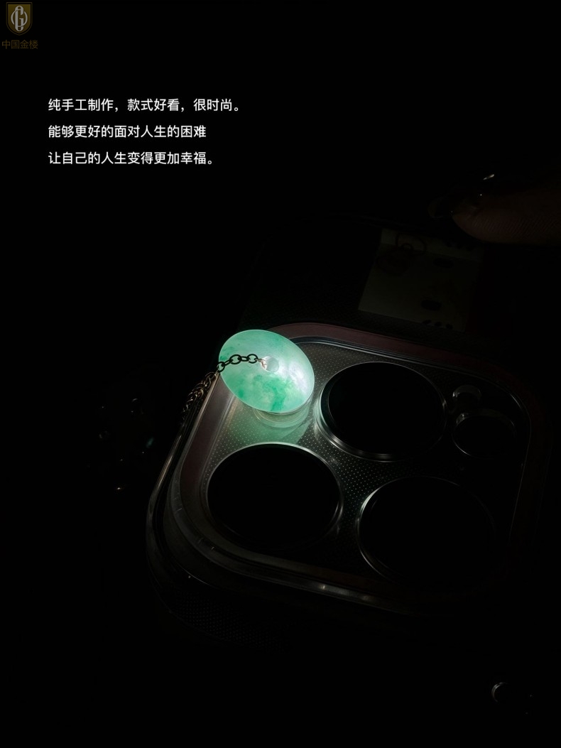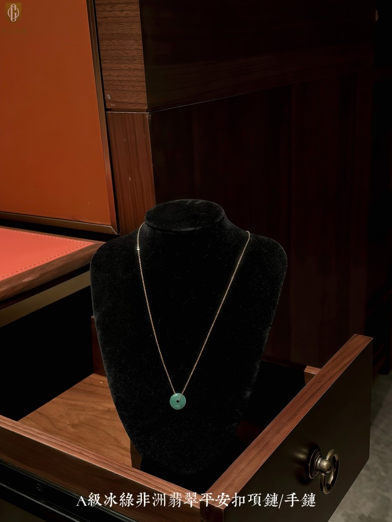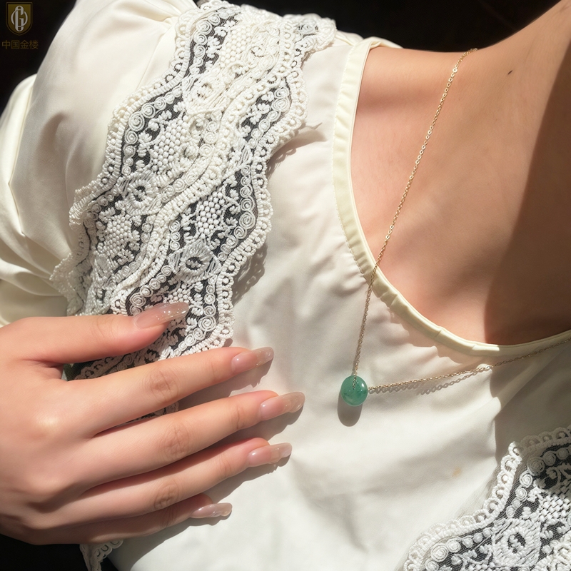 【品名】中国金楼K黄金项链A级冰绿非洲翡翠平安扣吊坠(高定礼盒)