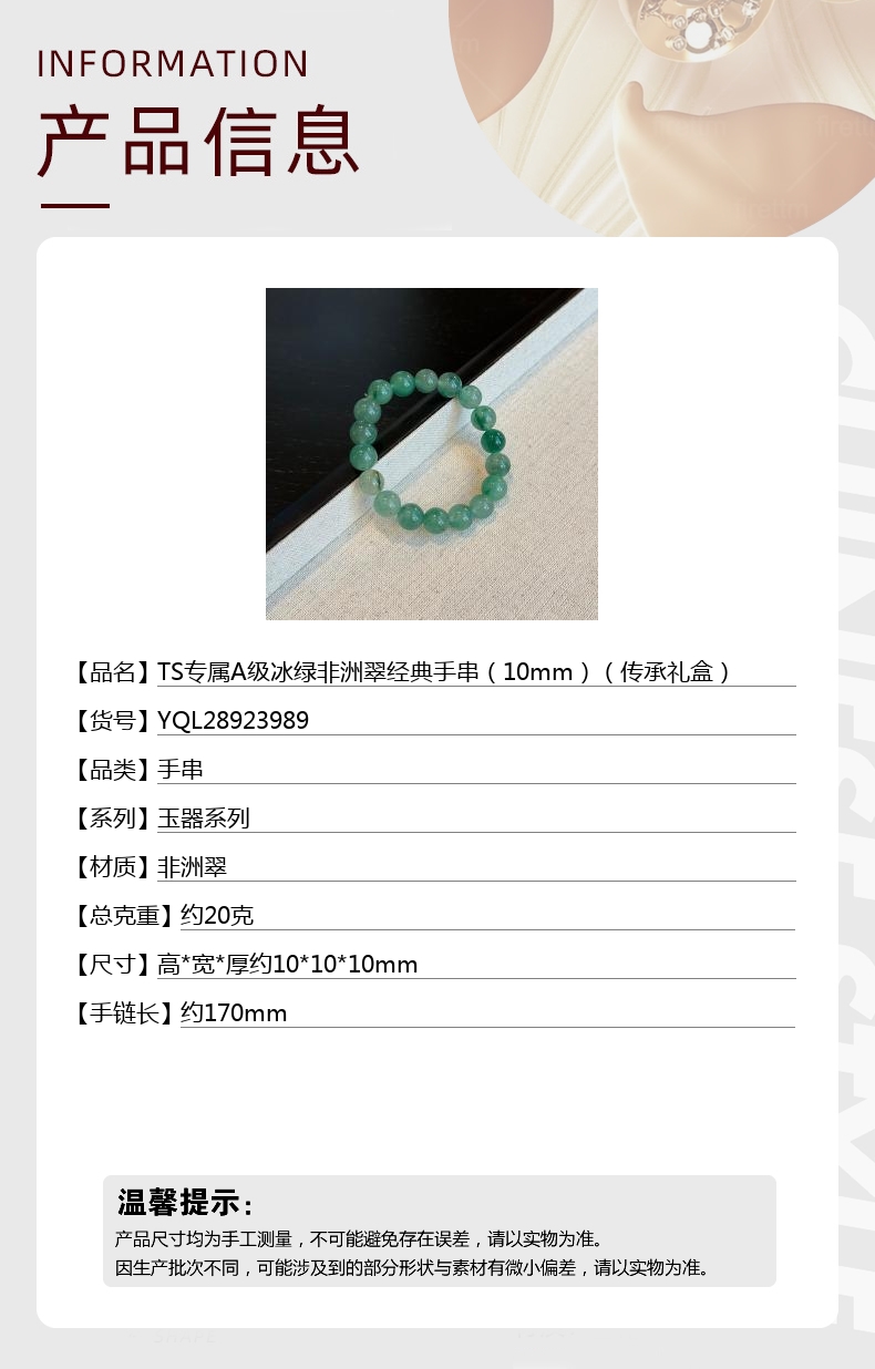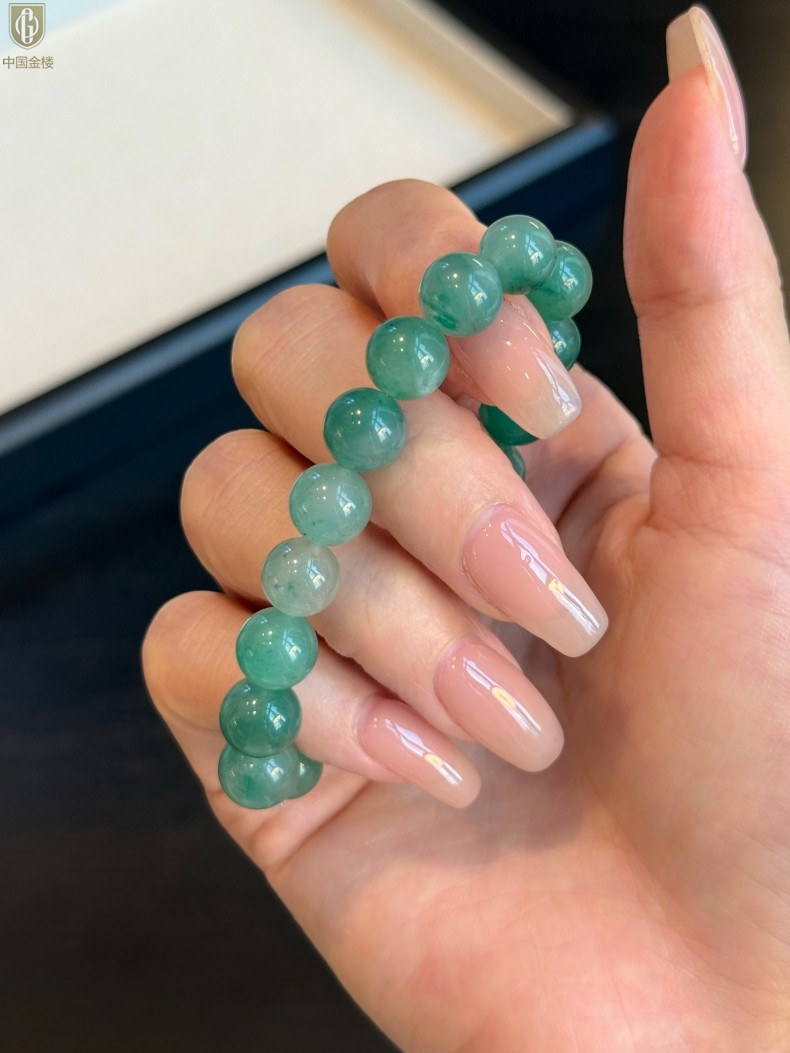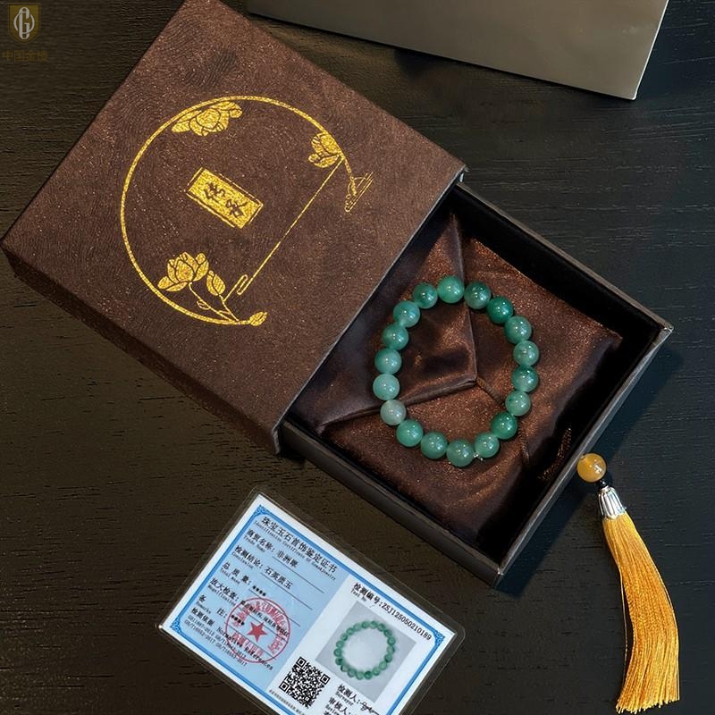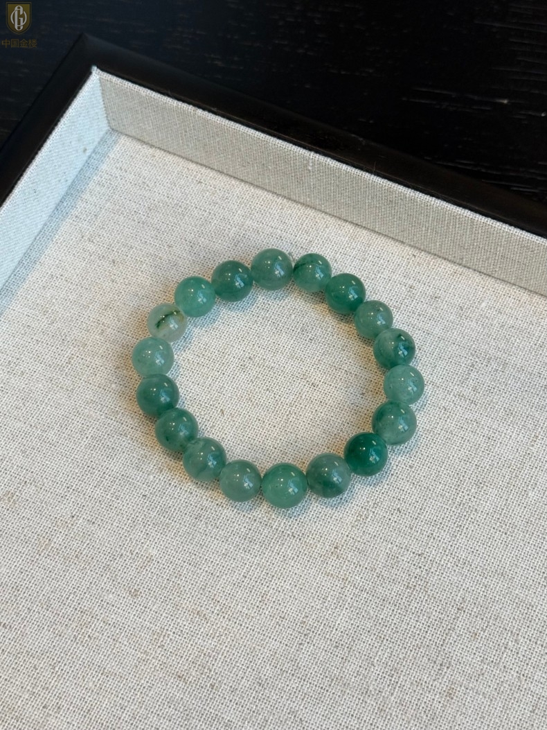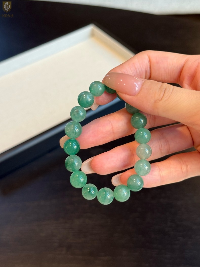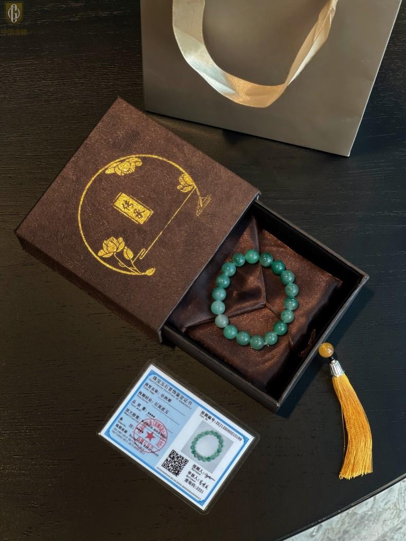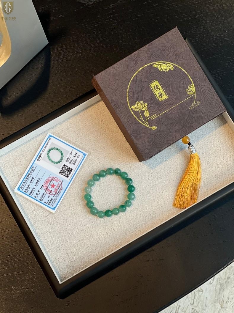 【品名】中国金楼TS专属A级冰绿非洲翠经典手串(10mm)(传承礼盒)