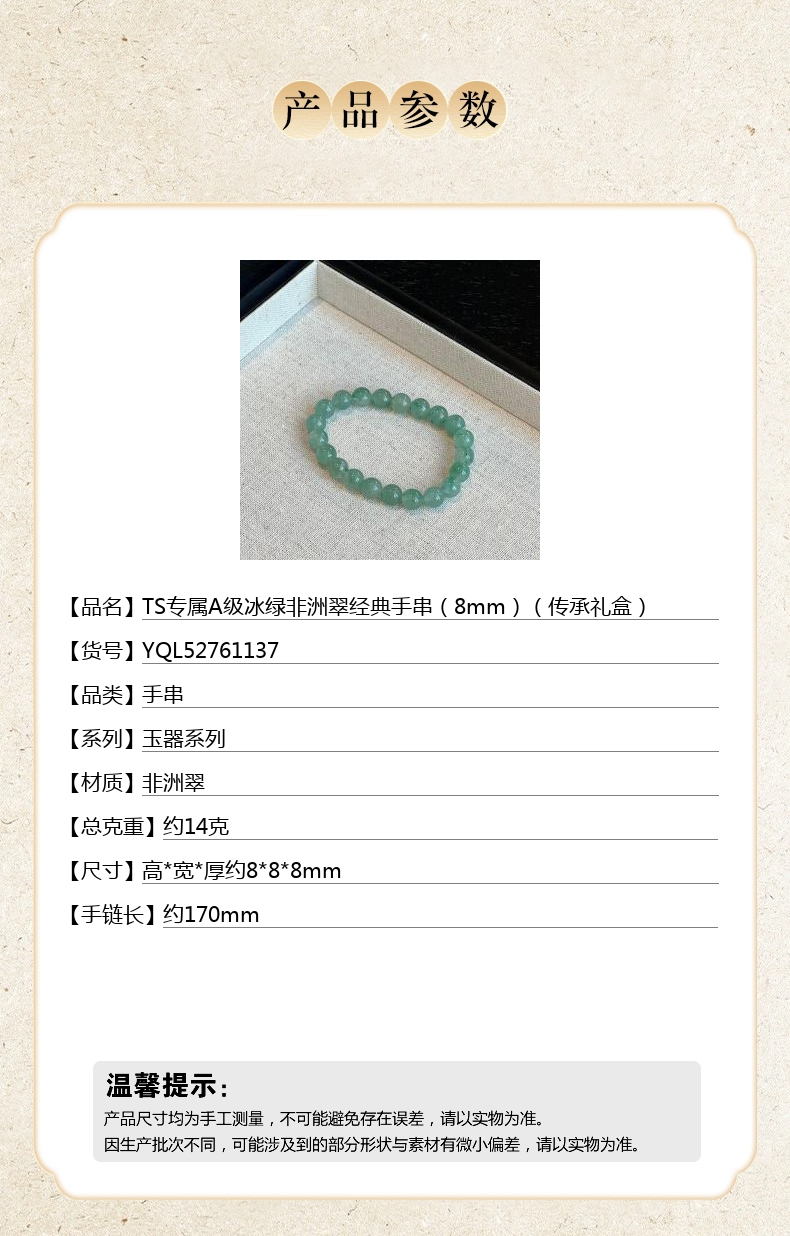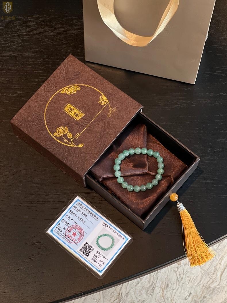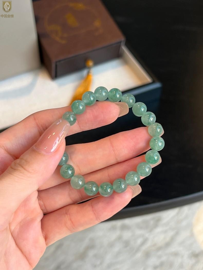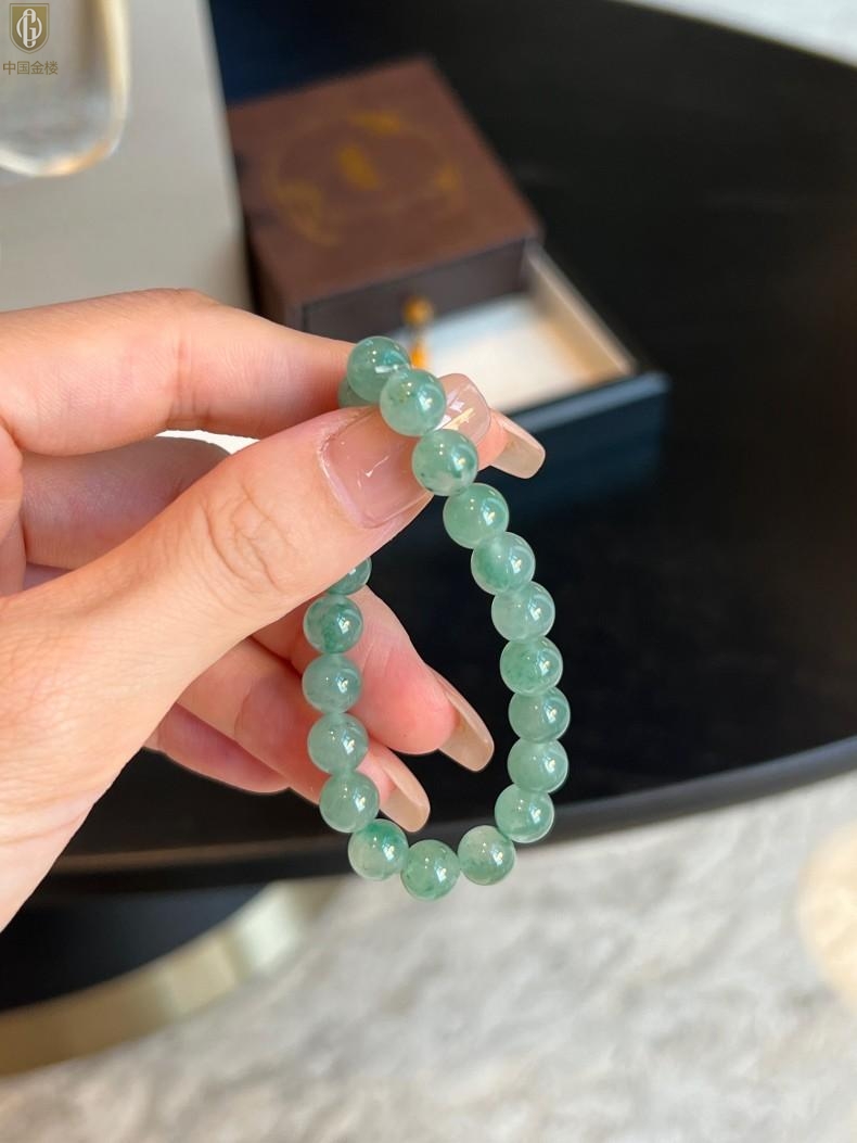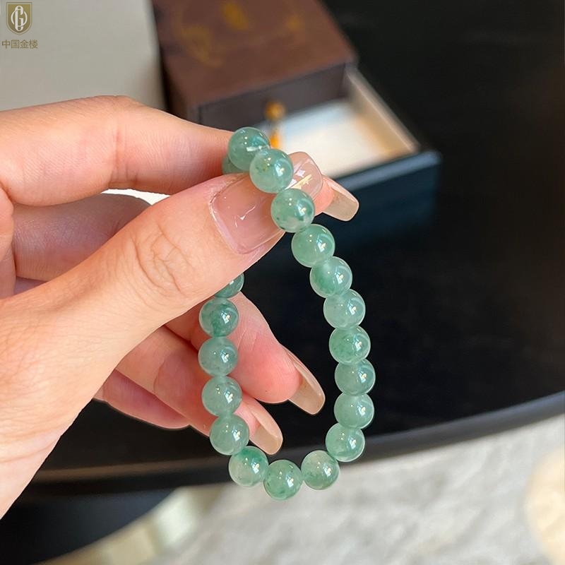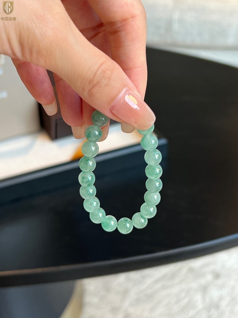 【品名】中国金楼TS专属A级冰绿非洲翠经典手串(8mm)(传承礼盒)