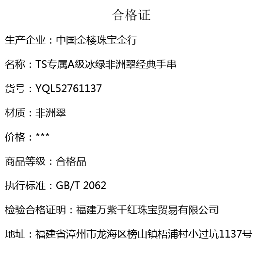 【套装包含】首饰+传承礼盒+礼品袋+国检证书+质保单+价签