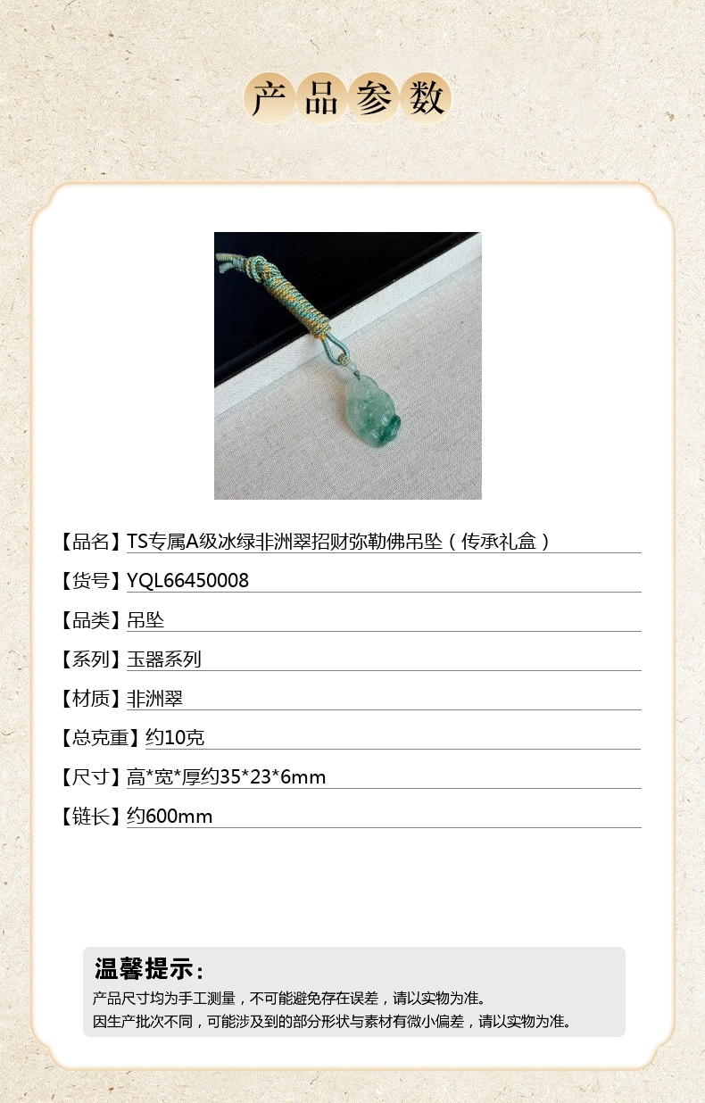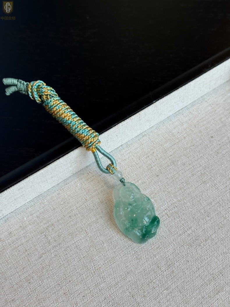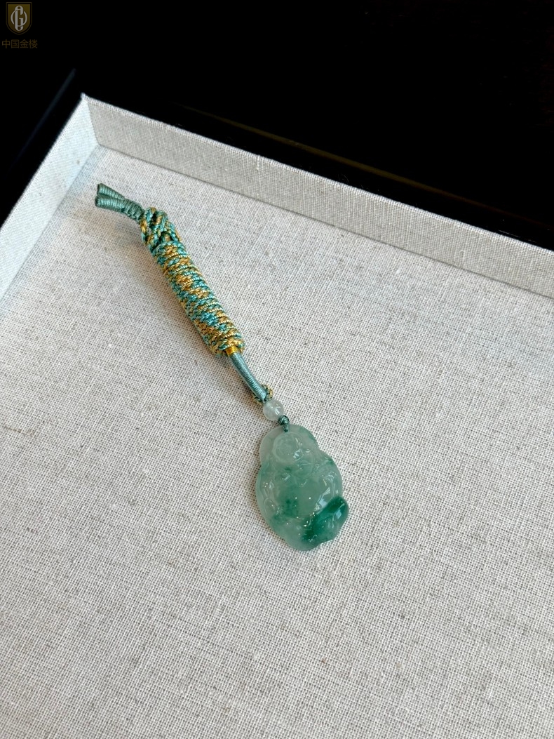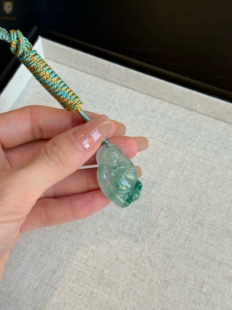 【品名】中国金楼TS专属A级冰绿非洲翠招财弥勒佛吊坠(传承礼盒)